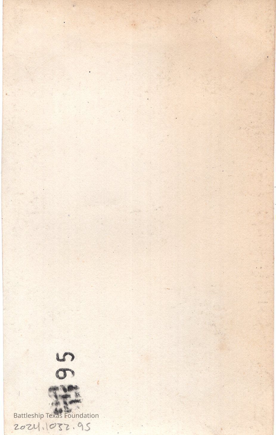 From a donated collection of individual photographs and pages out of a 1930s Texas crewmember's photo album. Items donated by the Los Angeles Maritime Museum. Many photographs had writing on the pages of the book, now discarded. The caption formerly on the page for this photo read, "ENSIGN TODD JR"