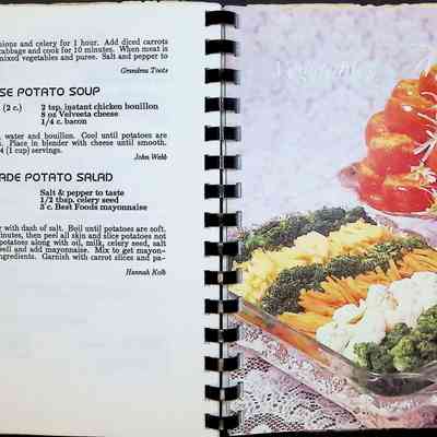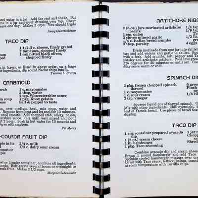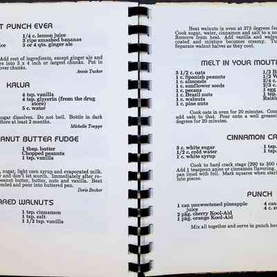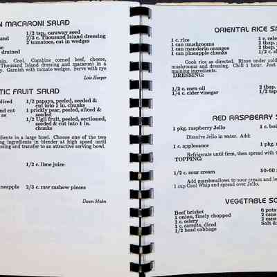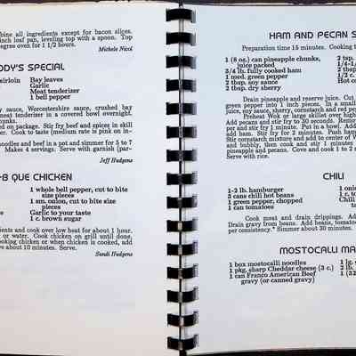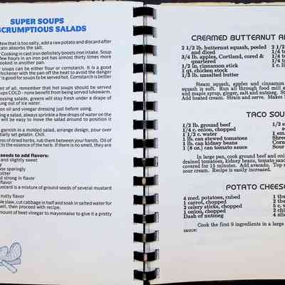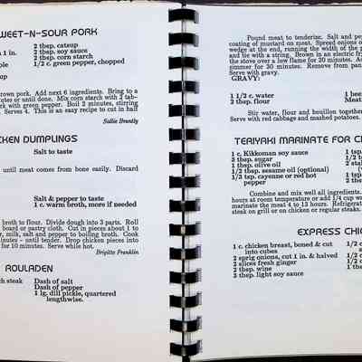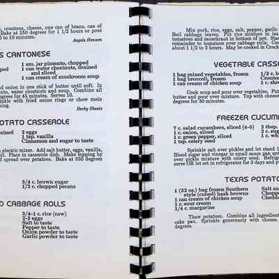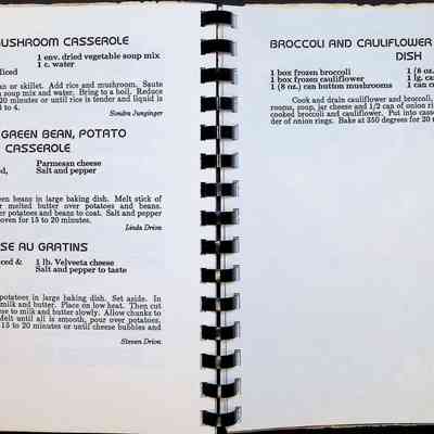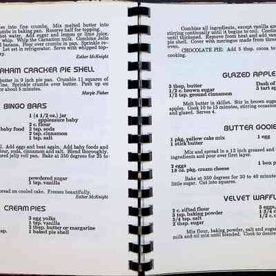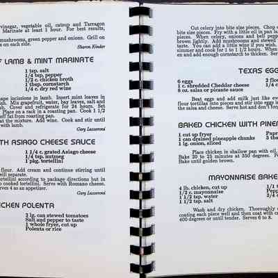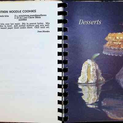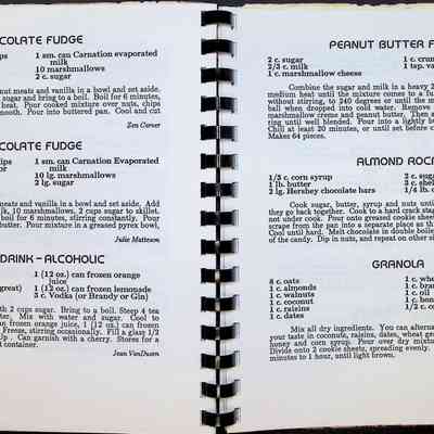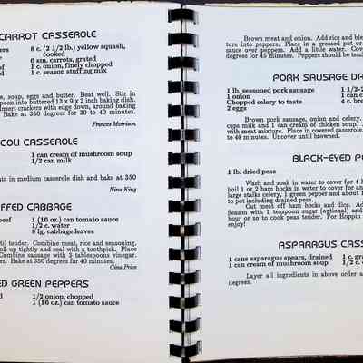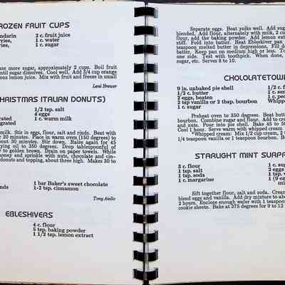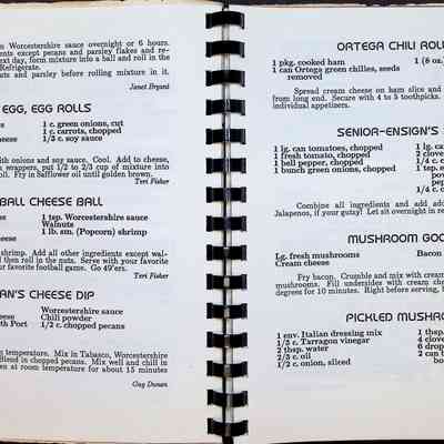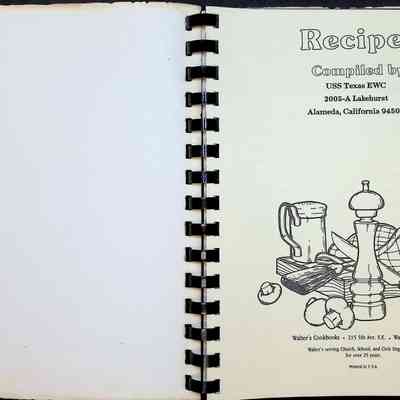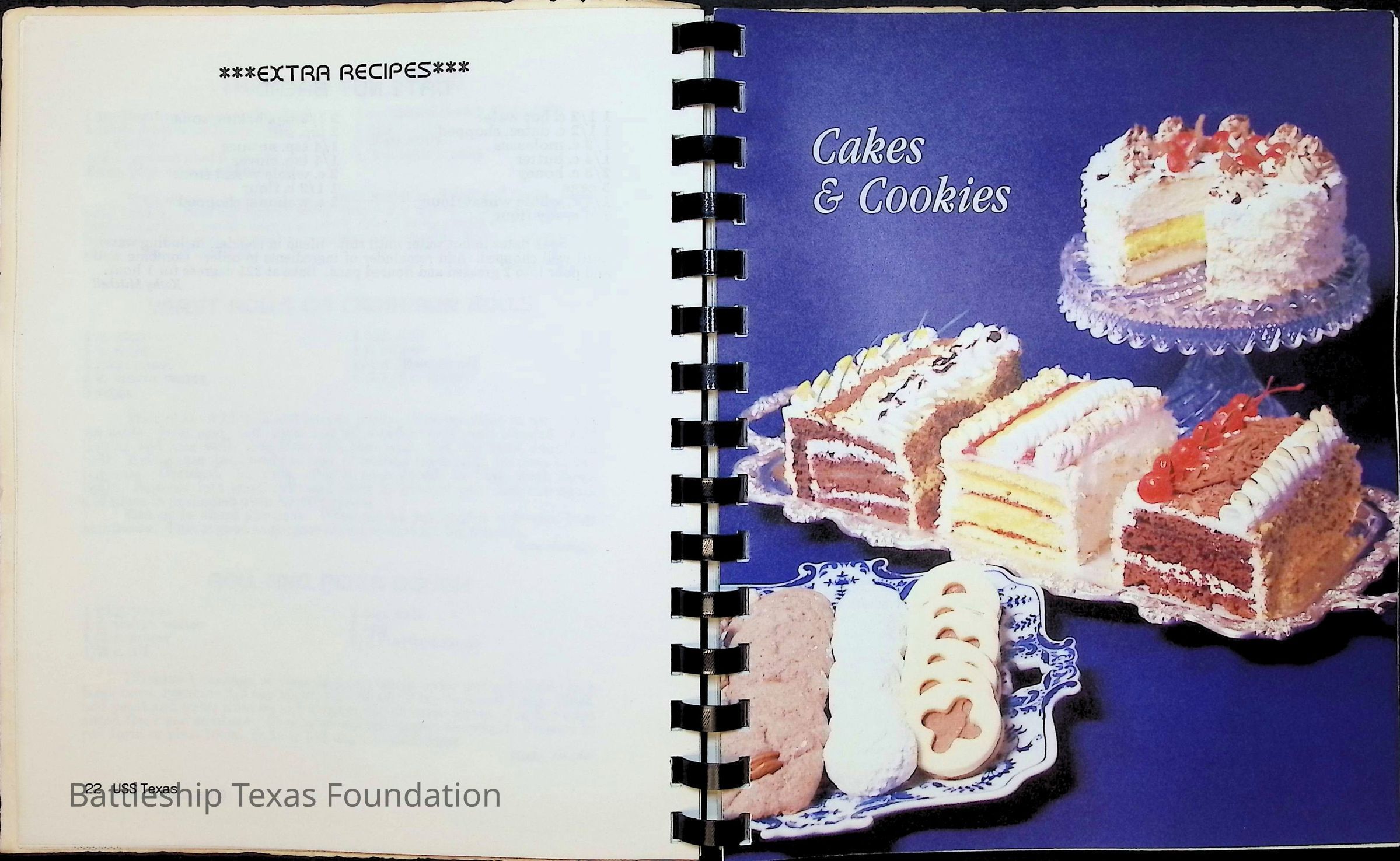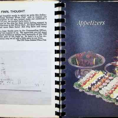 Cook book for the nuclear cruiser USS Texas (CGN-39). Yellow cover with rows of roses above title.
