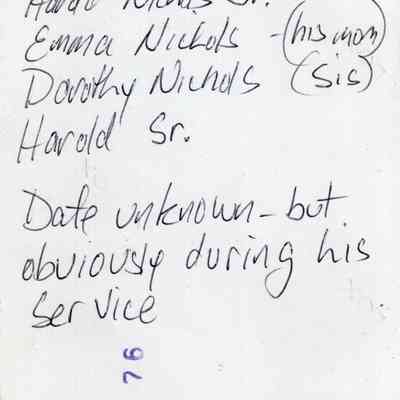 Harold Nichols Jr., Emma Nichols (mother), Dorothy Nichols (sister), and Harold Sr. (father).