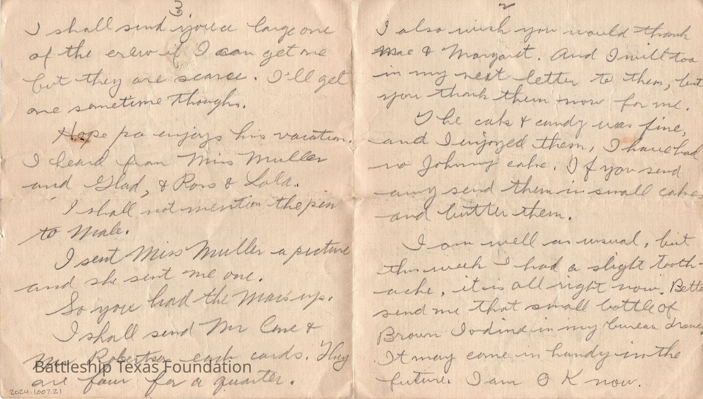 Battleship Texas had her own post office. All mail passed through a censor before leaving the ship. Once the package is checked, it was stamped with a “U.S.S. TEXAS” stamp. If in a port, mail could carry the markers of the post office on shore.Collection