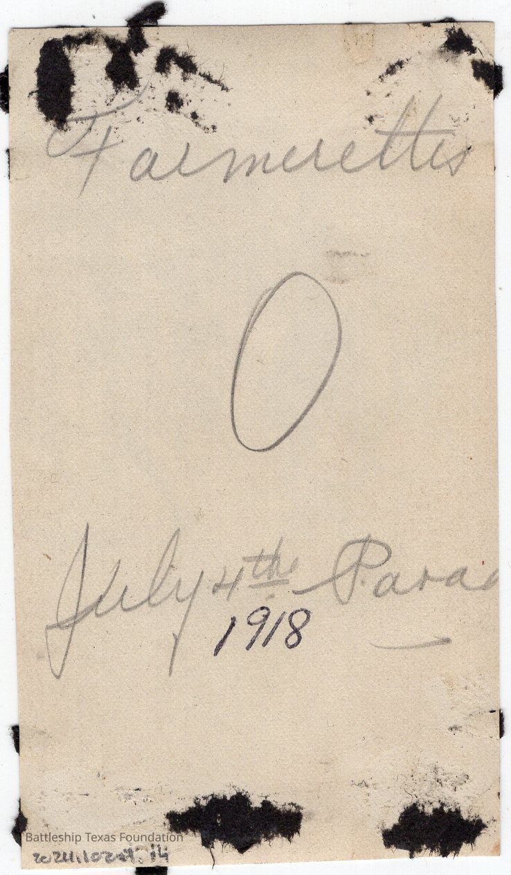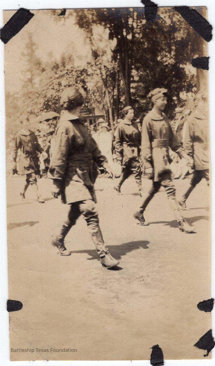 From a set of donated photo album pages an individual photos from 1917 and 1918. All sourced from initial book. Farmerettes march by camera dated July 4, 1918.