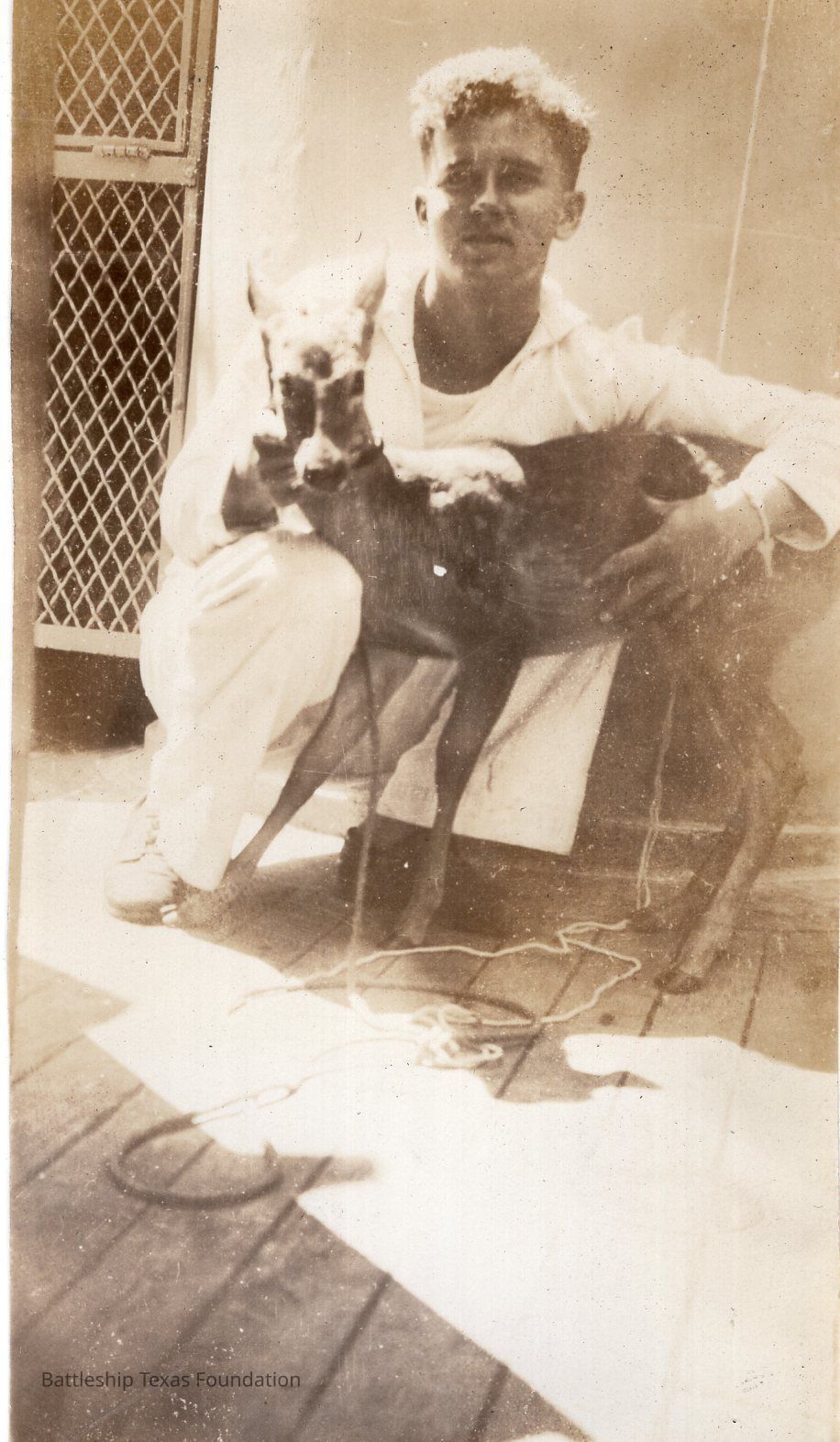 From a donated collection of individual photographs and pages out of a Texas crewmember's photo album. Items donated by the Los Angeles Maritime Museum.