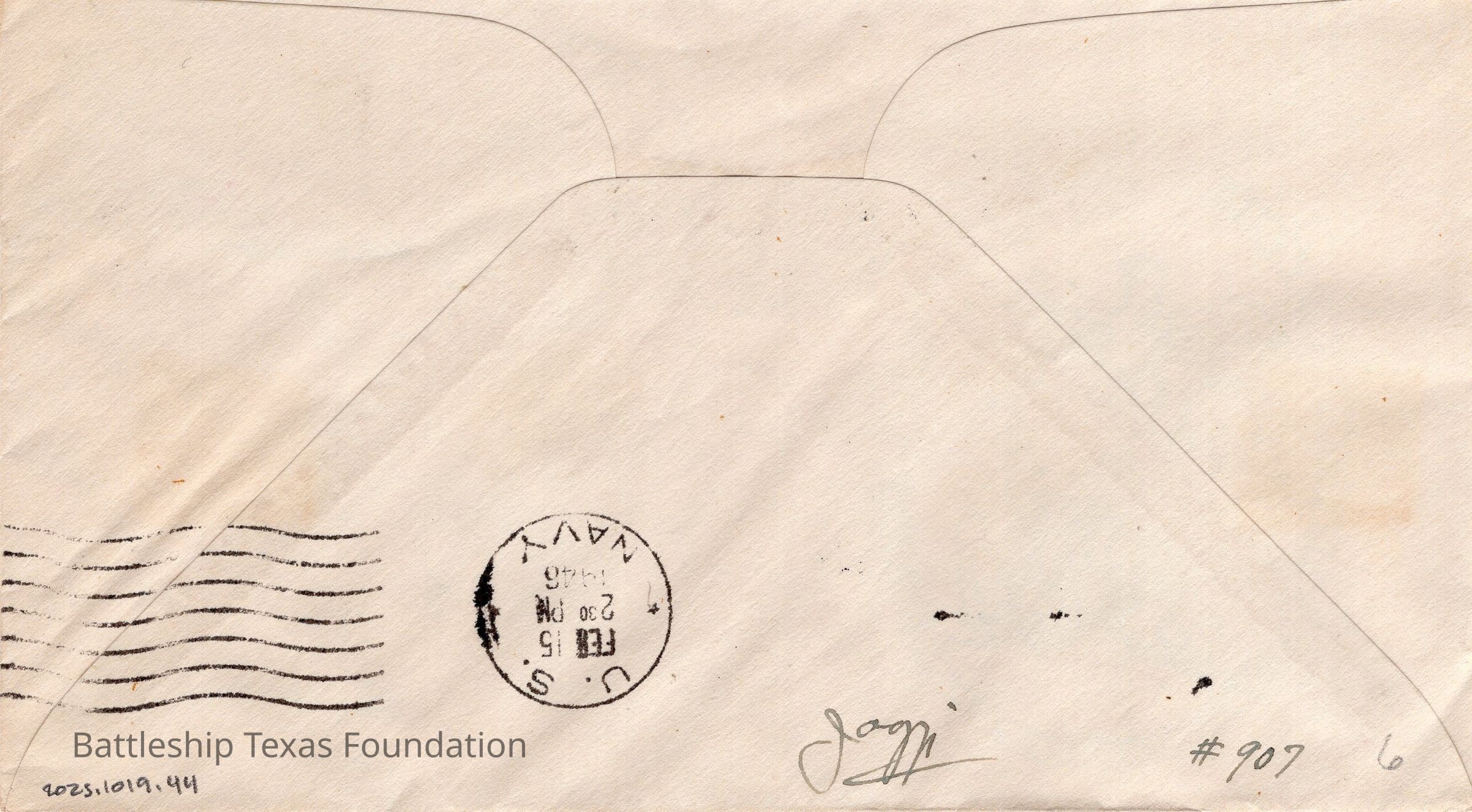 Battleship Texas had her own post office. All mail passed through a censor before leaving the ship. Once the package is checked, it was stamped with a “U.S.S. TEXAS” stamp. If in a port, mail could carry the markers of the post office on shore.Collection