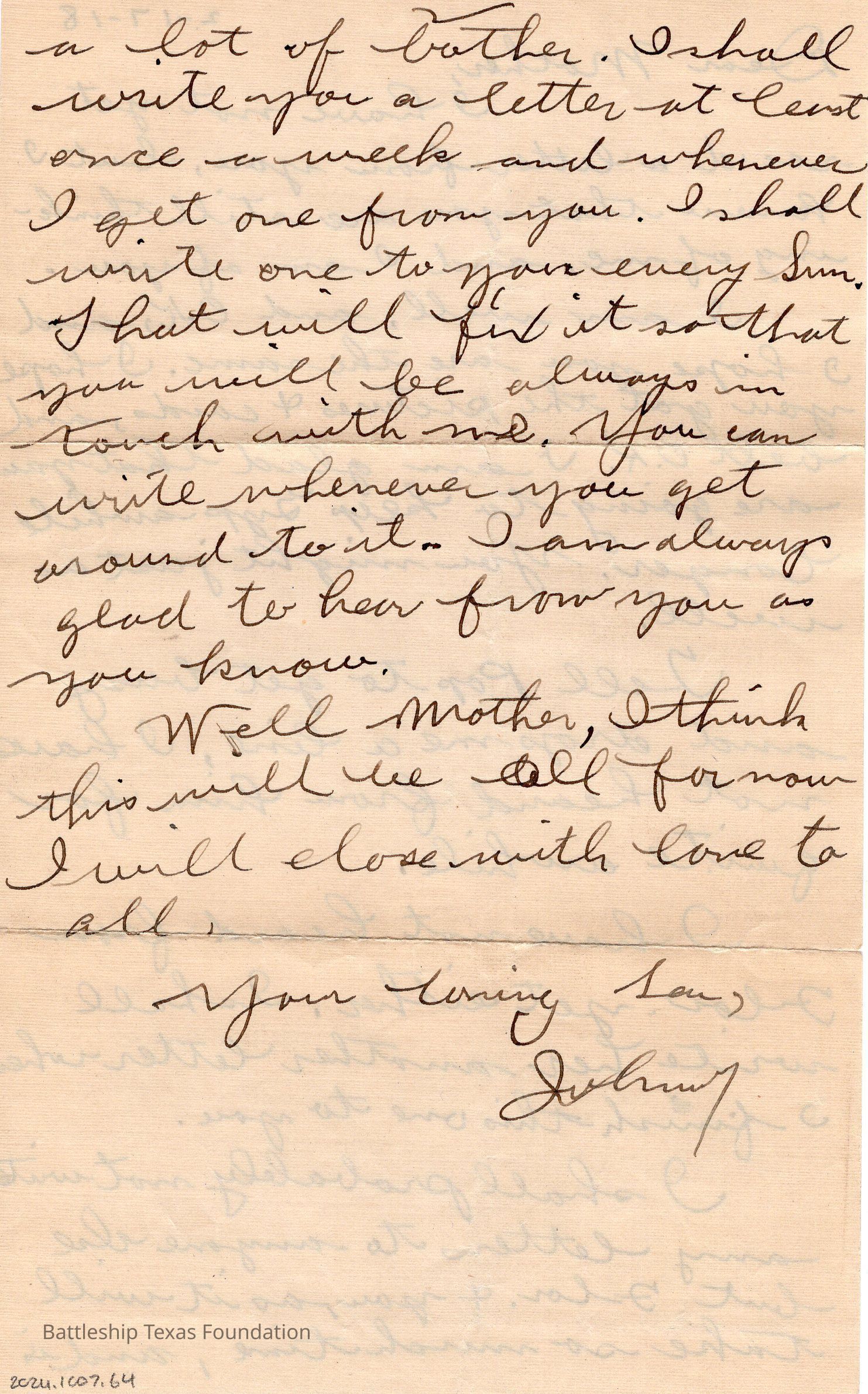 Letter dated 2-17-18 and addressed to Mother.Context