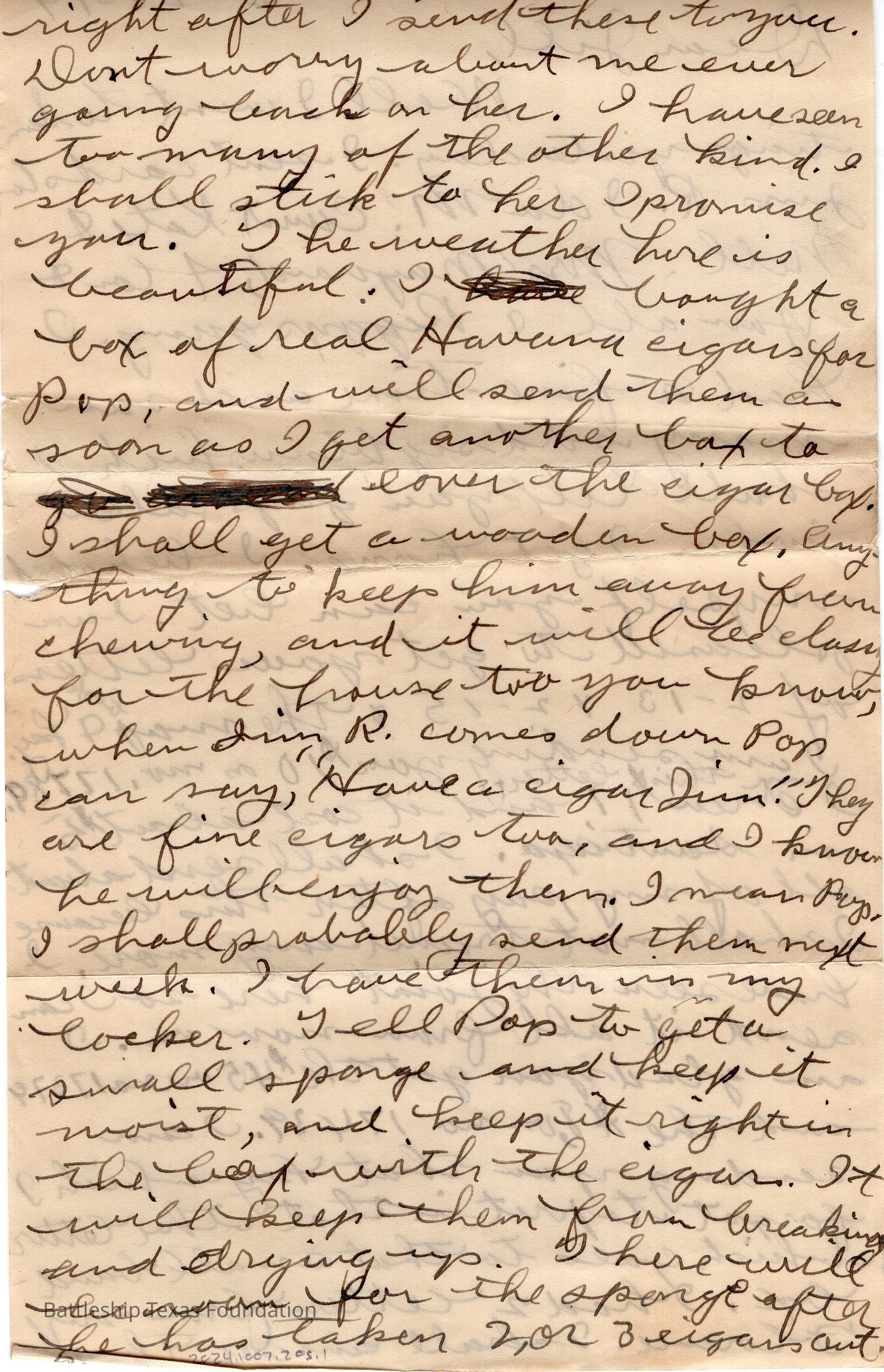 Battleship Texas had her own post office. All mail passed through a censor before leaving the ship. Once the package is checked, it was stamped with a “U.S.S. TEXAS” stamp. If in a port, mail could carry the markers of the post office on shore.Collection