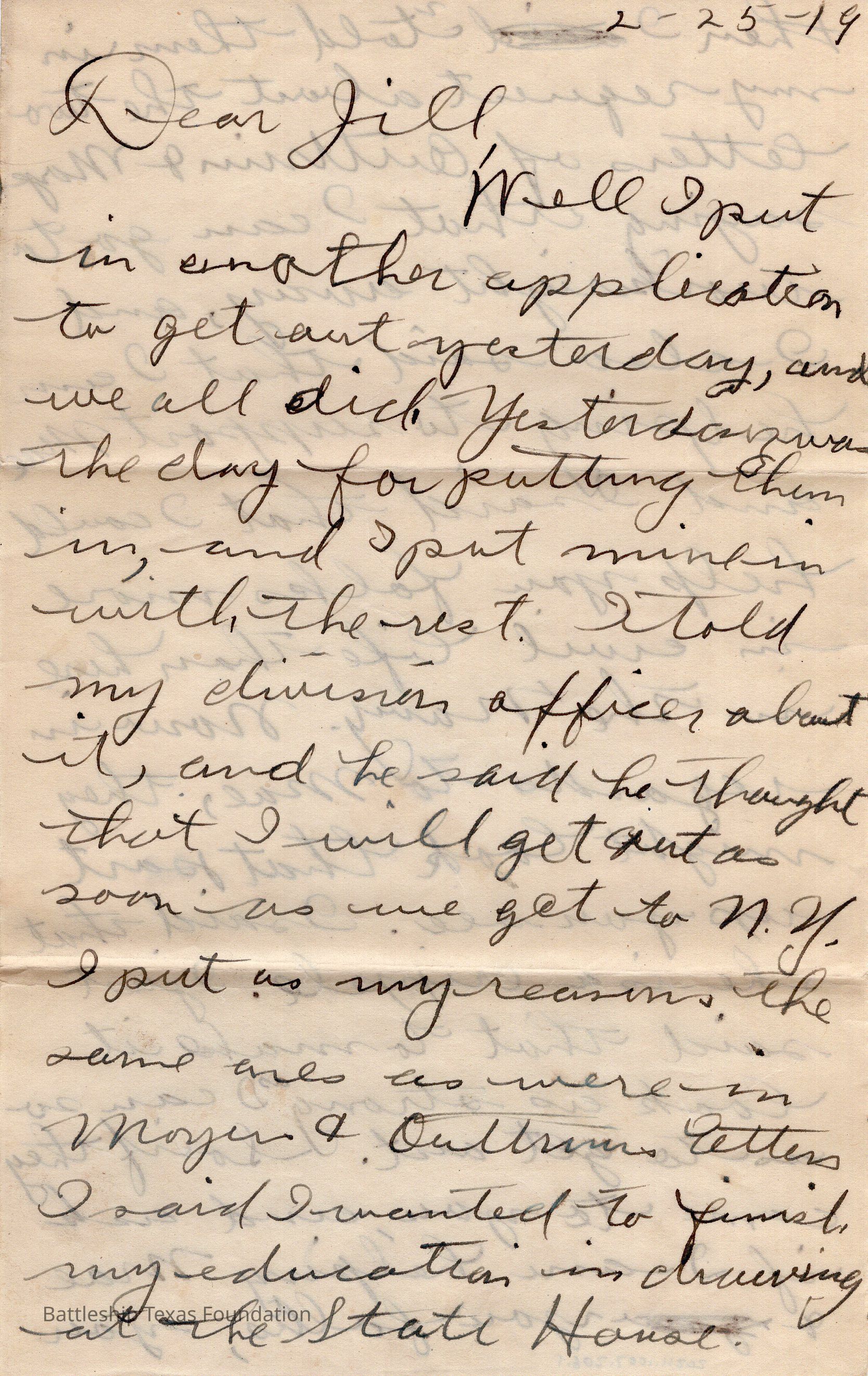 Letter dated February 25, 1919 and addressed to Jill.Context