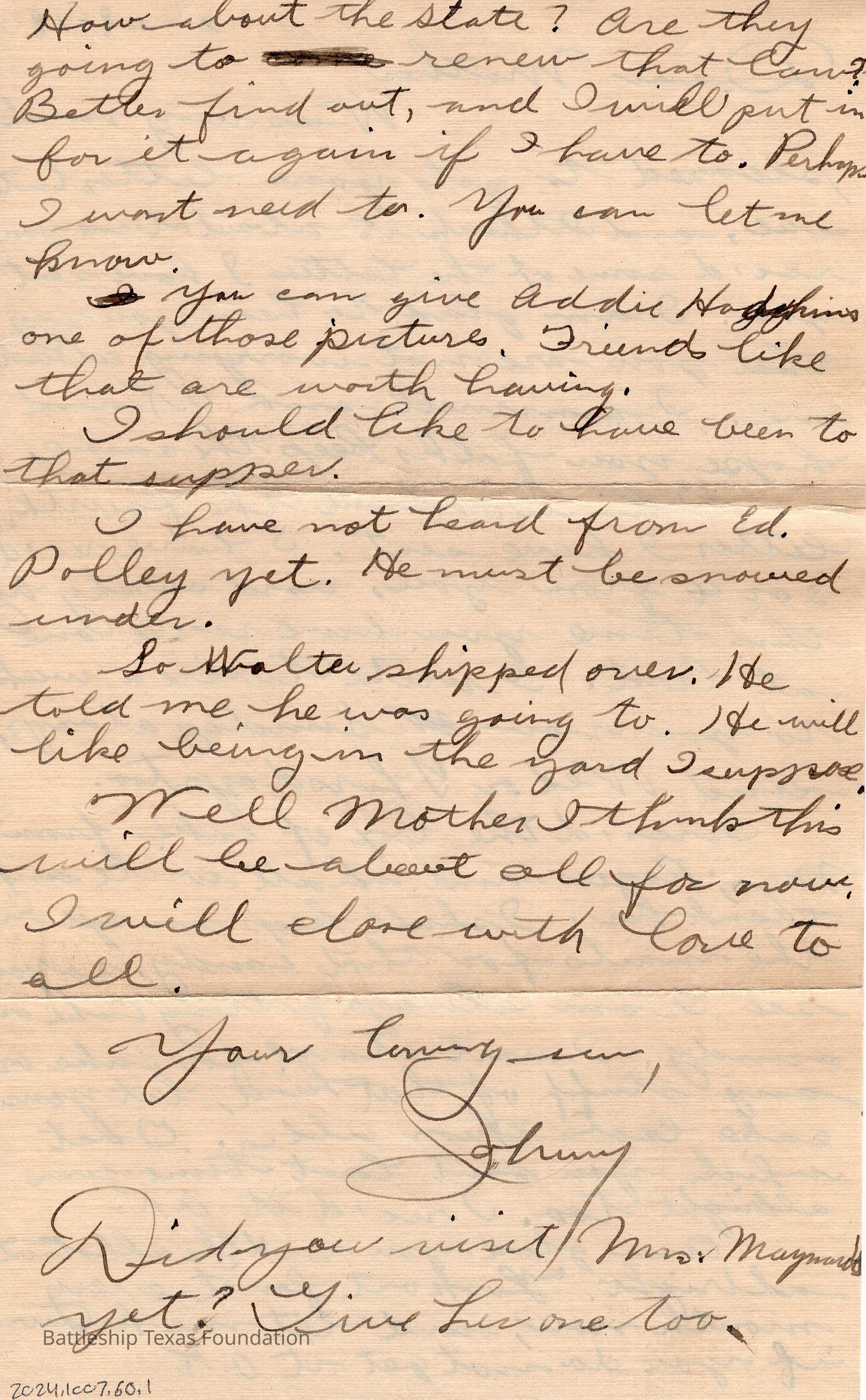 Battleship Texas had her own post office. All mail passed through a censor before leaving the ship. Once the package is checked, it was stamped with a “U.S.S. TEXAS” stamp. If in a port, mail could carry the markers of the post office on shore.Collection