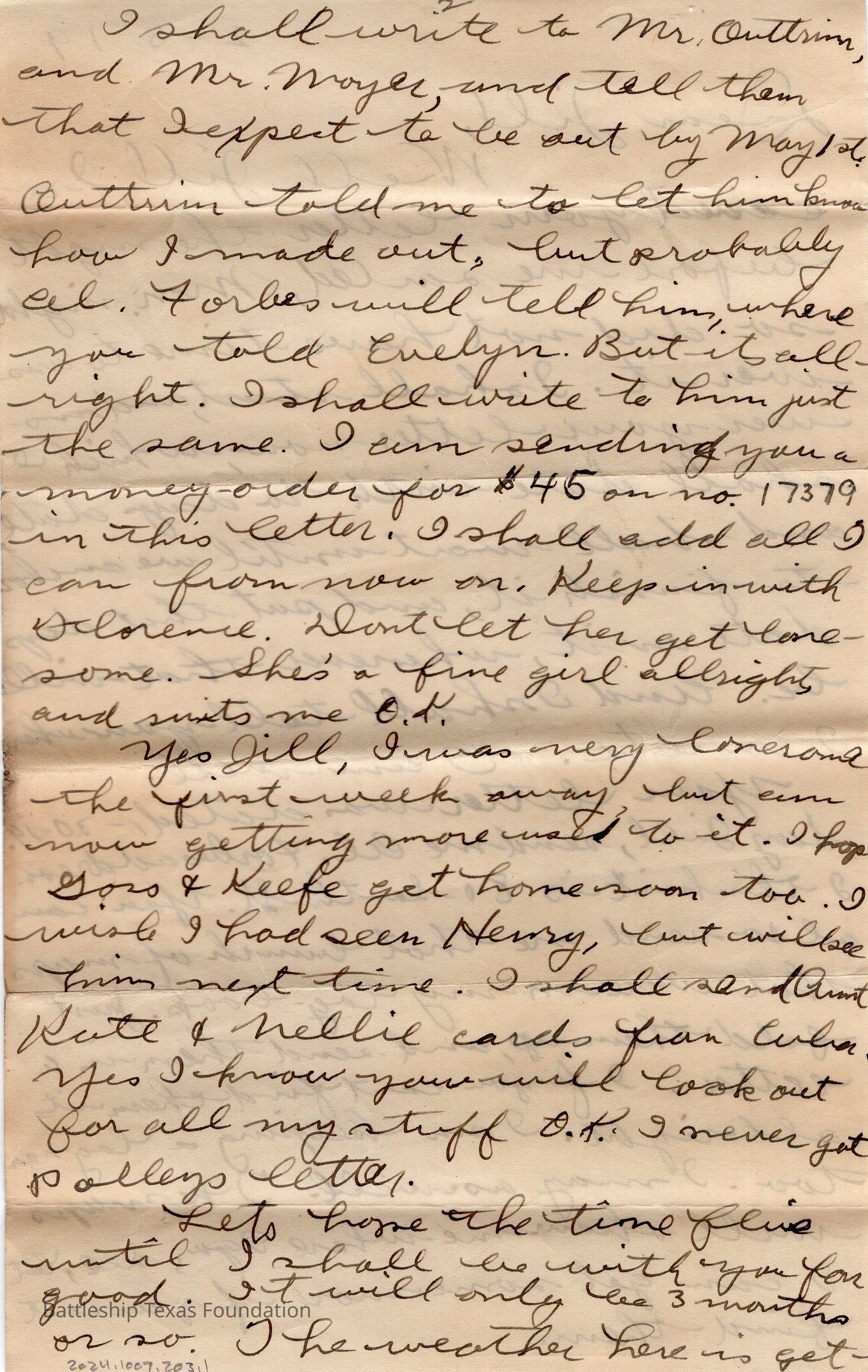 John Lamson was a MM1c on Battleship Texas from May 1917 to June 1919. Throughout his time on Texas, he sent a letter to his family at least once a week, often more. Longer stretches of absence are explained either by movement across the Atlantic, or with the Grand Fleet.