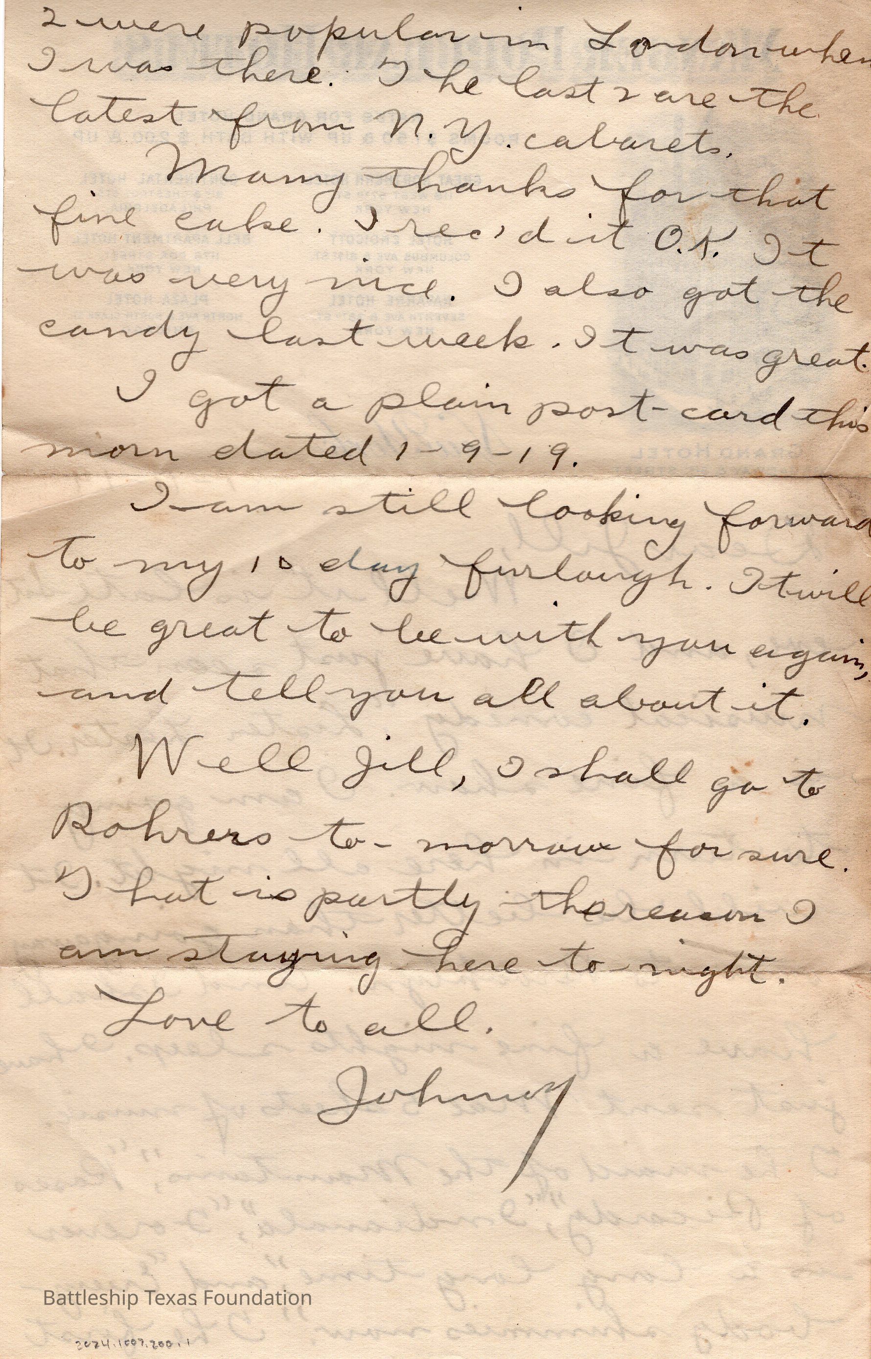 Battleship Texas had her own post office. All mail passed through a censor before leaving the ship. Once the package is checked, it was stamped with a “U.S.S. TEXAS” stamp. If in a port, mail could carry the markers of the post office on shore.Collection