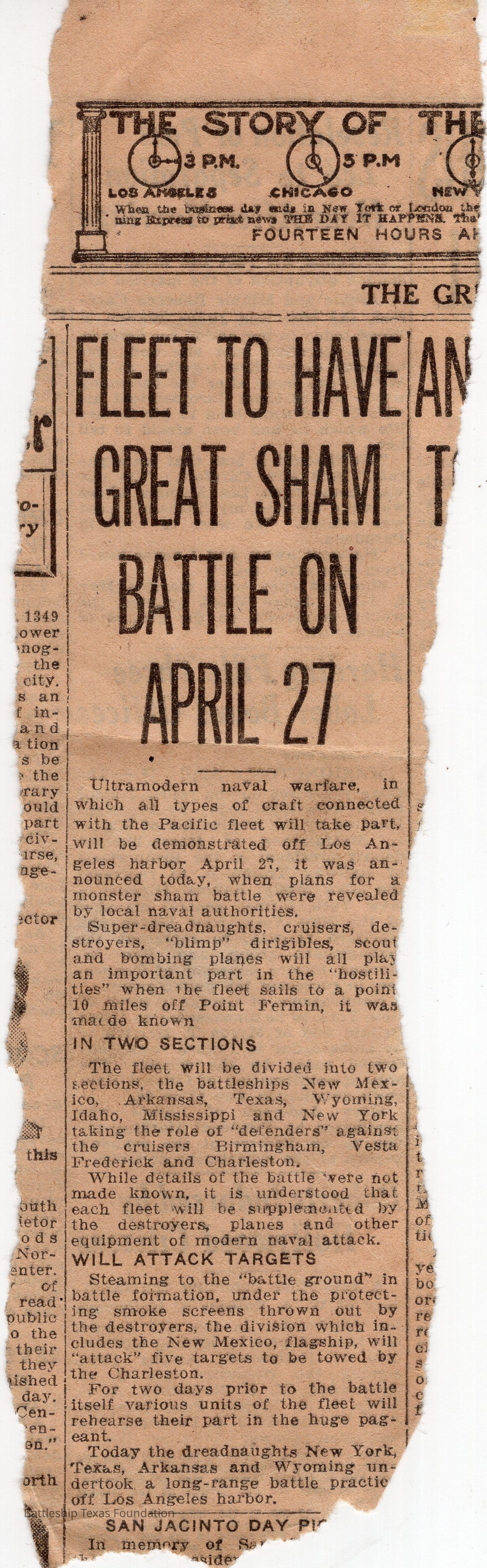 Fleet to Have Great Sham Battle on April 27Entry/Object ID