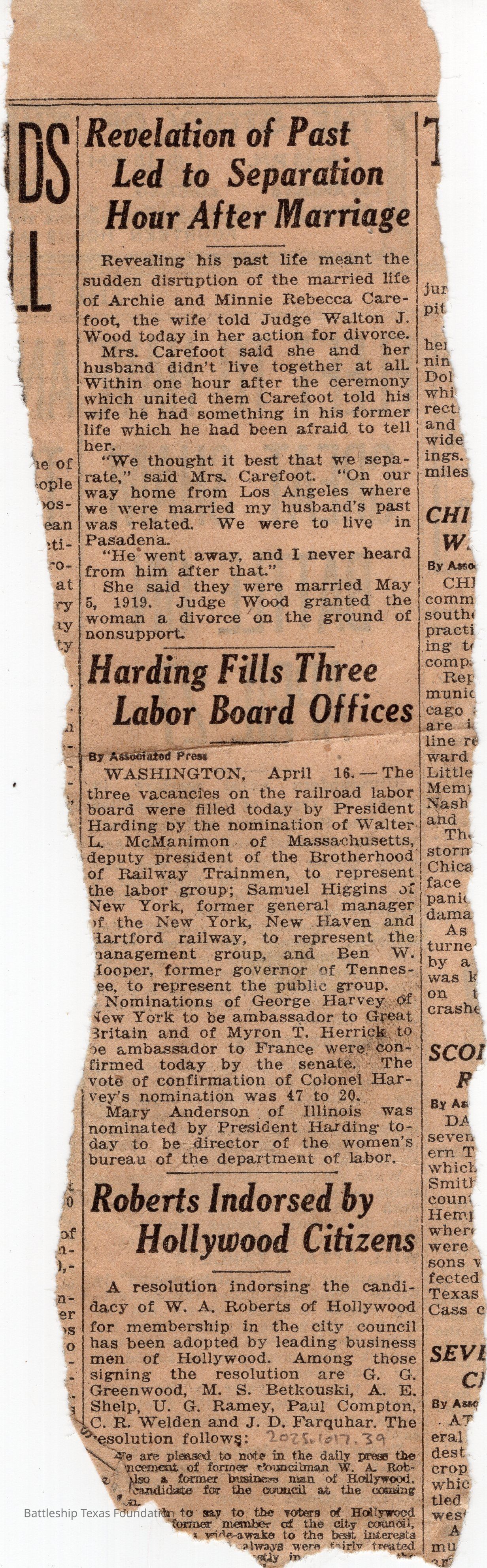 Los Angeles Evening Express, Saturday, April 16, 1921.