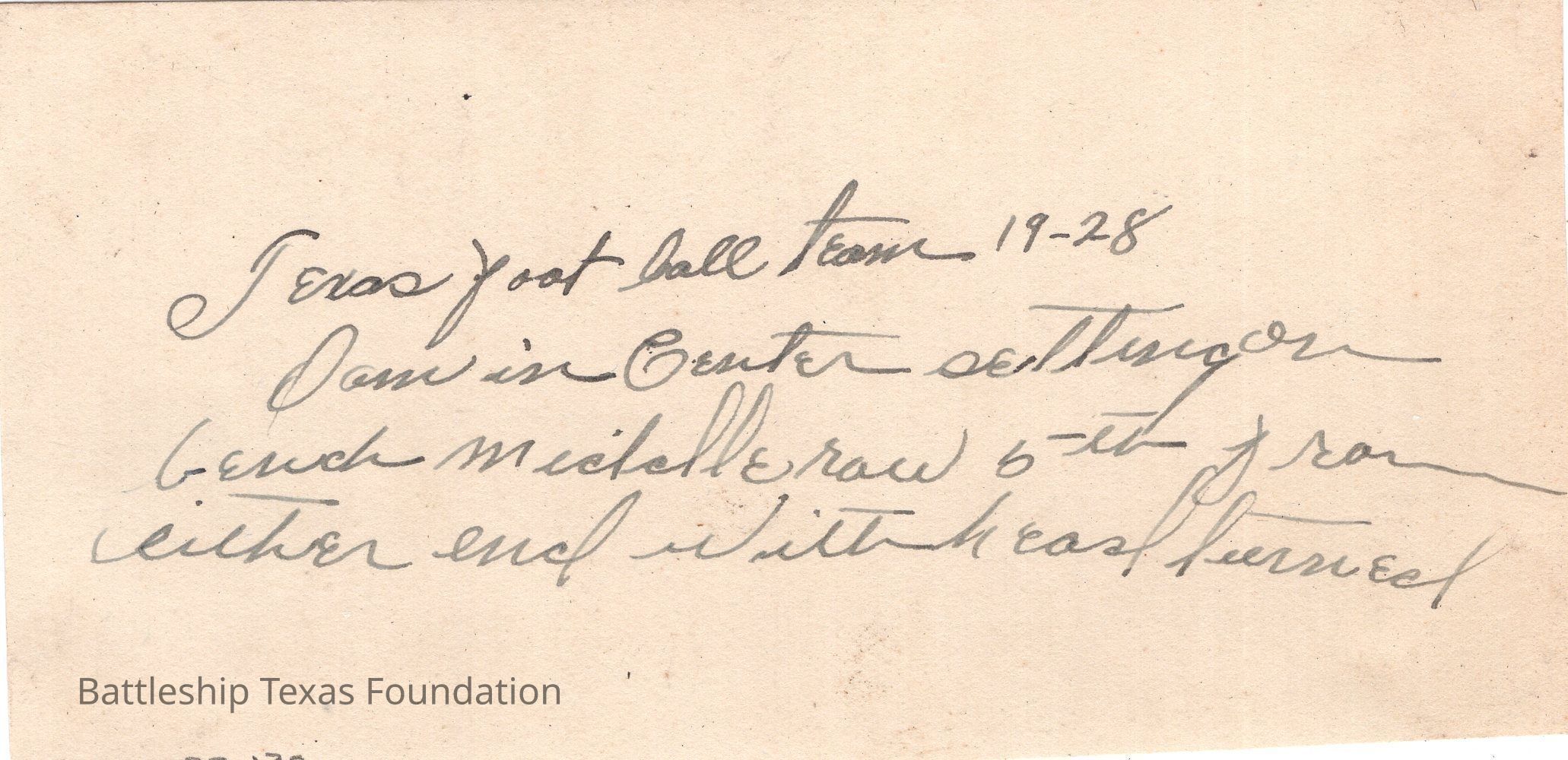 From a donated collection of individual photographs and pages out of a Texas crewmember's photo album. Items donated by the Los Angeles Maritime Museum. Many photographs had writing on the pages of the book, now discarded. The caption formerly on the page for this photo read, "Football Team on Texas 1928 None Defeated"