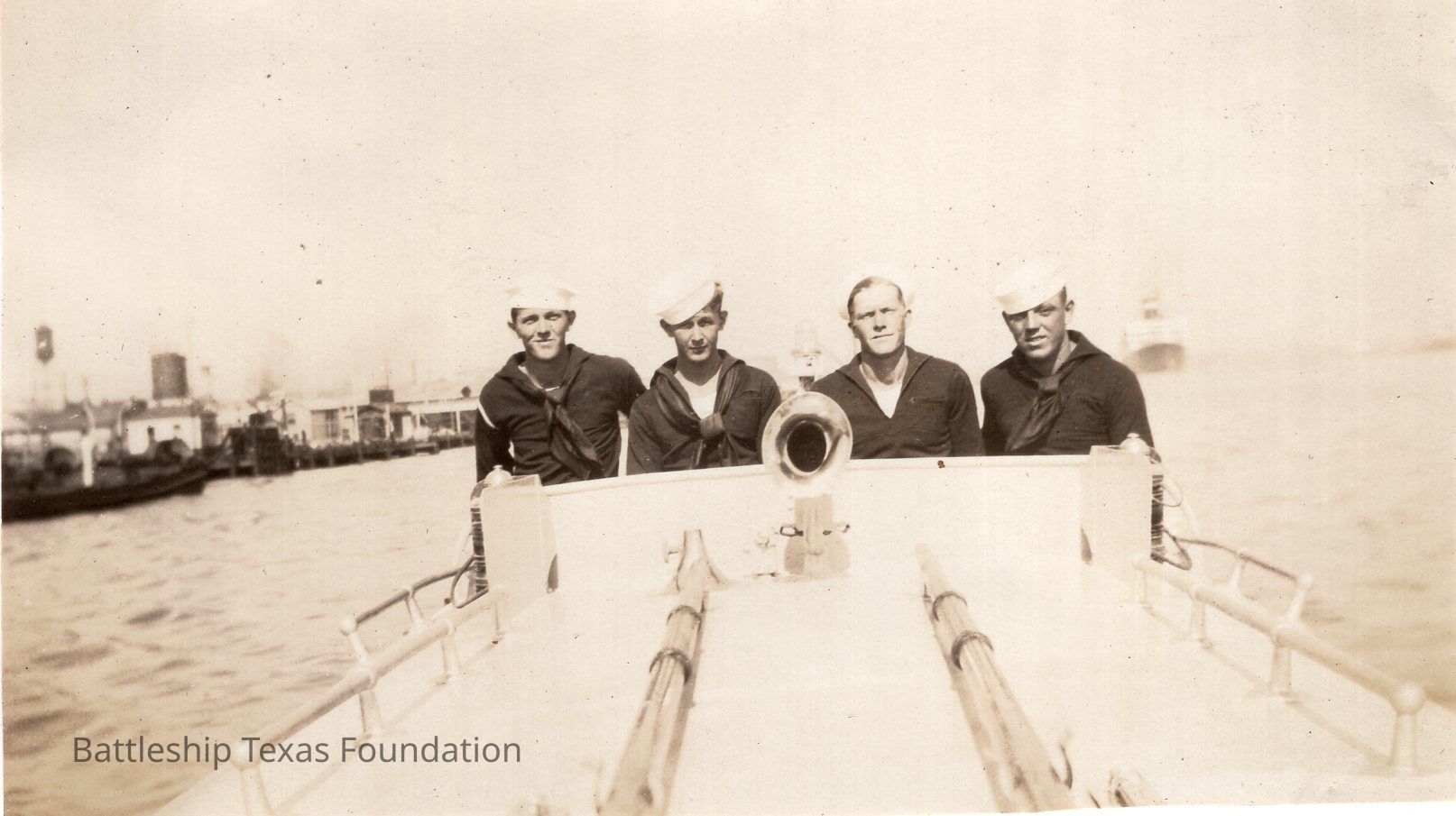 From a donated collection of individual photographs and pages out of a Texas crewmember's photo album. Items donated by the Los Angeles Maritime Museum.