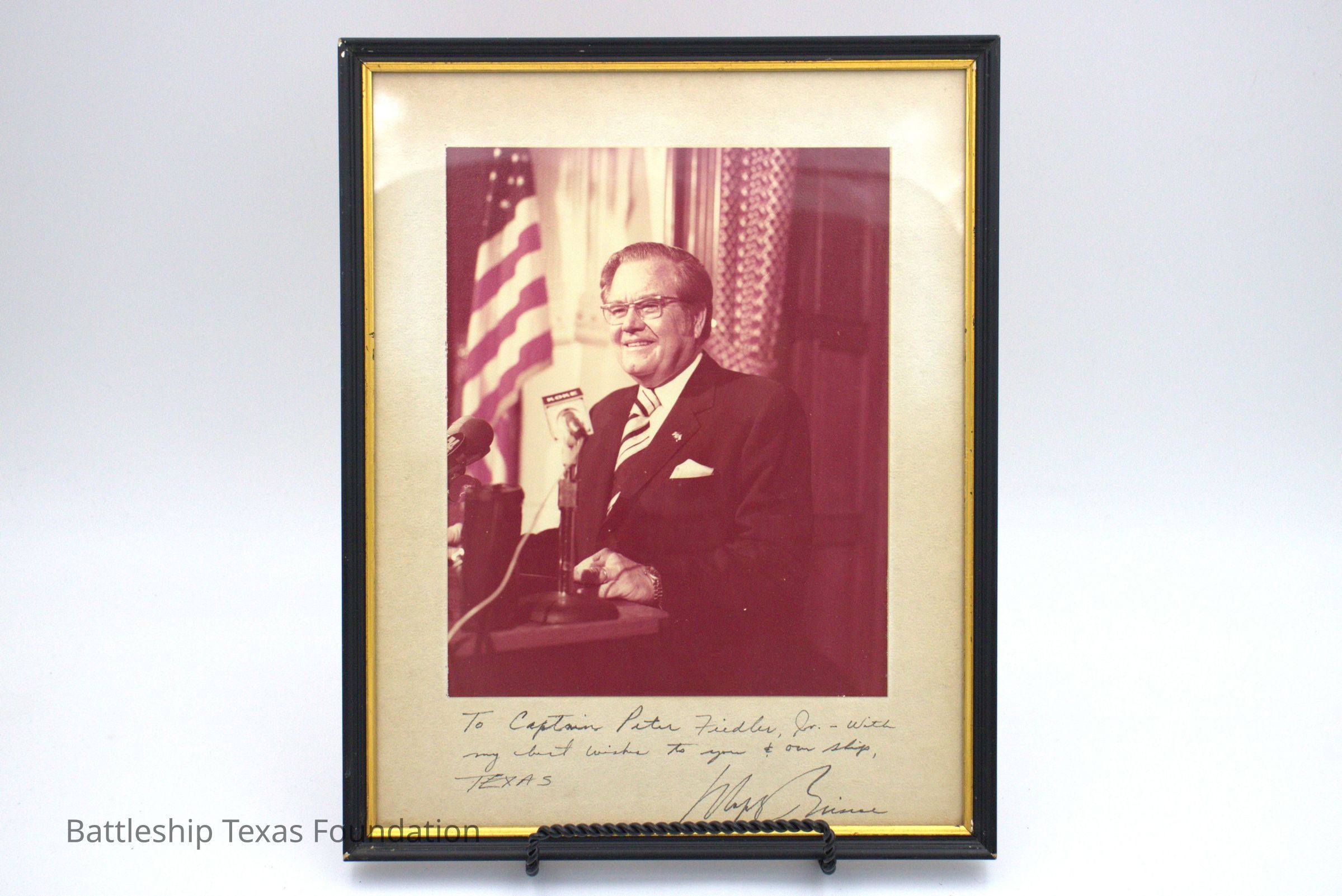 Photograph of Dolph Briscoe, 41st governor of Texas from January 16, 1973 through January 16, 1979. He signed this photo to gifted it to Peter Fiedler.Context
