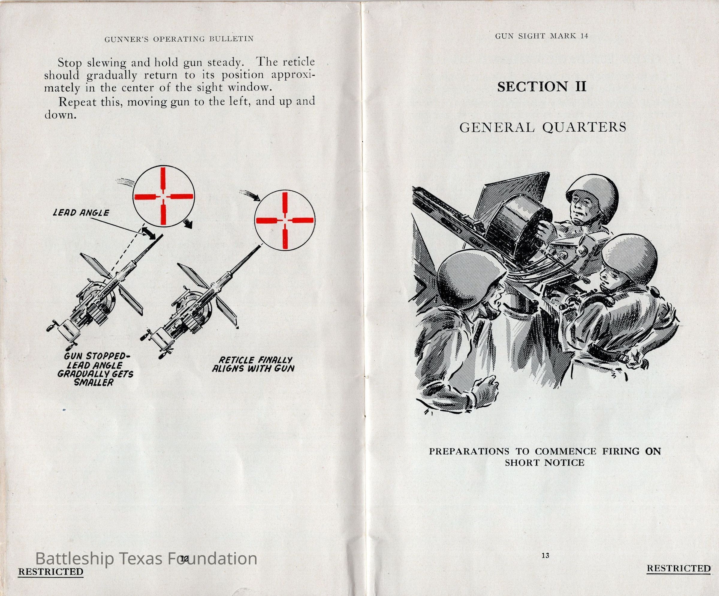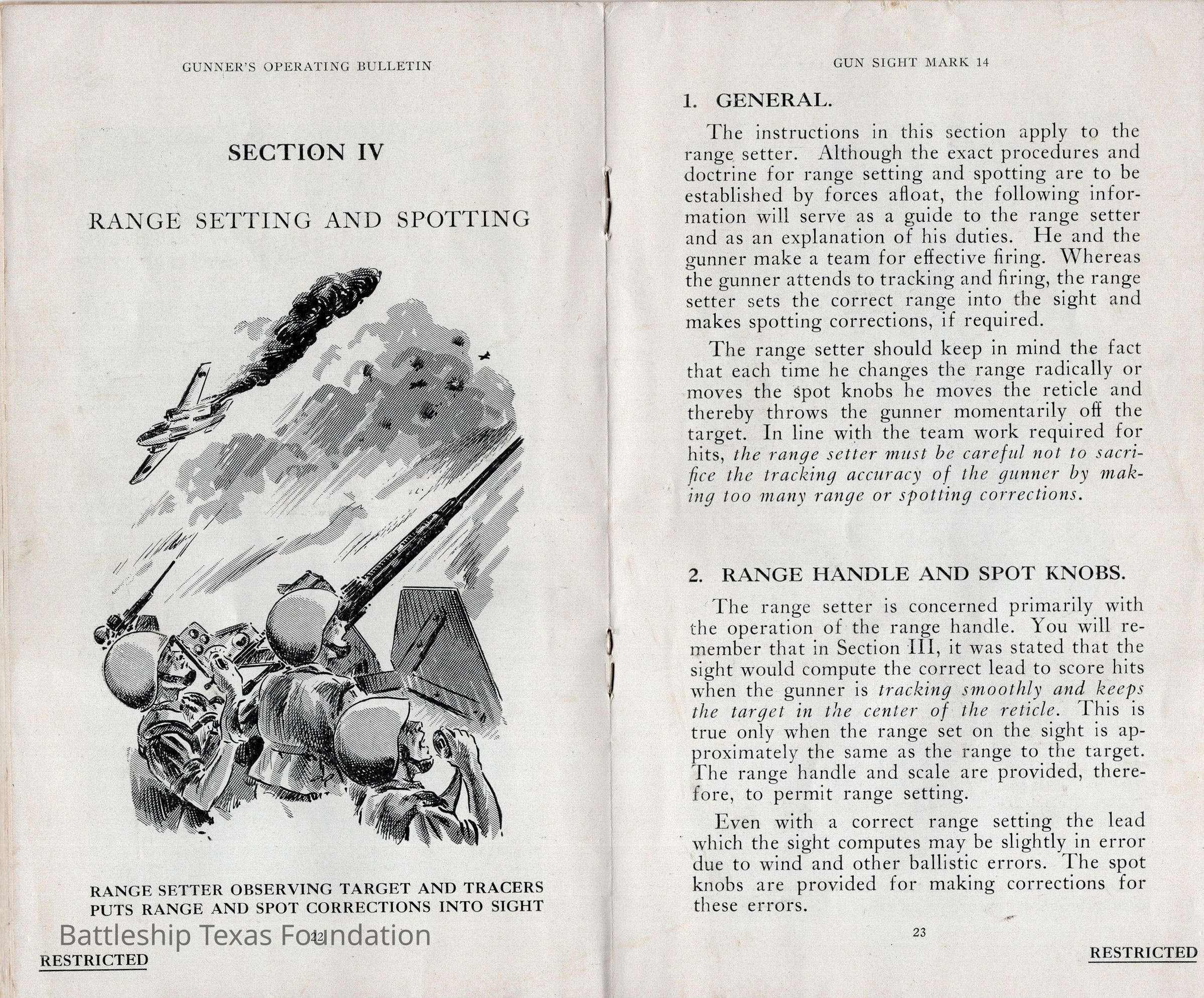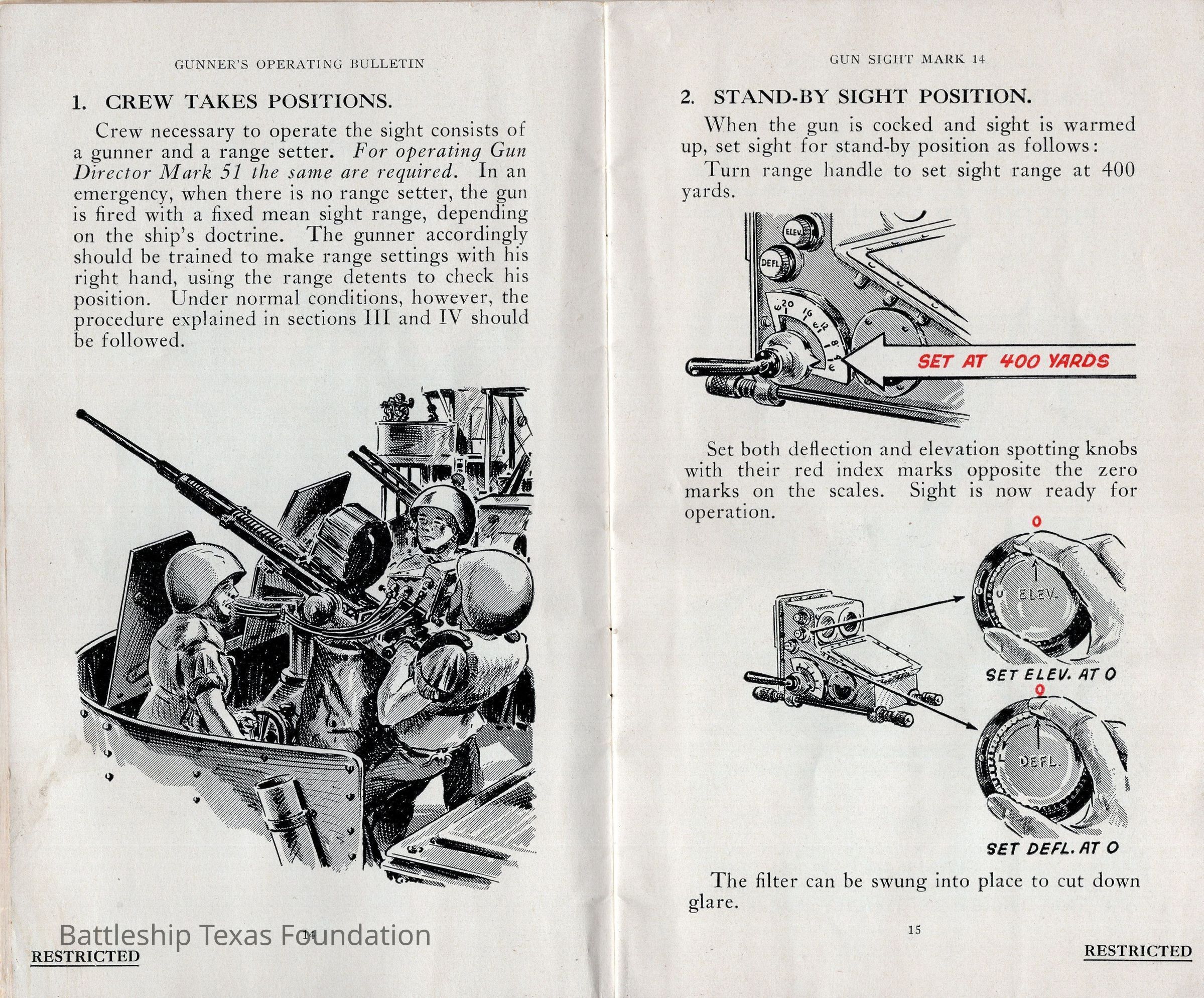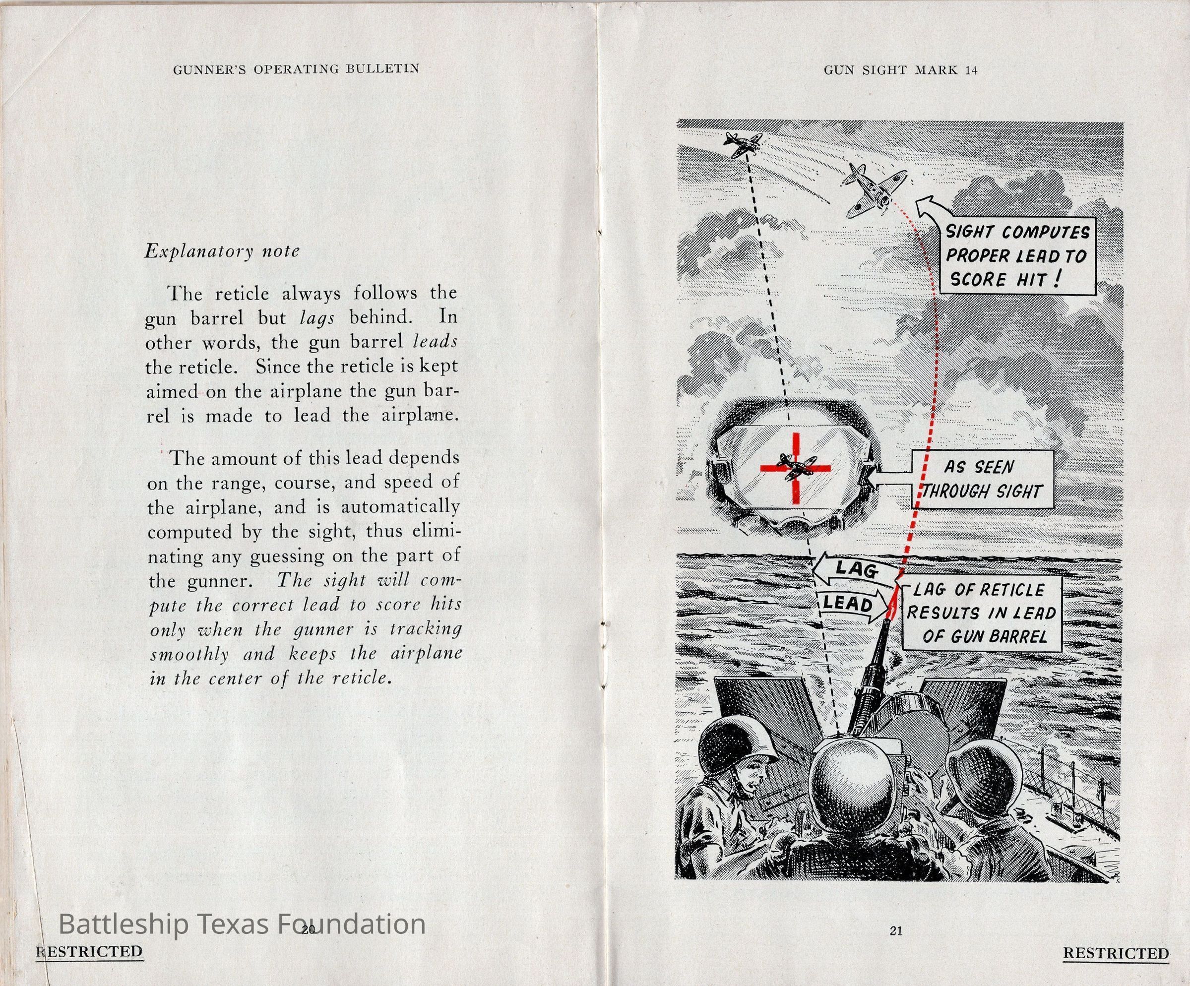 Booklet titled "Gun Sight Mark 14: Gunner's Operating Bulletin" made by the United States Fleet, headquarters of the Commander in Chief in 1943.Context