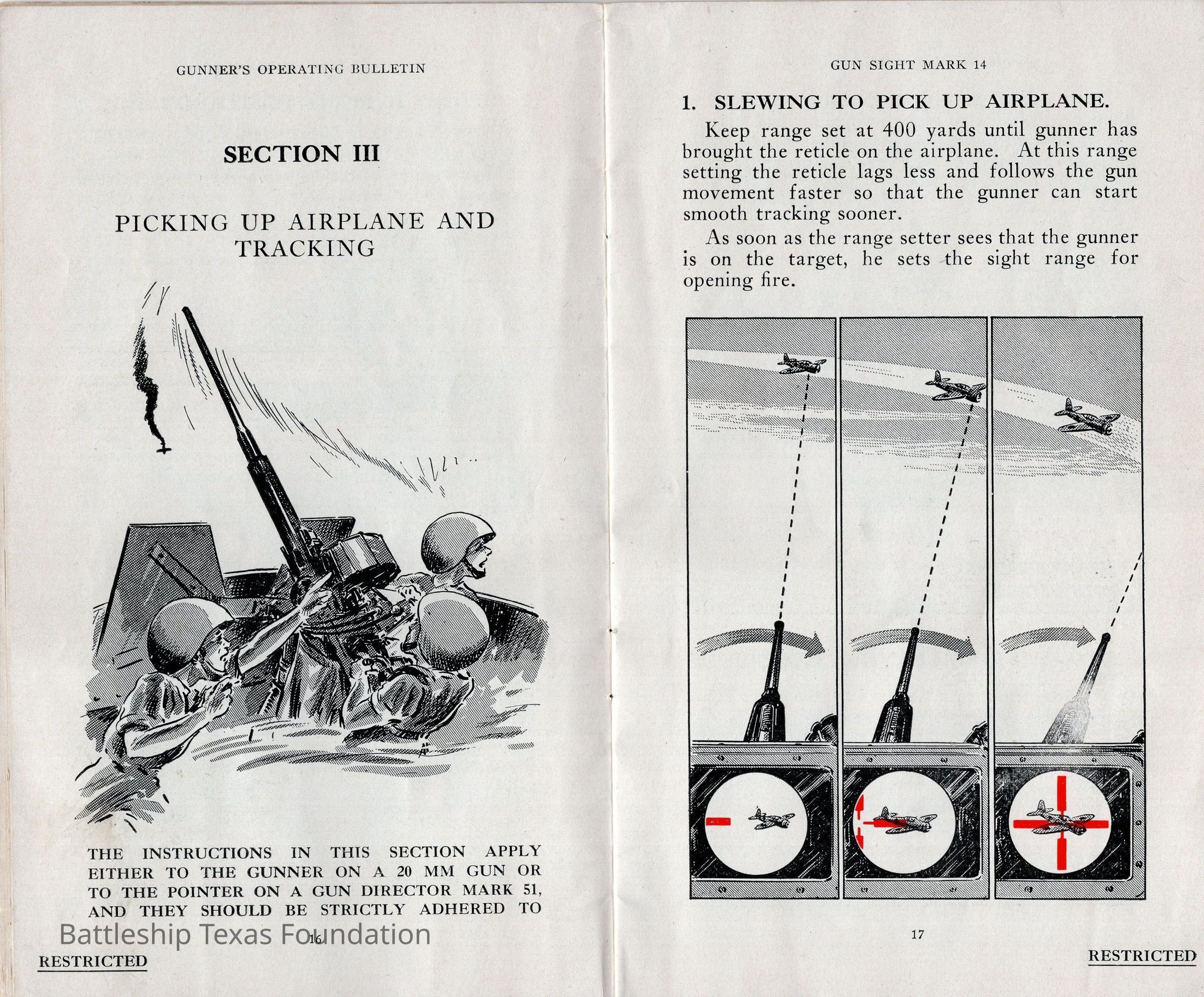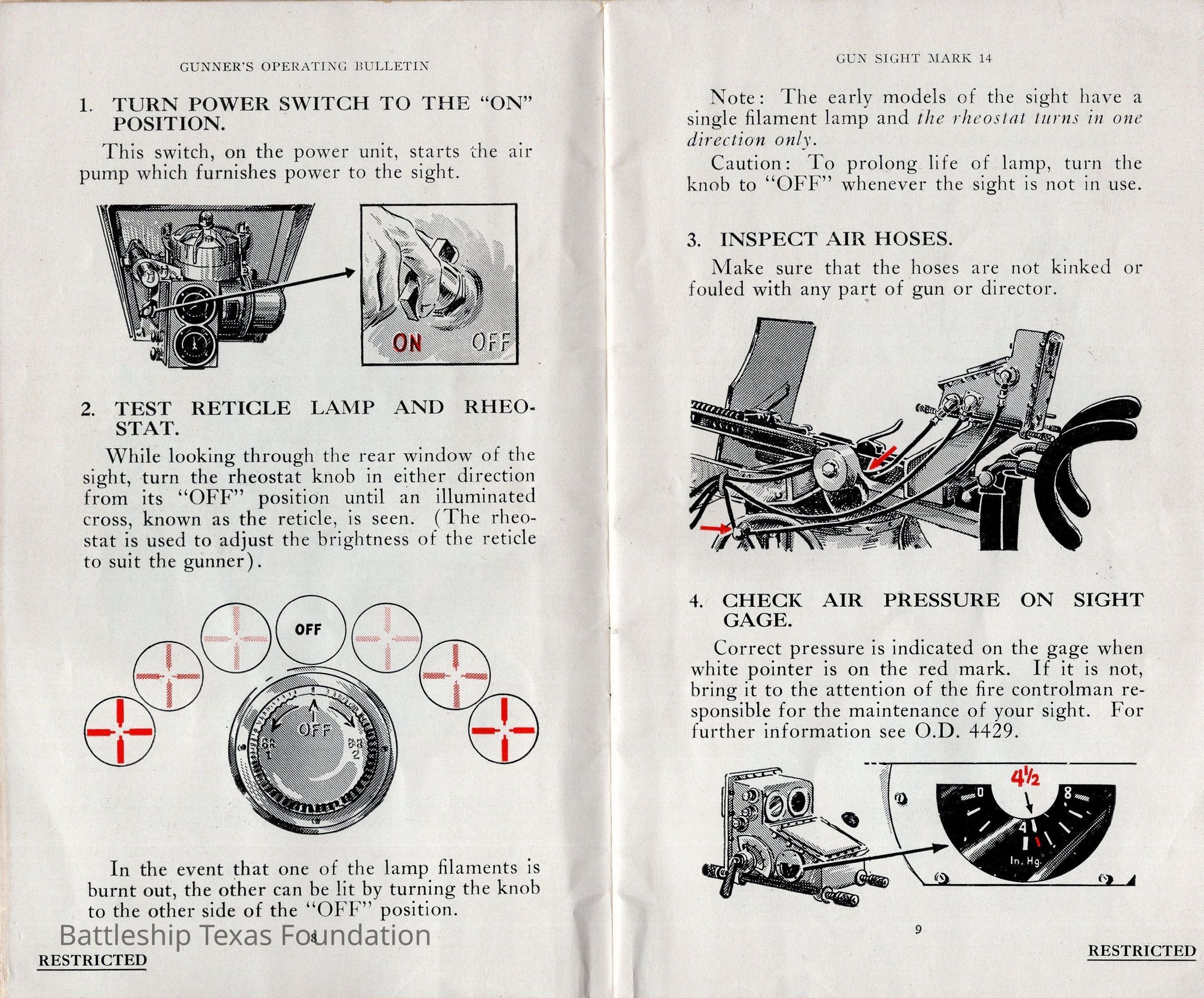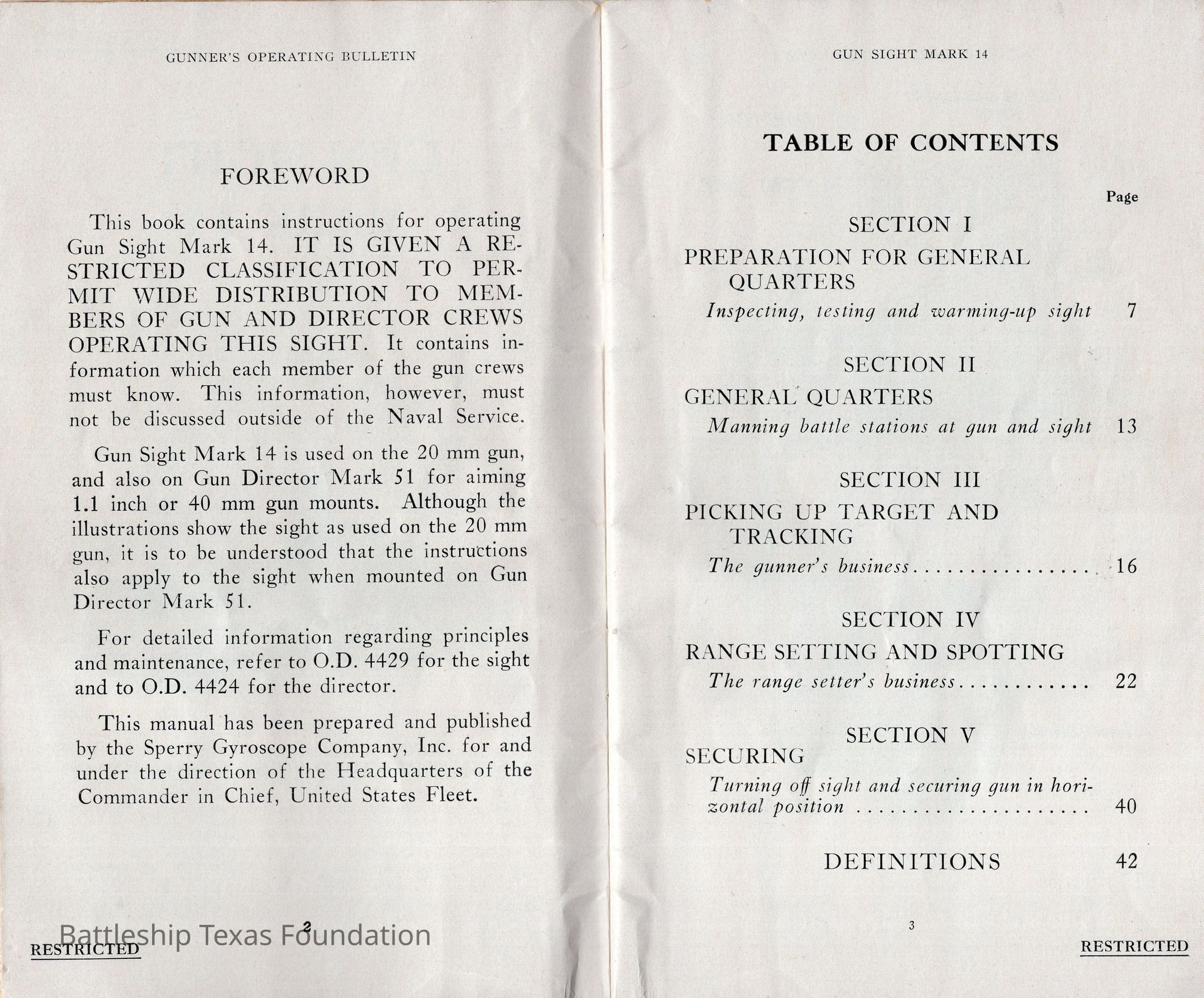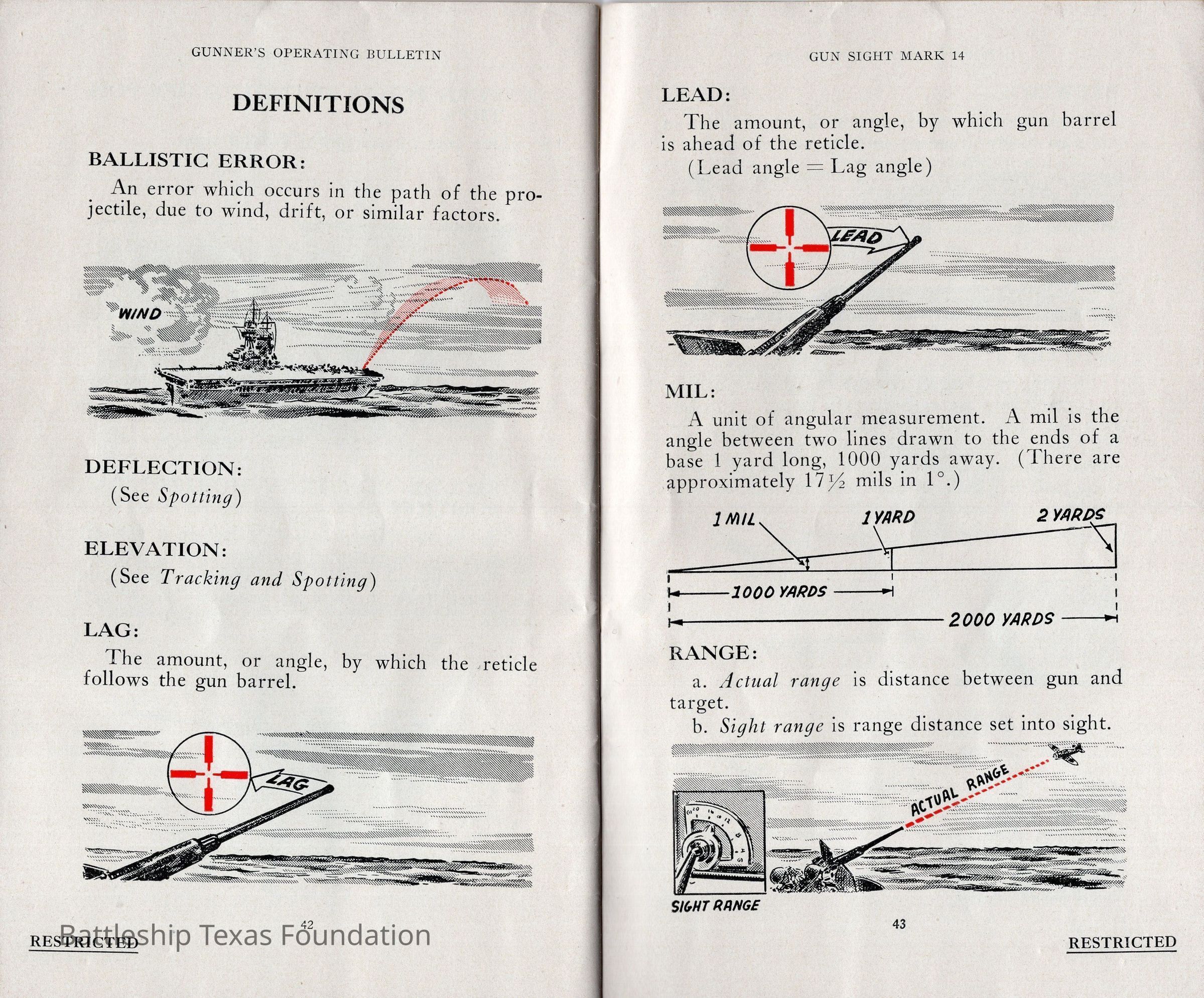 Booklet titled "Gun Sight Mark 14: Gunner's Operating Bulletin" made by the United States Fleet, headquarters of the Commander in Chief in 1943.Context