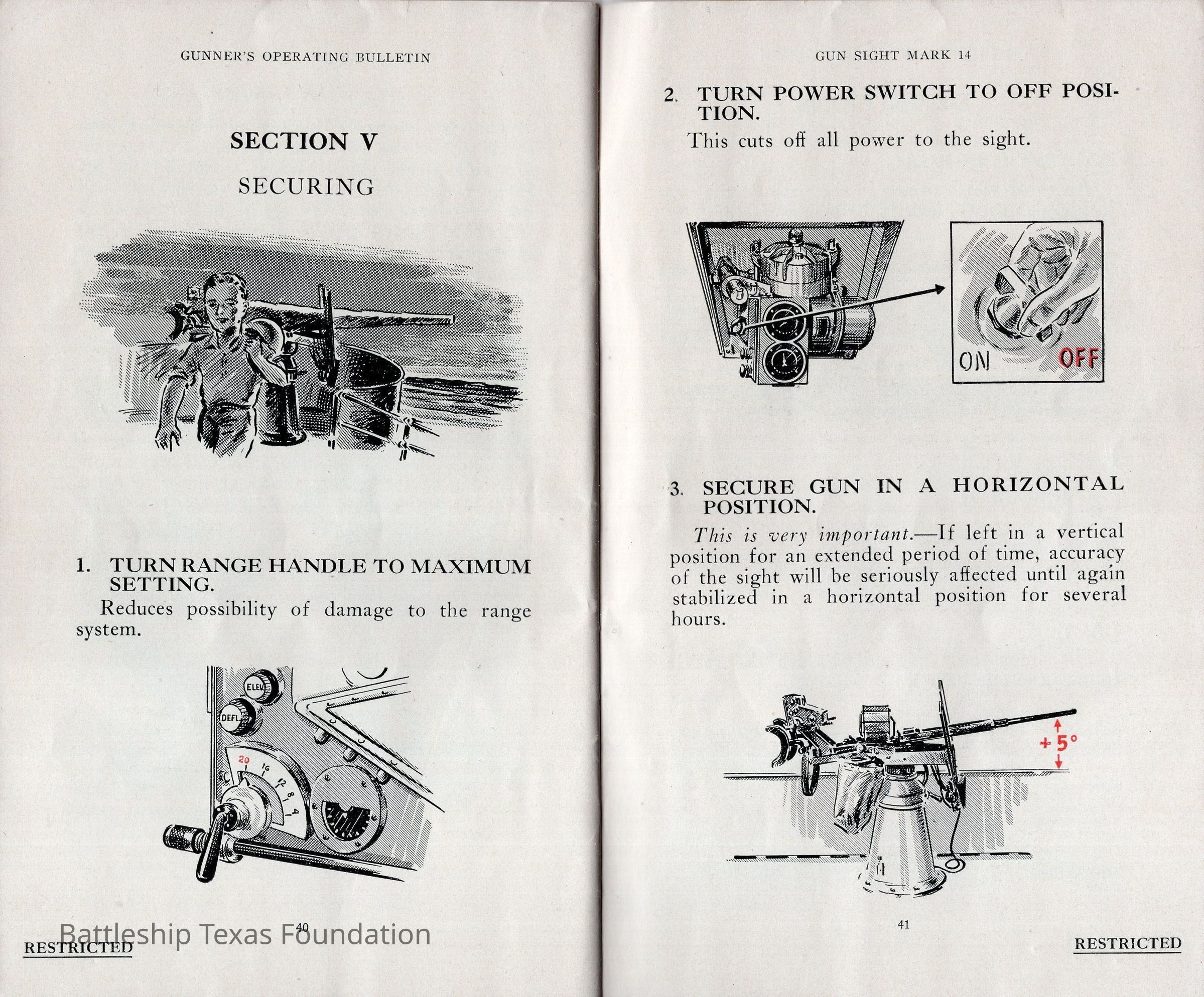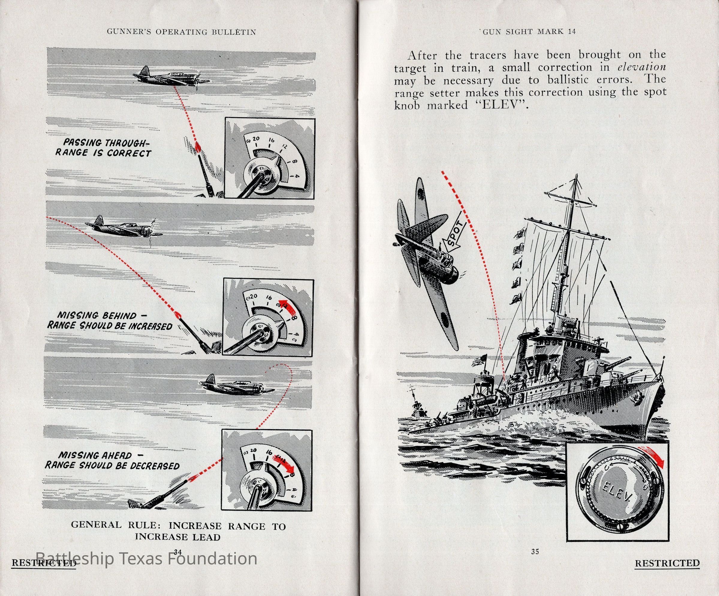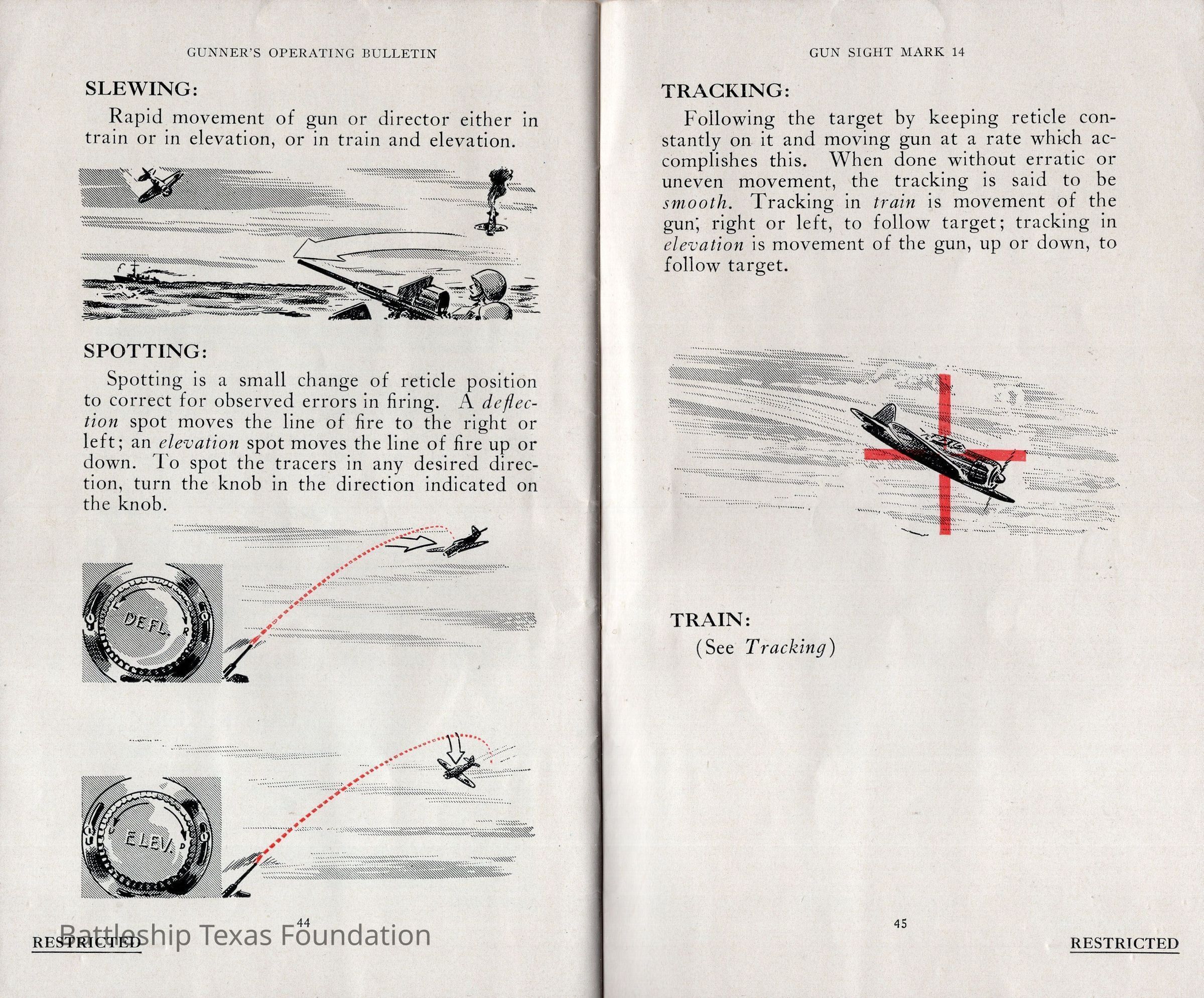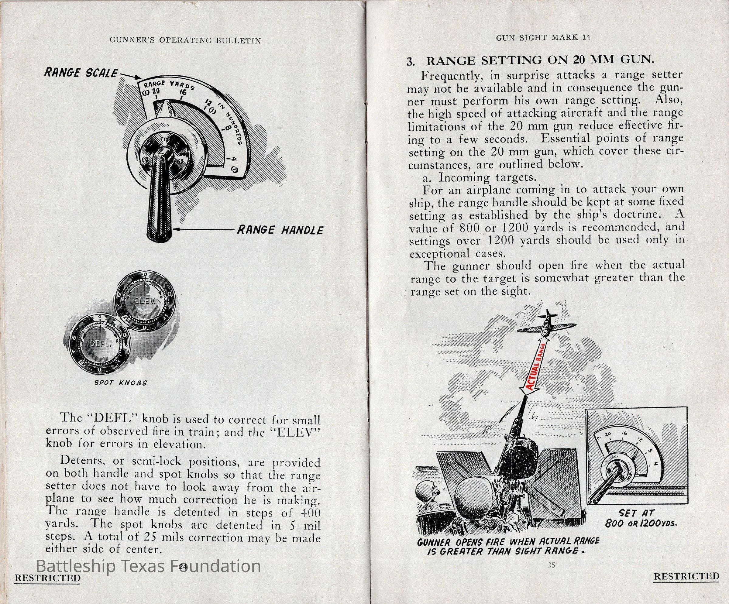 Booklet titled "Gun Sight Mark 14: Gunner's Operating Bulletin" made by the United States Fleet, headquarters of the Commander in Chief in 1943.Context