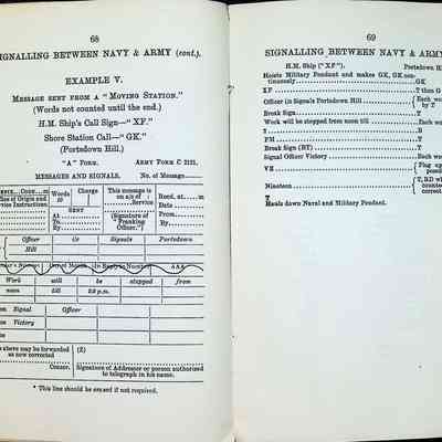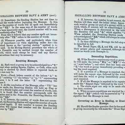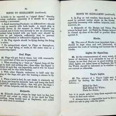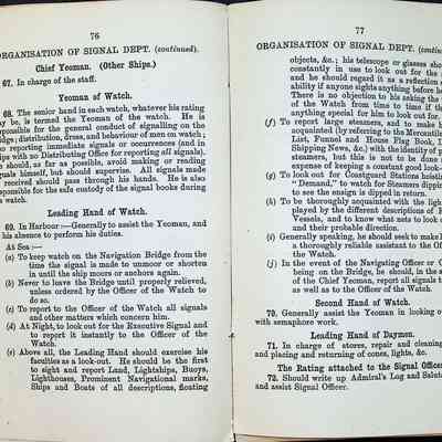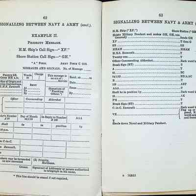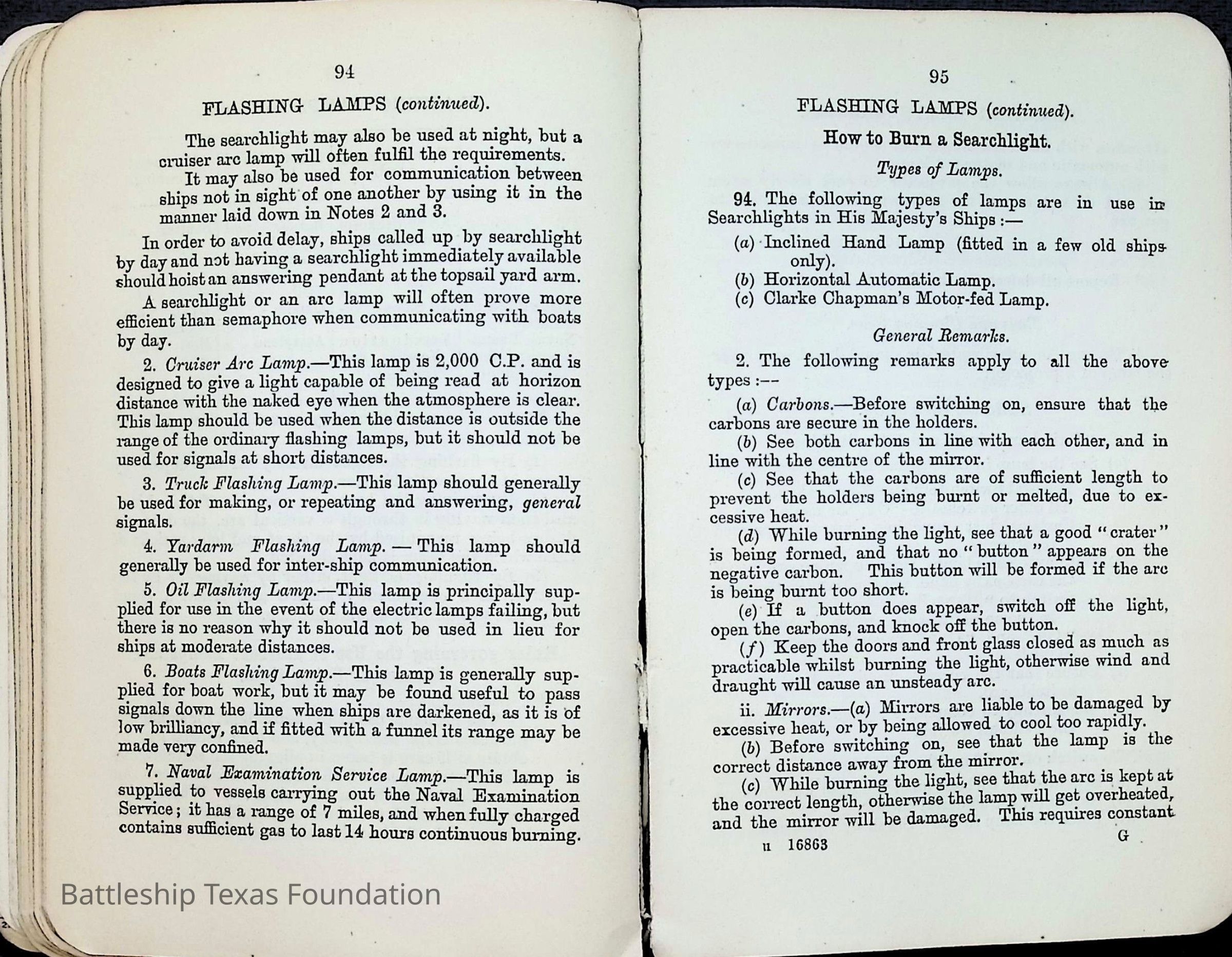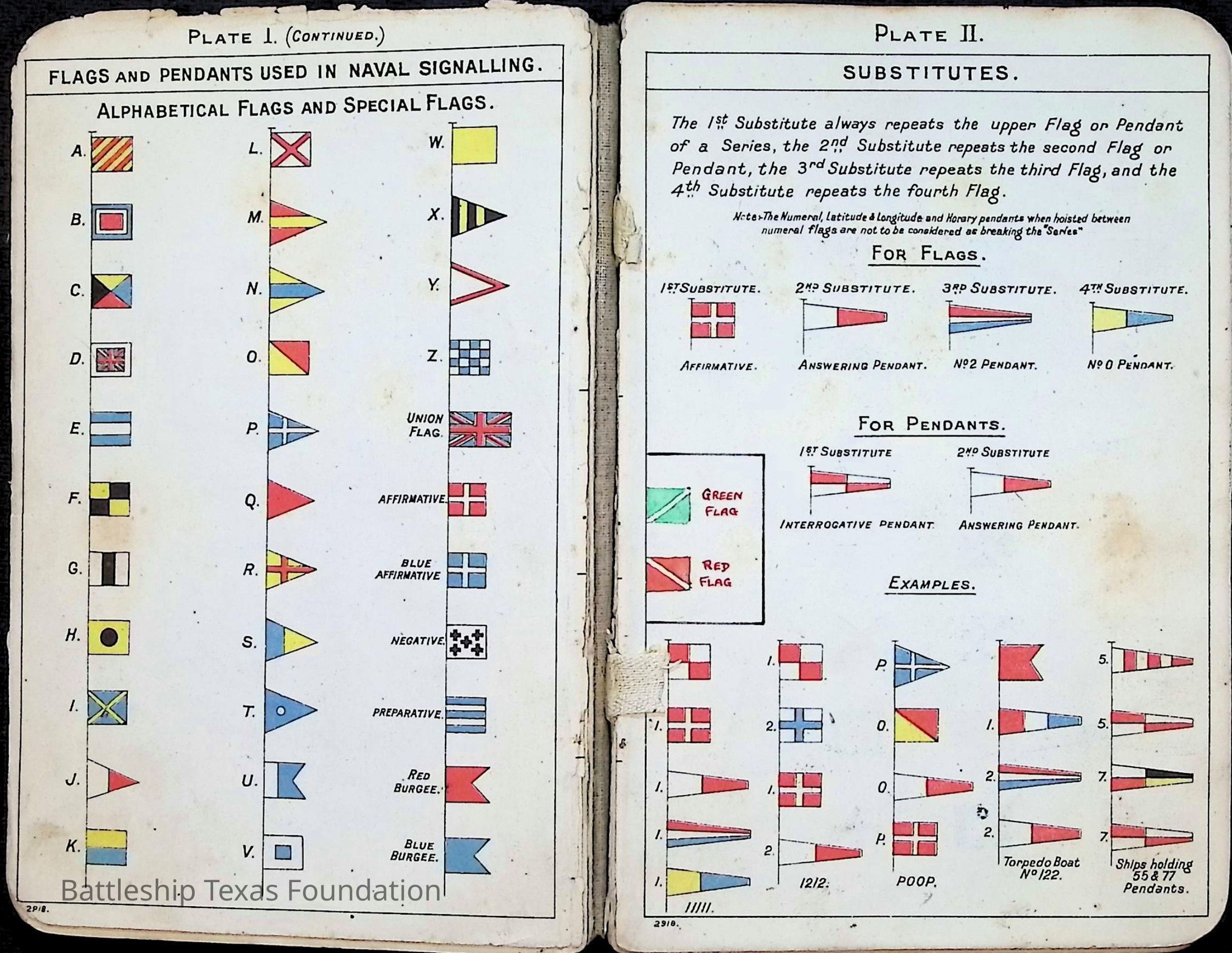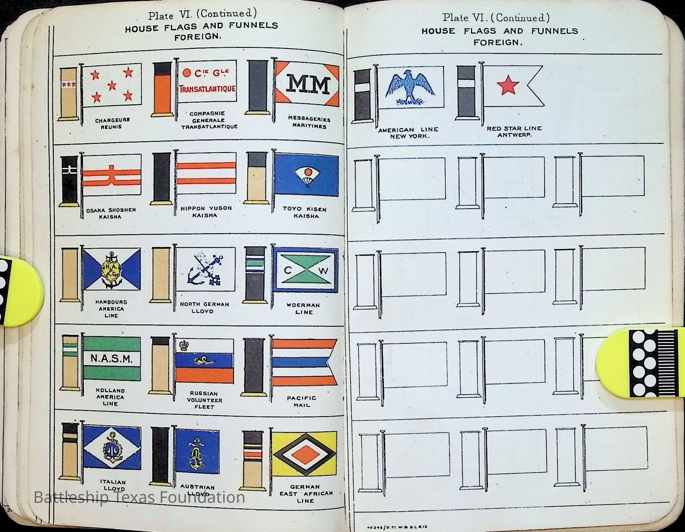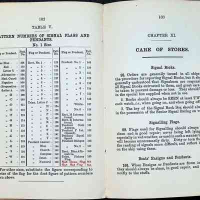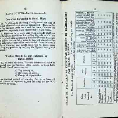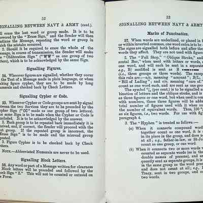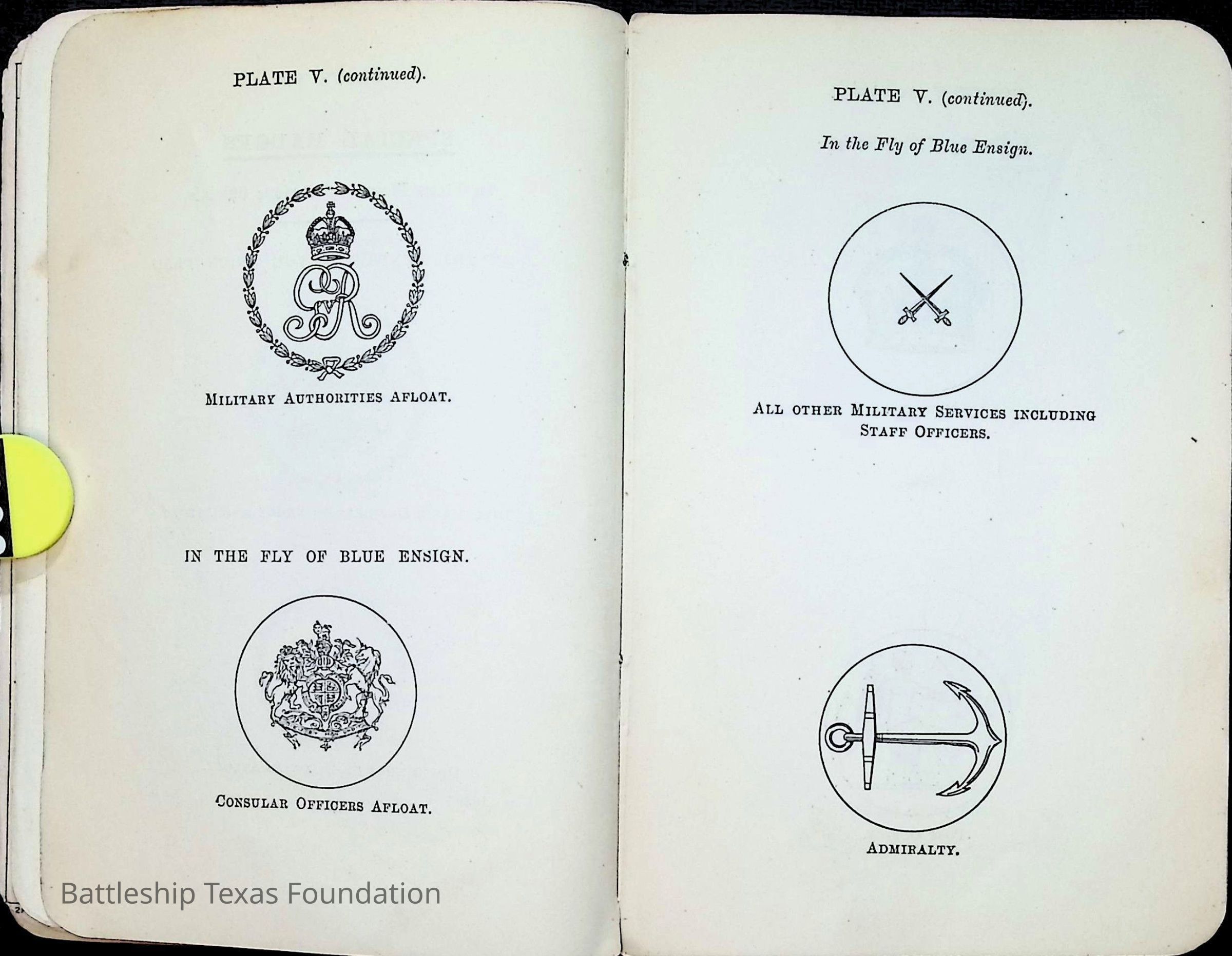 British Navy Handbook of Signalling 1913 owned by two Yeomen on USS Texas, humorously referred to as "HMS Texas" in the inside cover. Handbook was used during action with British Grand Fleet during World War One. Handbook received by crew members shortly after arriving in European waters in February 11. Dated February 24, 1918.Context