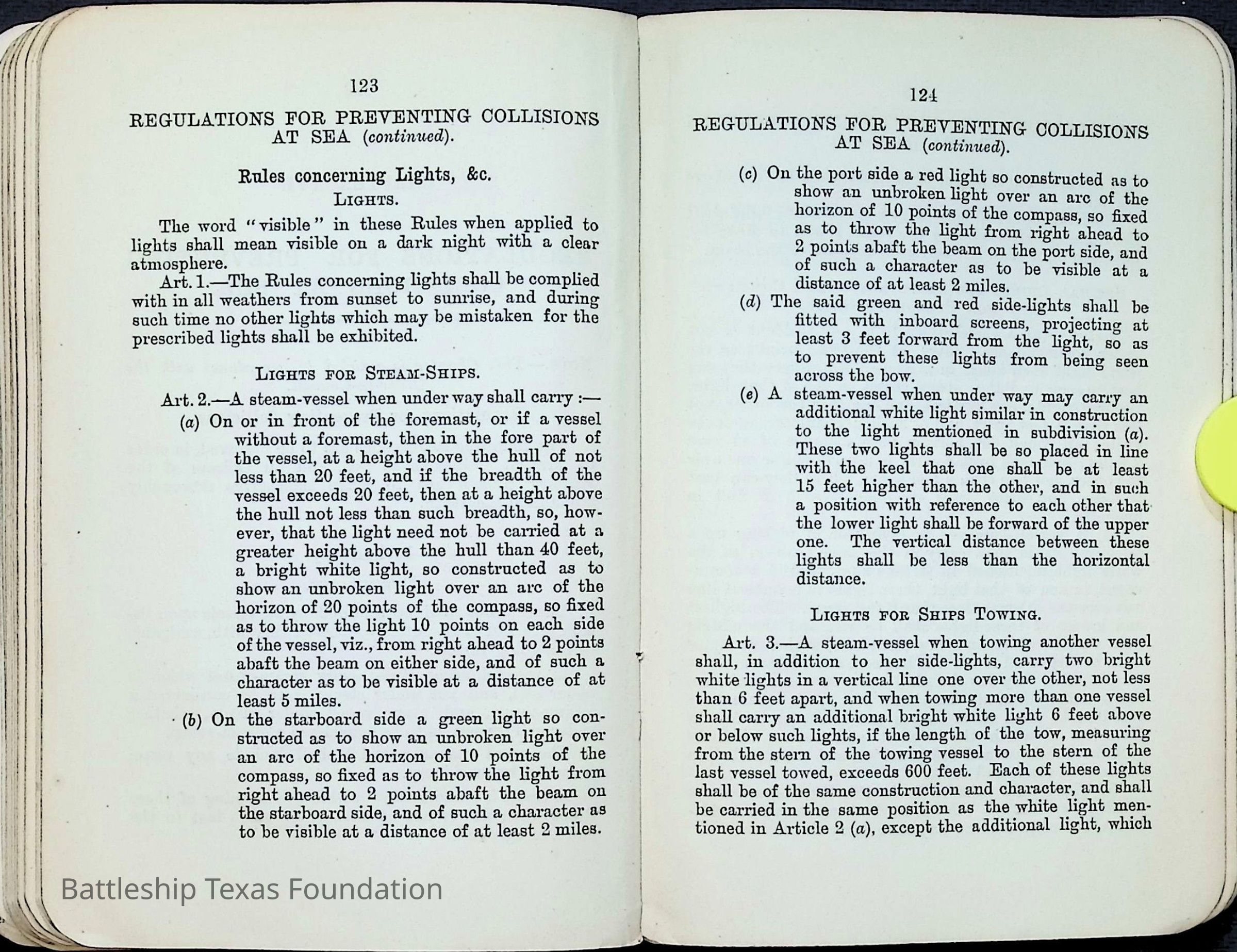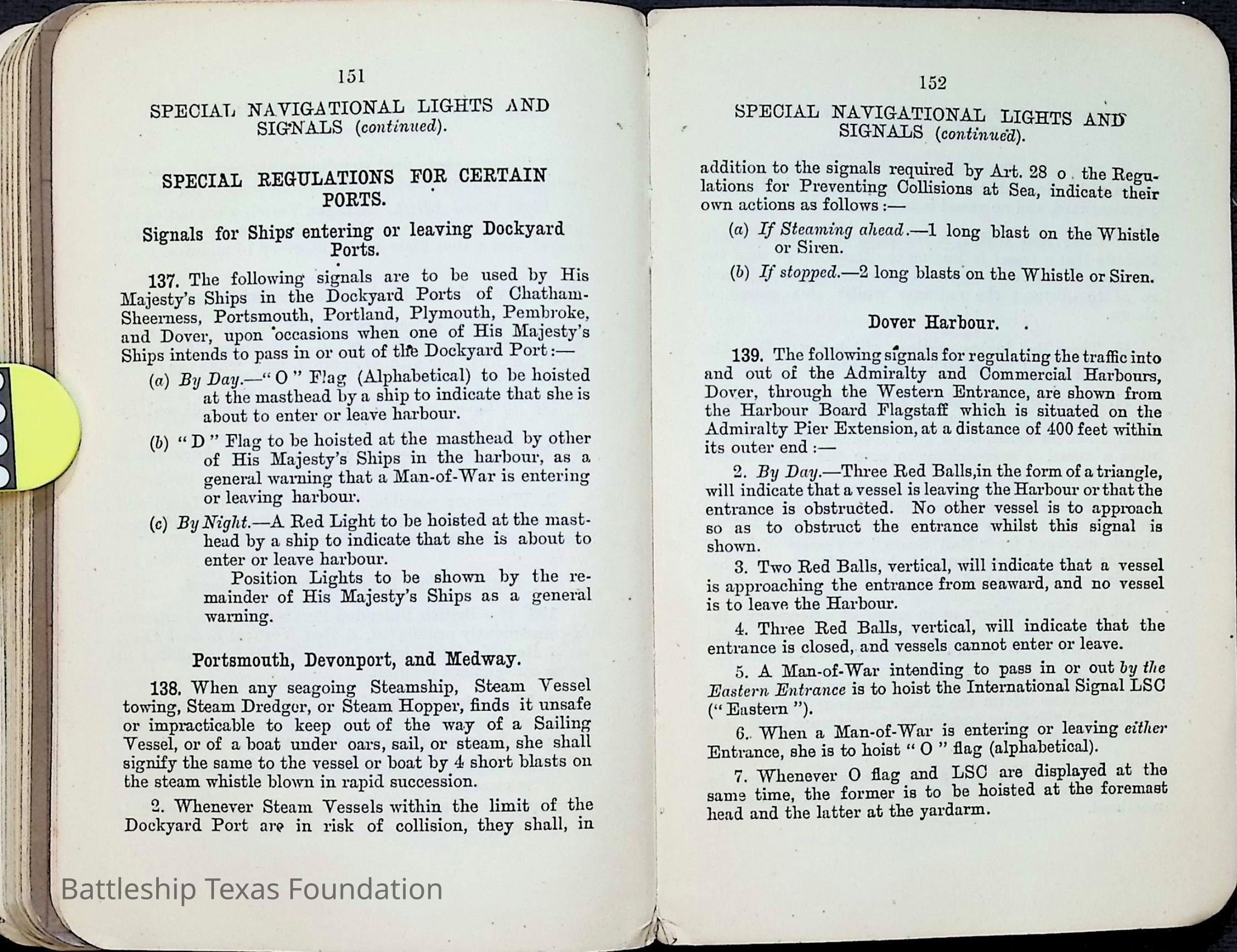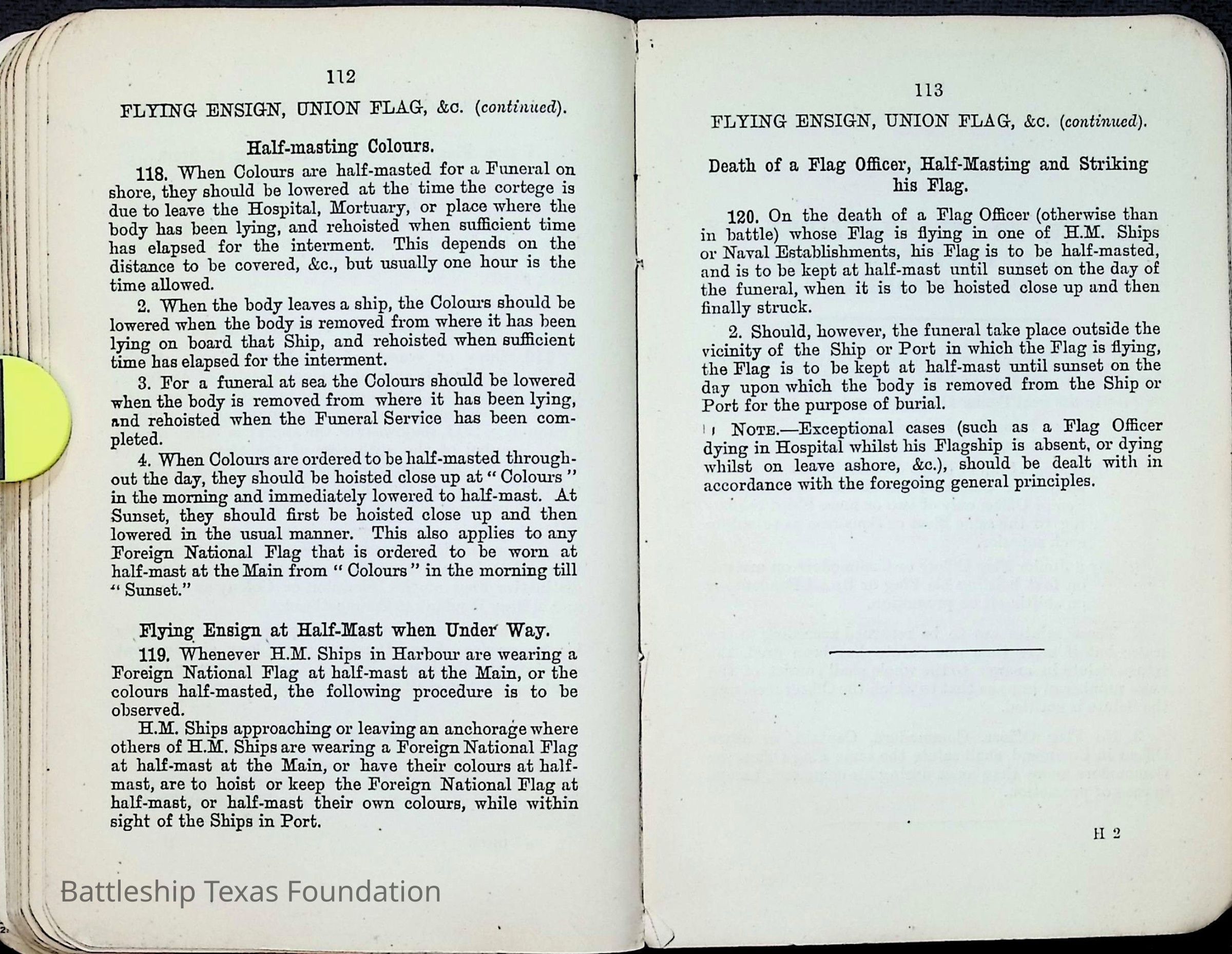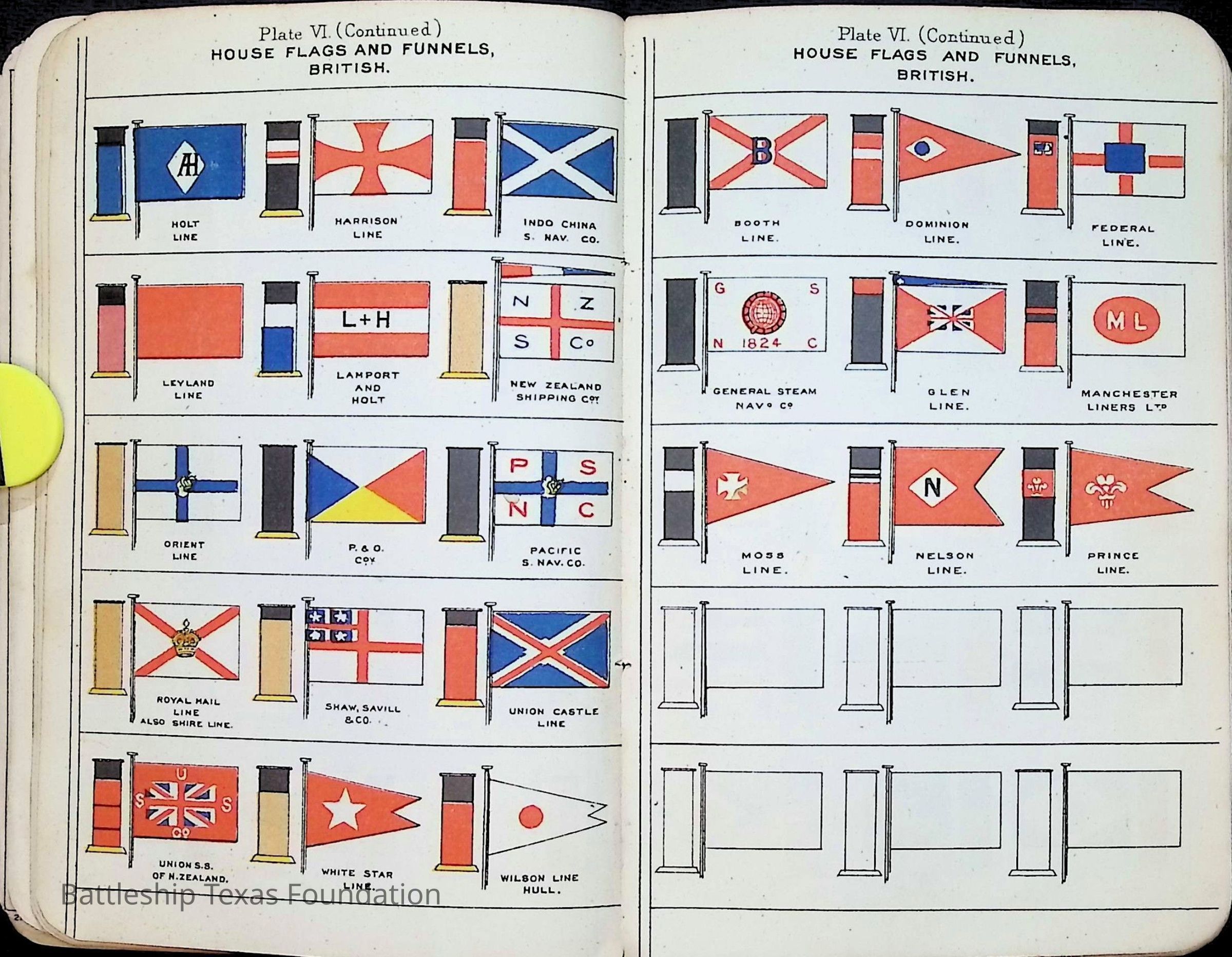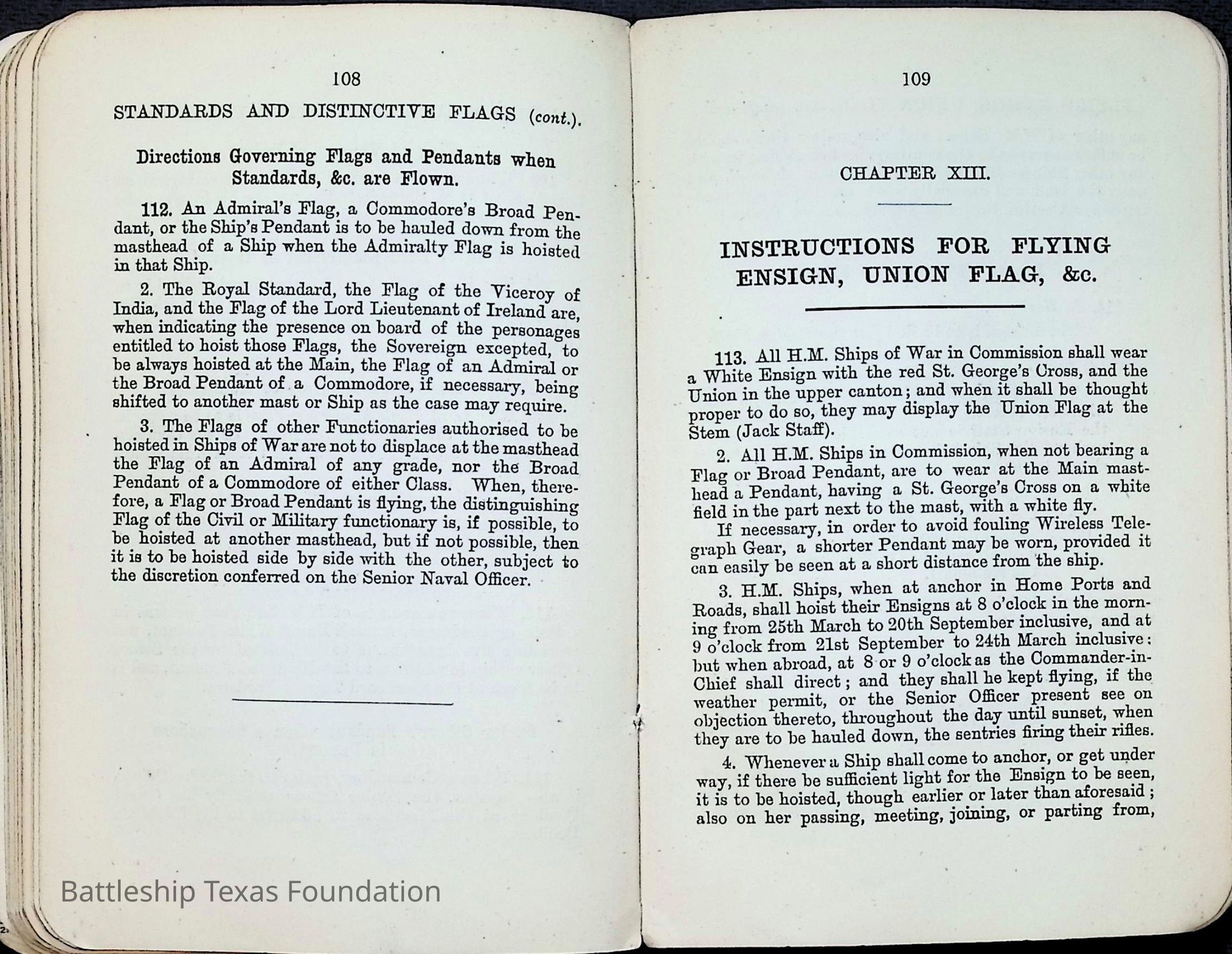 British Navy Handbook of Signalling 1913 owned by two Yeomen on USS Texas, humorously referred to as "HMS Texas" in the inside cover. Handbook was used during action with British Grand Fleet during World War One. Handbook received by crew members shortly after arriving in European waters in February 11. Dated February 24, 1918.Context
