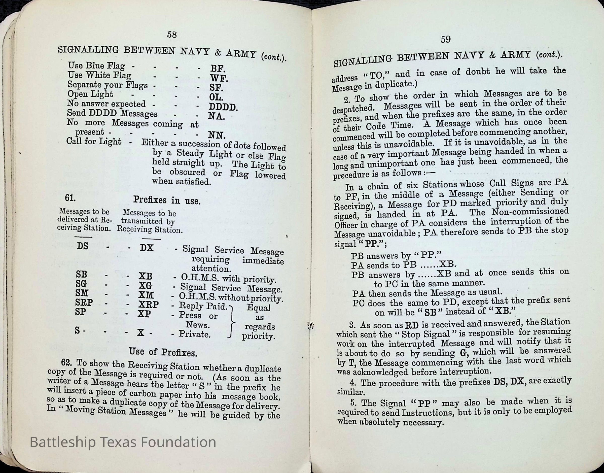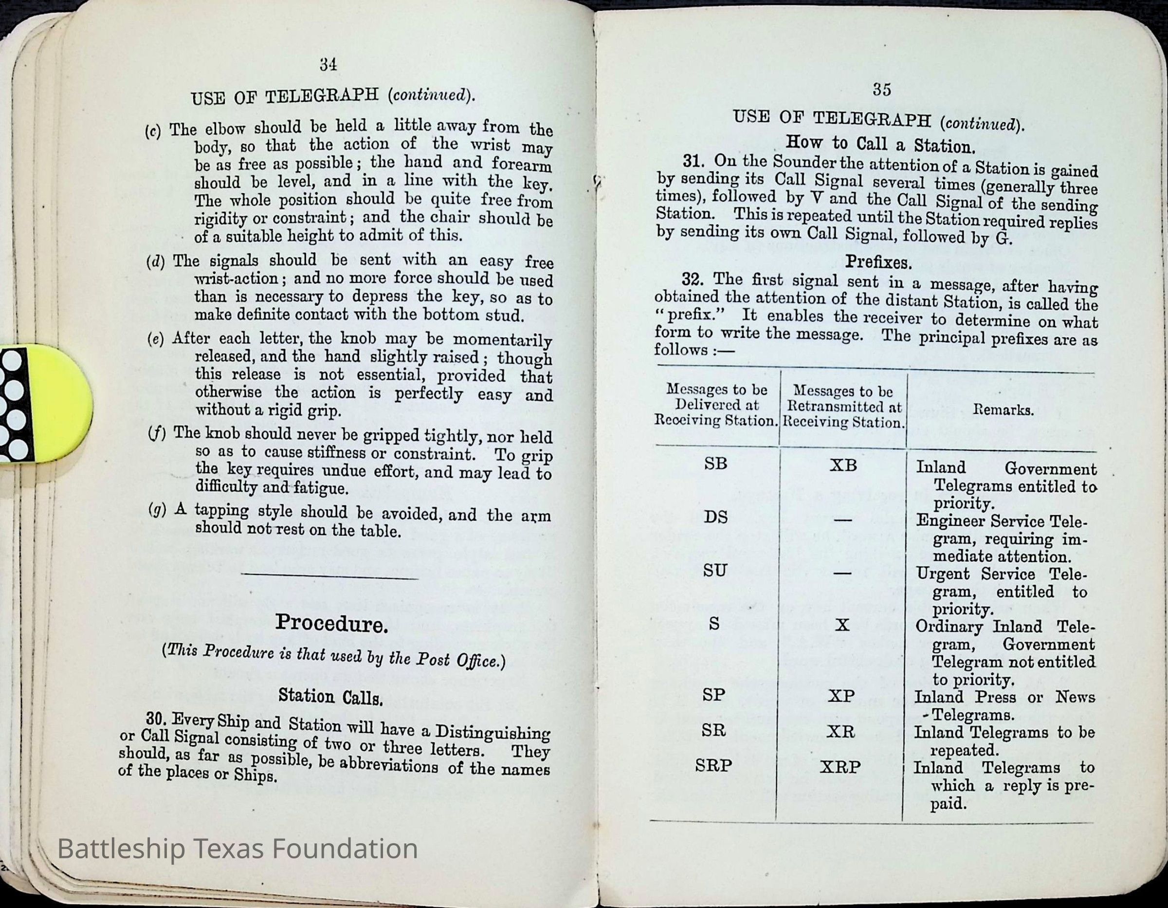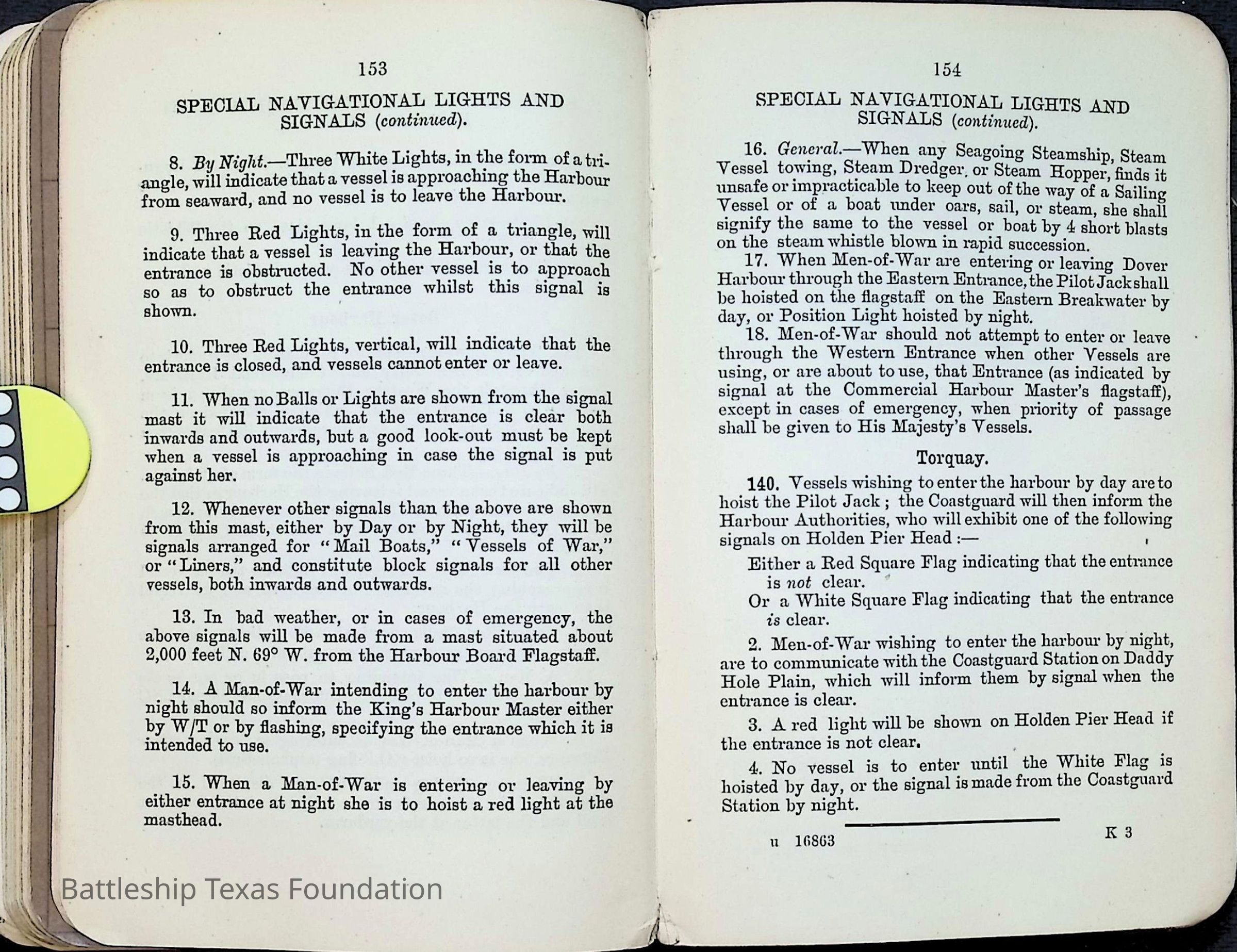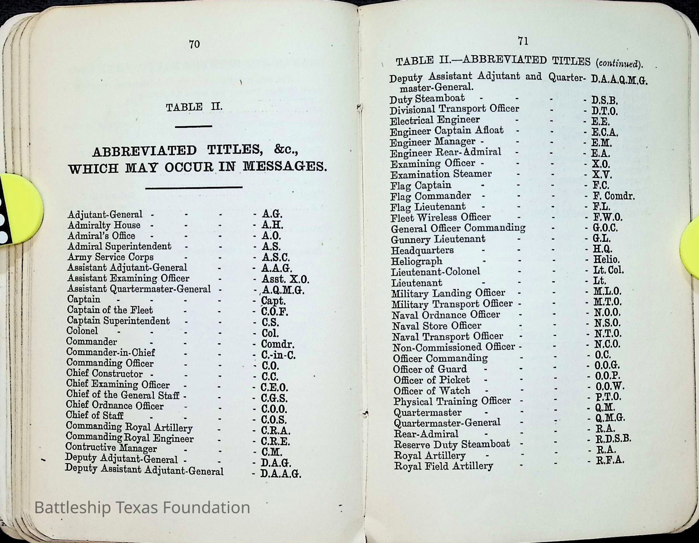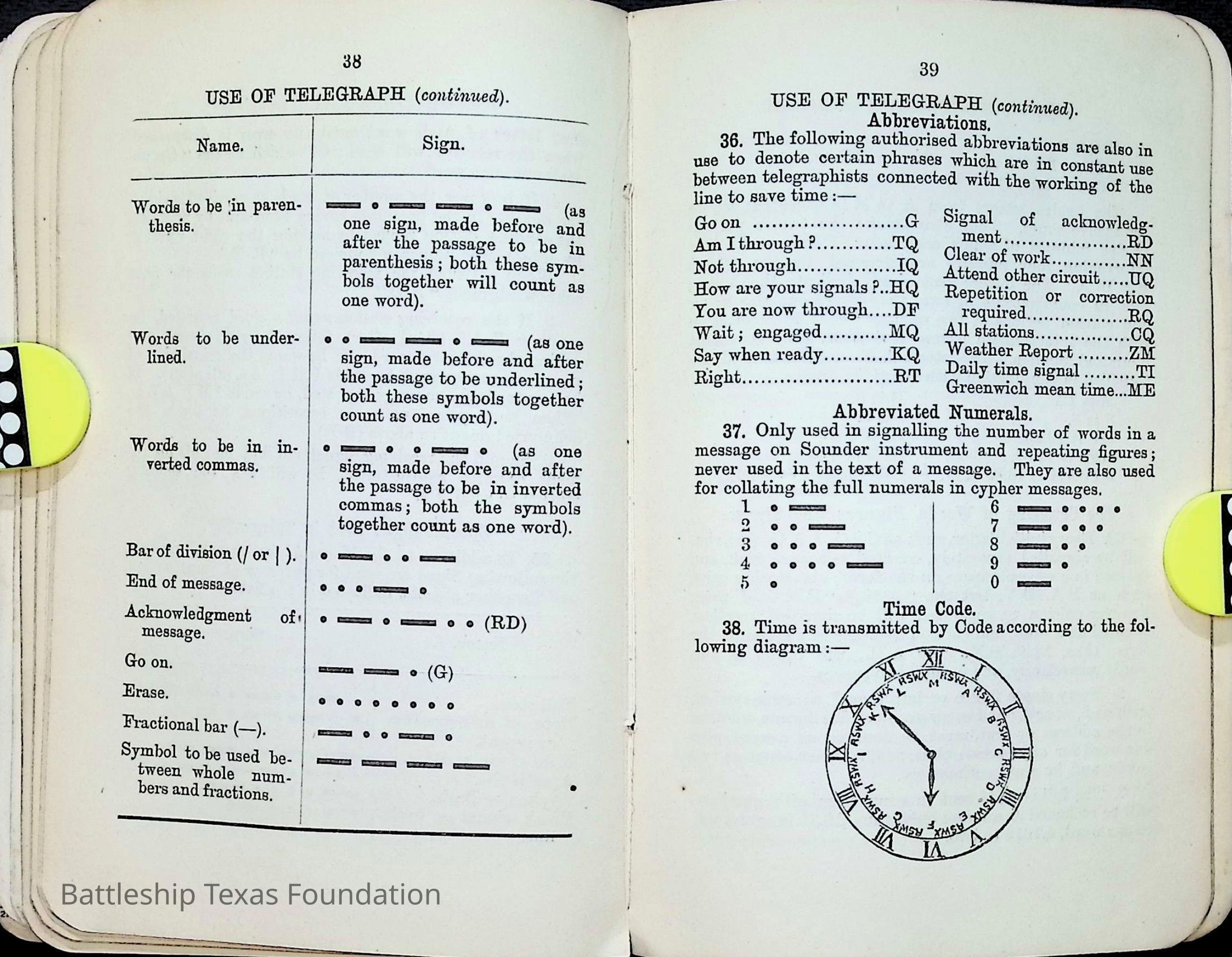 British Navy Handbook of Signalling 1913 owned by two Yeomen on USS Texas, humorously referred to as "HMS Texas" in the inside cover. Handbook was used during action with British Grand Fleet during World War One. Handbook received by crew members shortly after arriving in European waters in February 11. Dated February 24, 1918.Context
