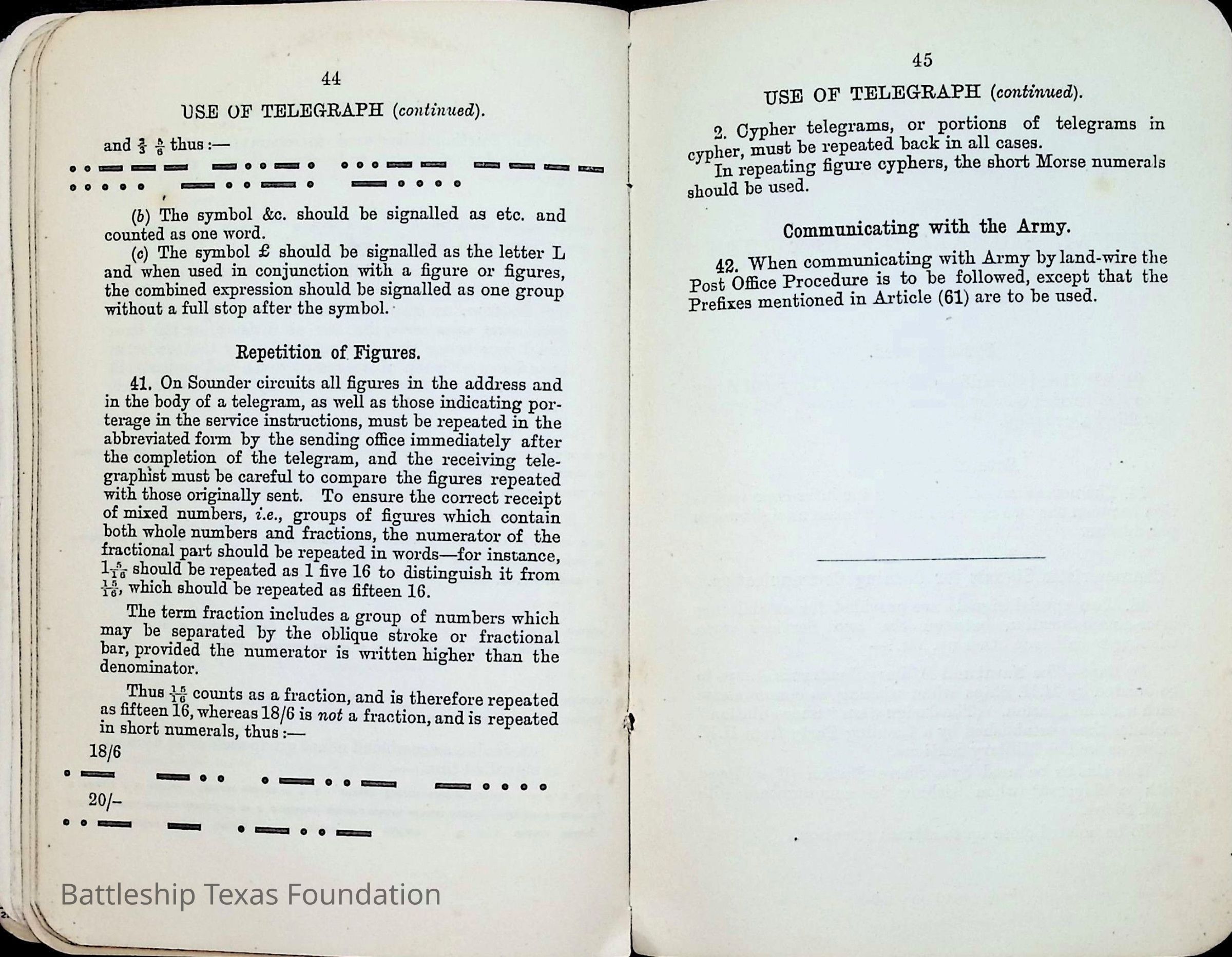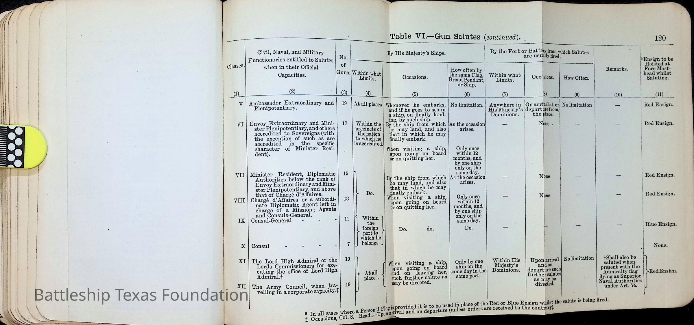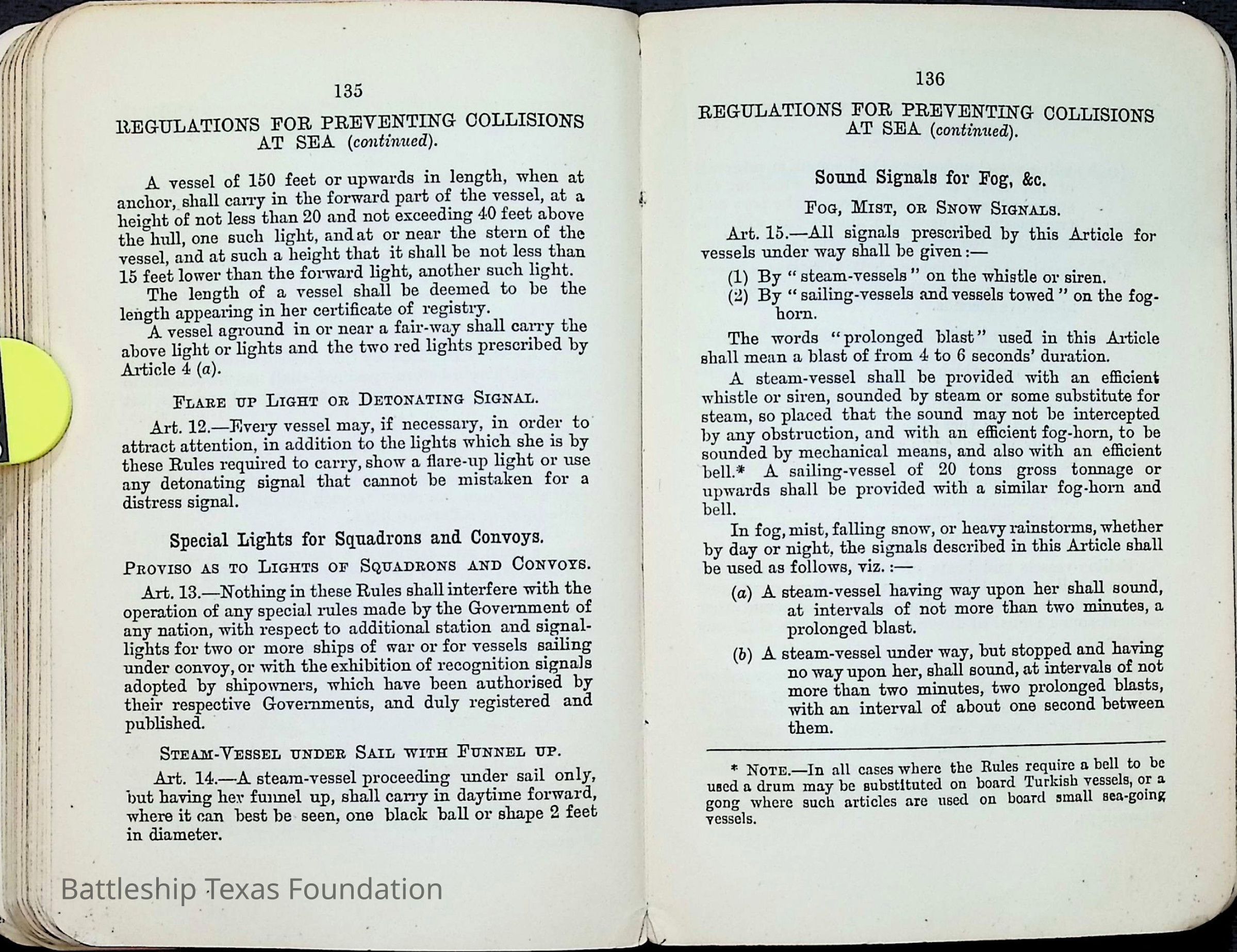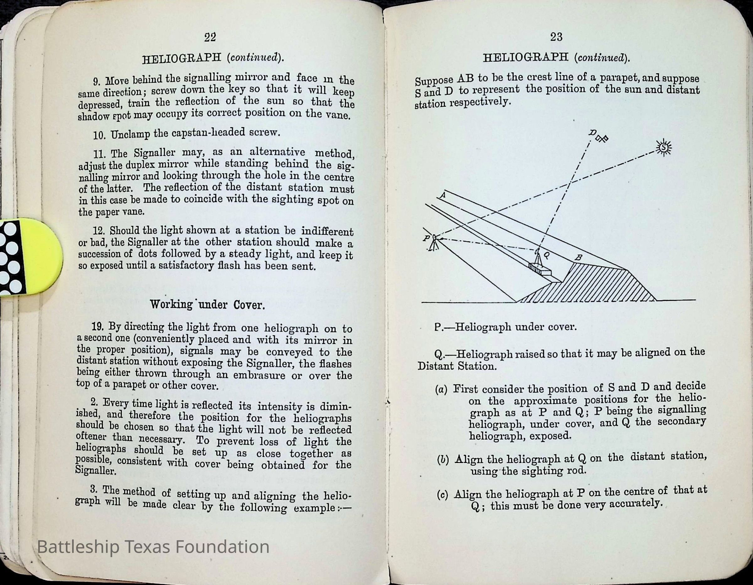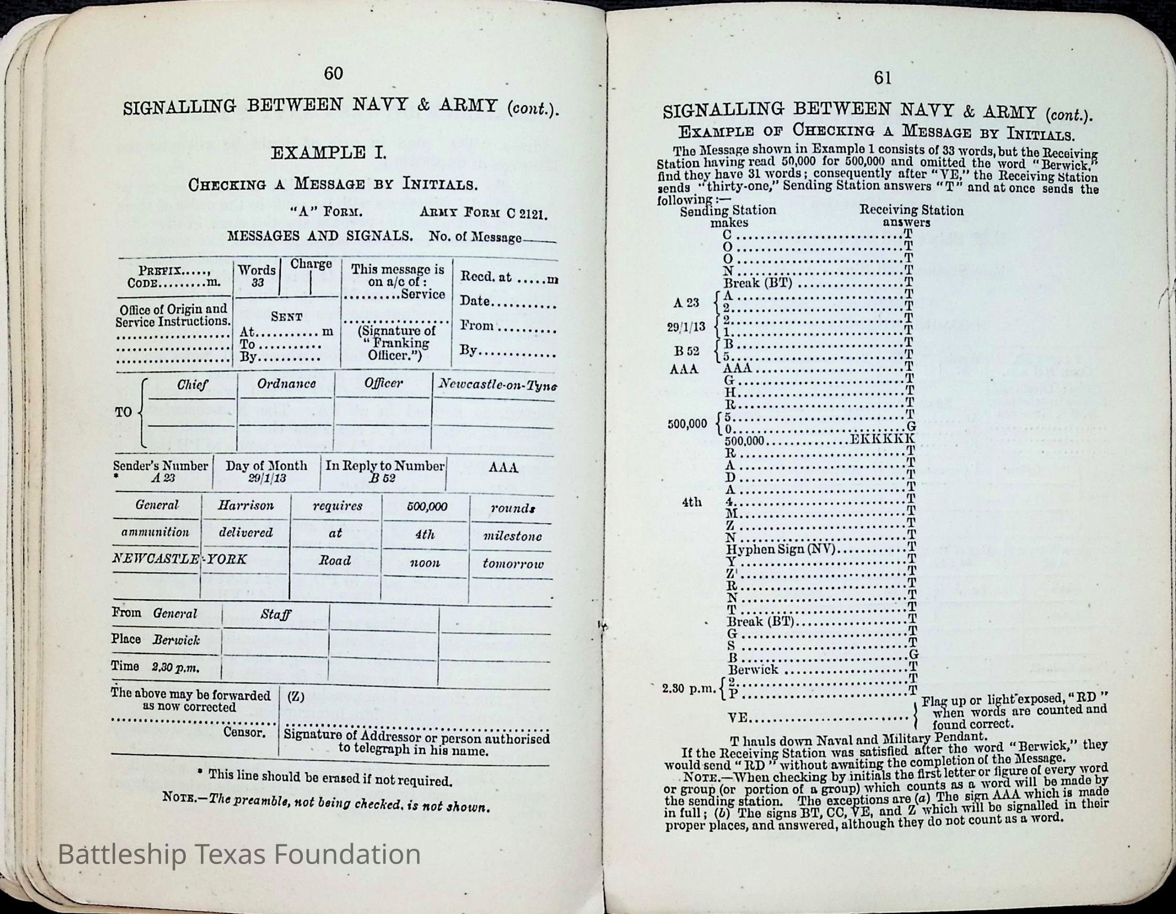 British Navy Handbook of Signalling 1913 owned by two Yeomen on USS Texas, humorously referred to as "HMS Texas" in the inside cover. Handbook was used during action with British Grand Fleet during World War One. Handbook received by crew members shortly after arriving in European waters in February 11. Dated February 24, 1918.Context