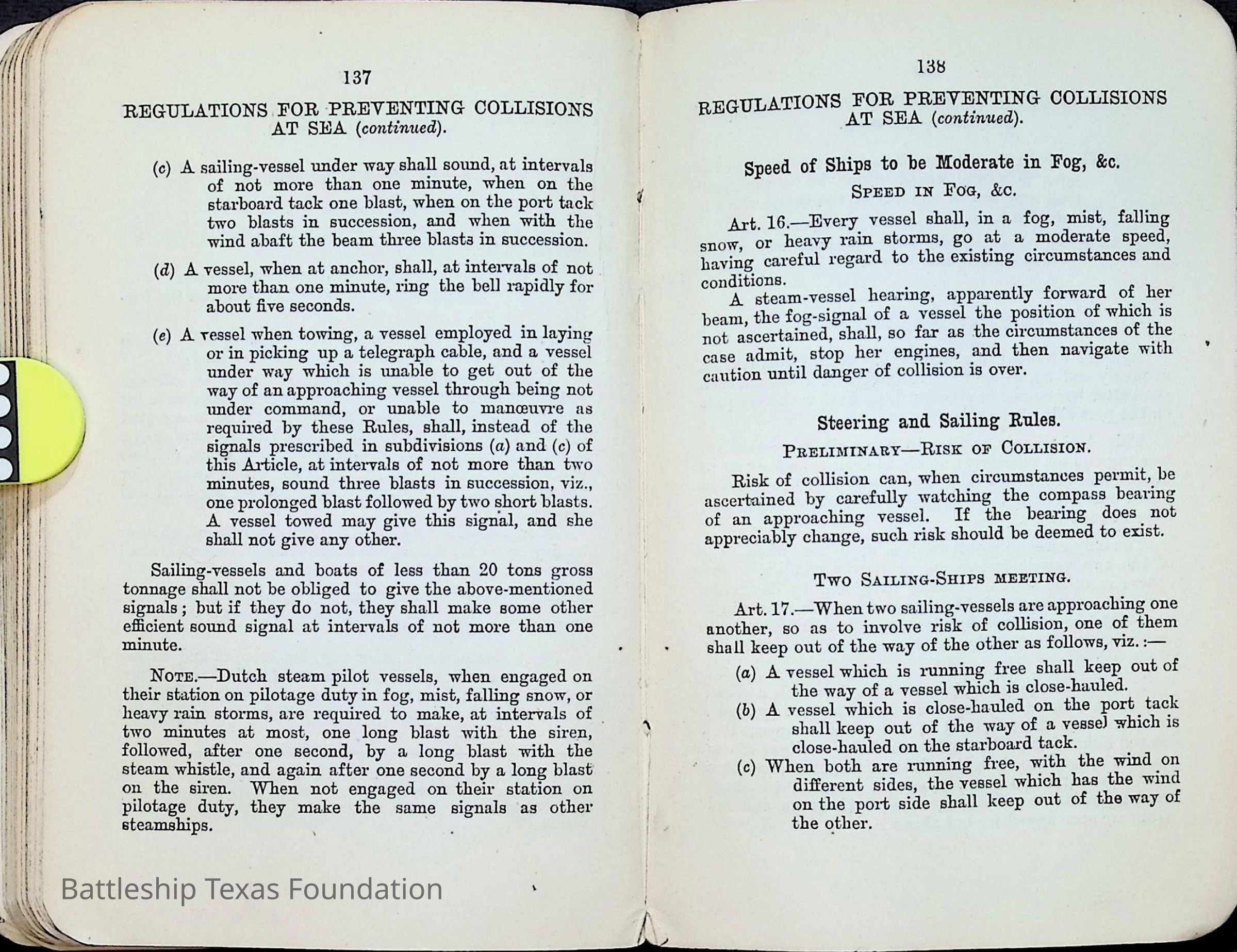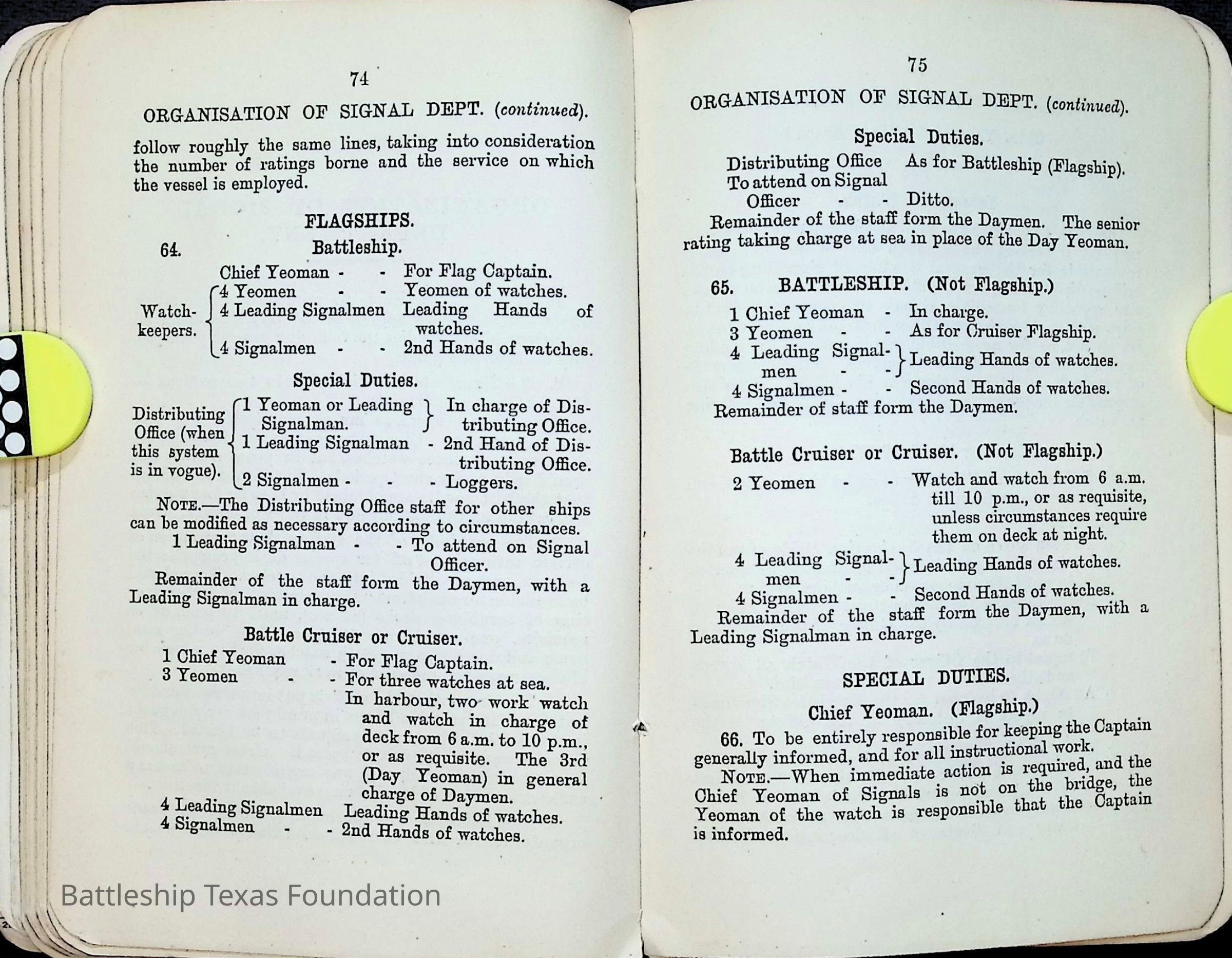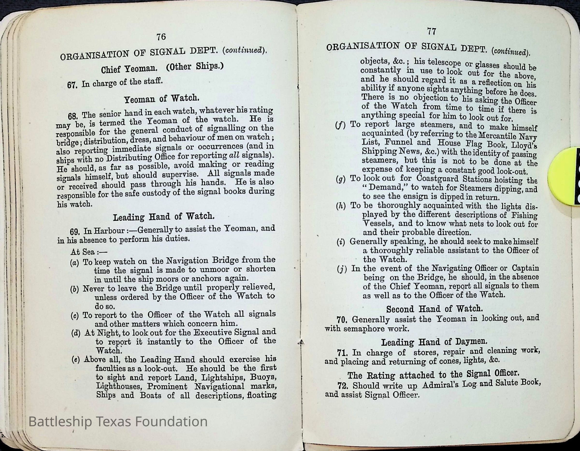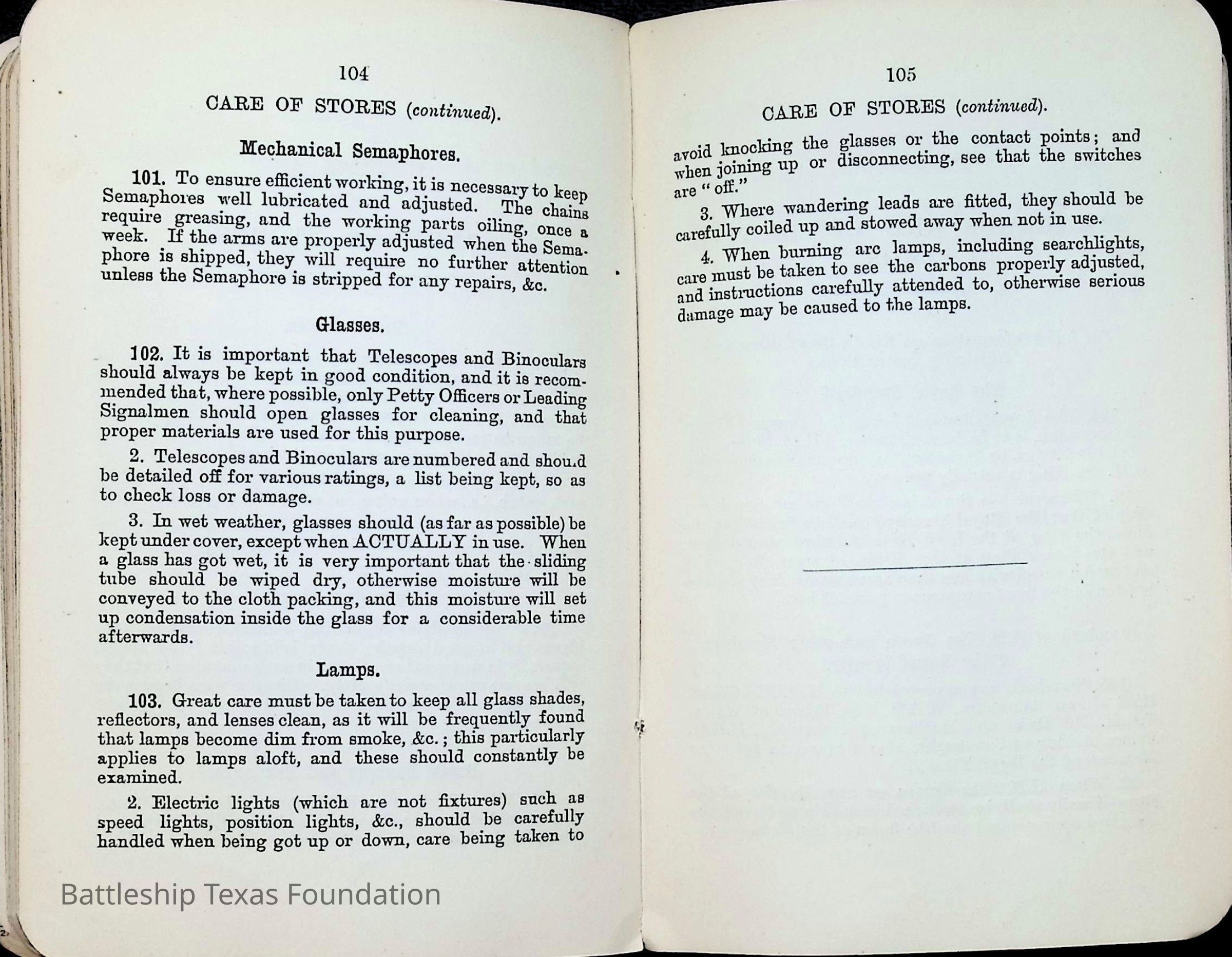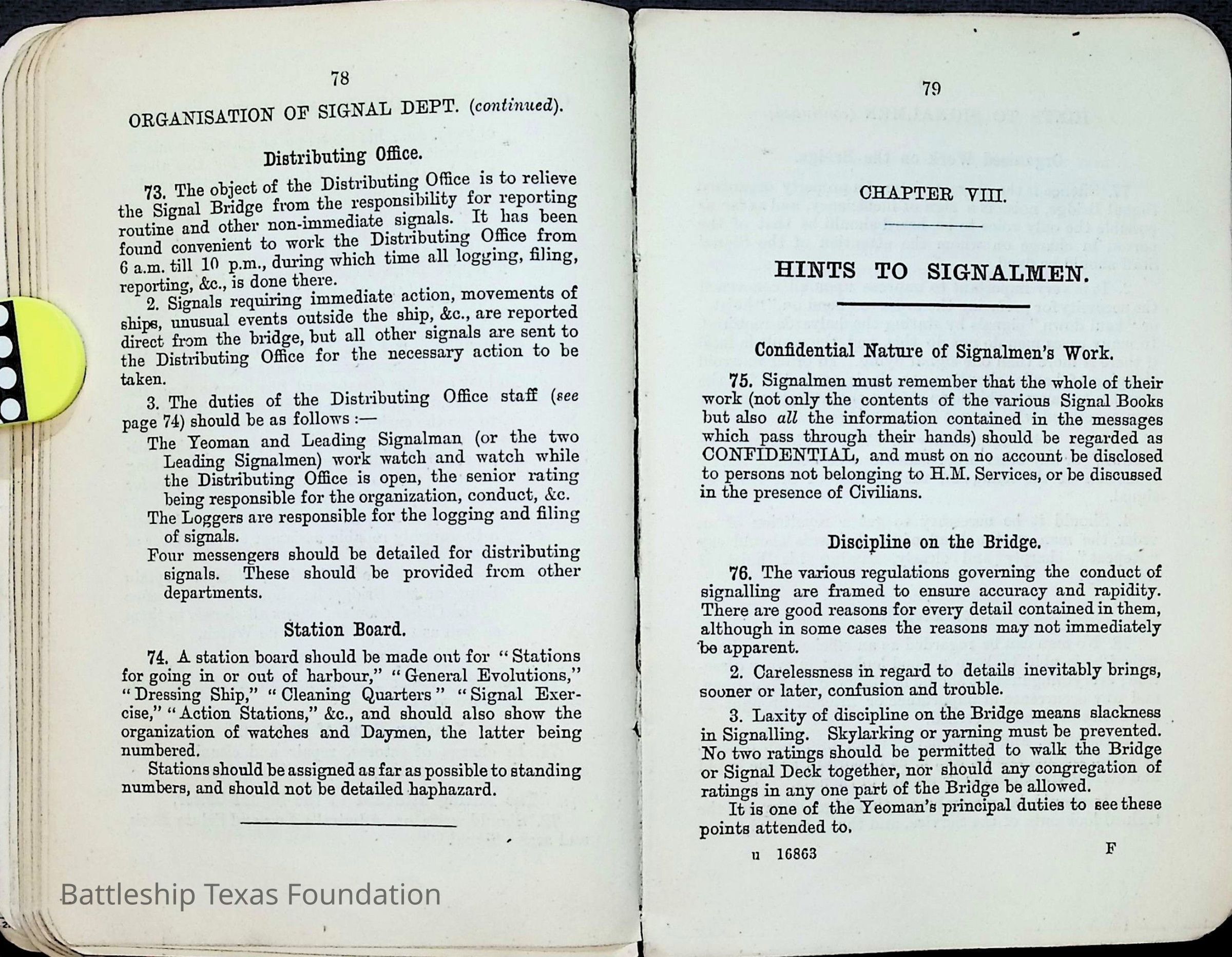 Sailors and marines often received manuals with relevant information for their position within the crew of Battleship Texas.Collection