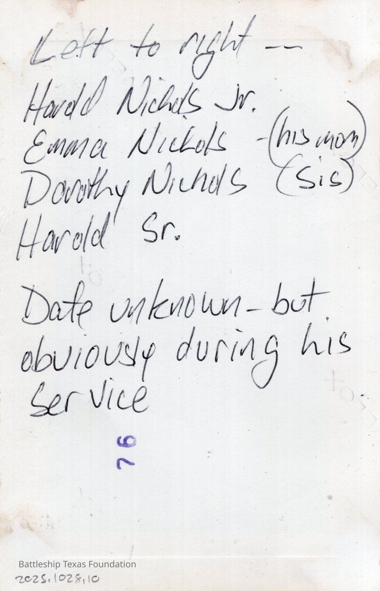 This photograph was taken after Harold Nichols left the crew of Battleship Texas.Context