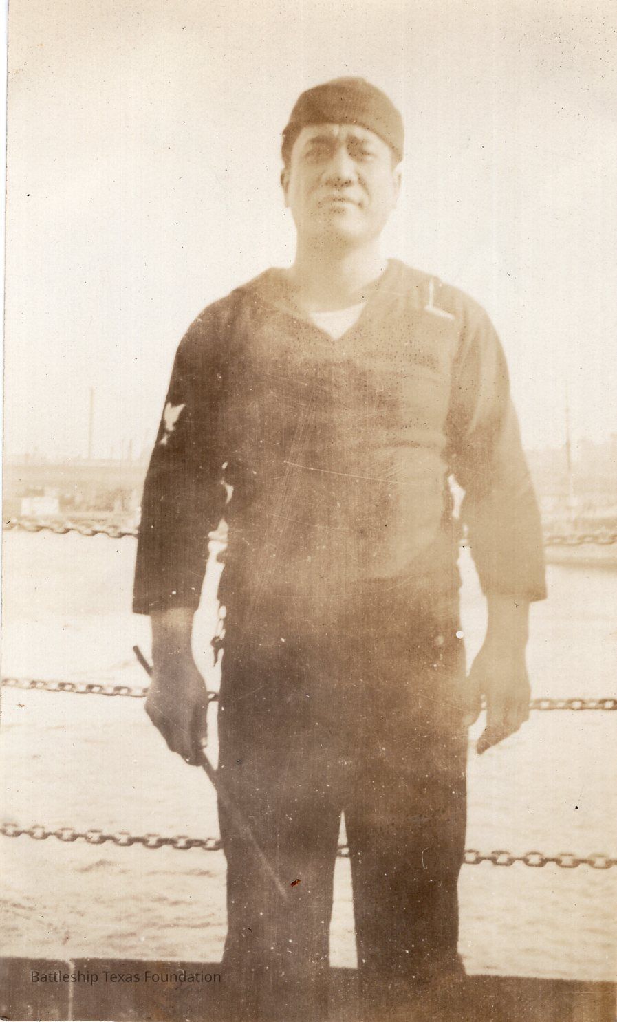 From a donated collection of individual photographs and pages out of a Texas crewmember's photo album. Items donated by the Los Angeles Maritime Museum.