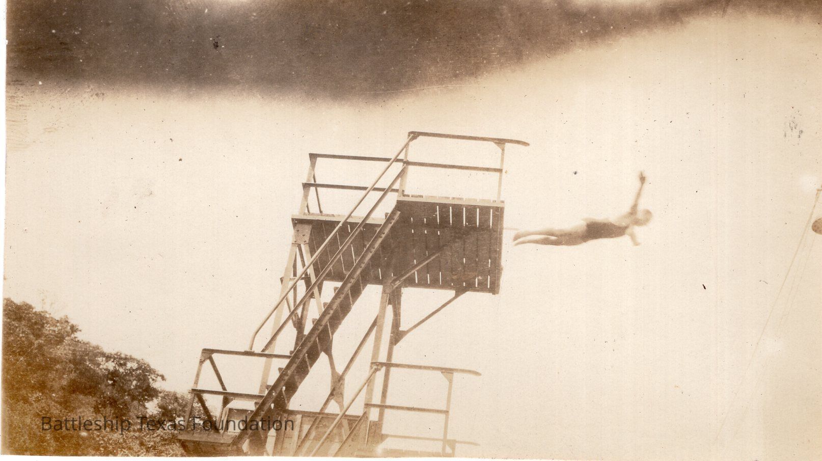 From a donated collection of individual photographs and pages out of a Texas crewmember's photo album. Items donated by the Los Angeles Maritime Museum.