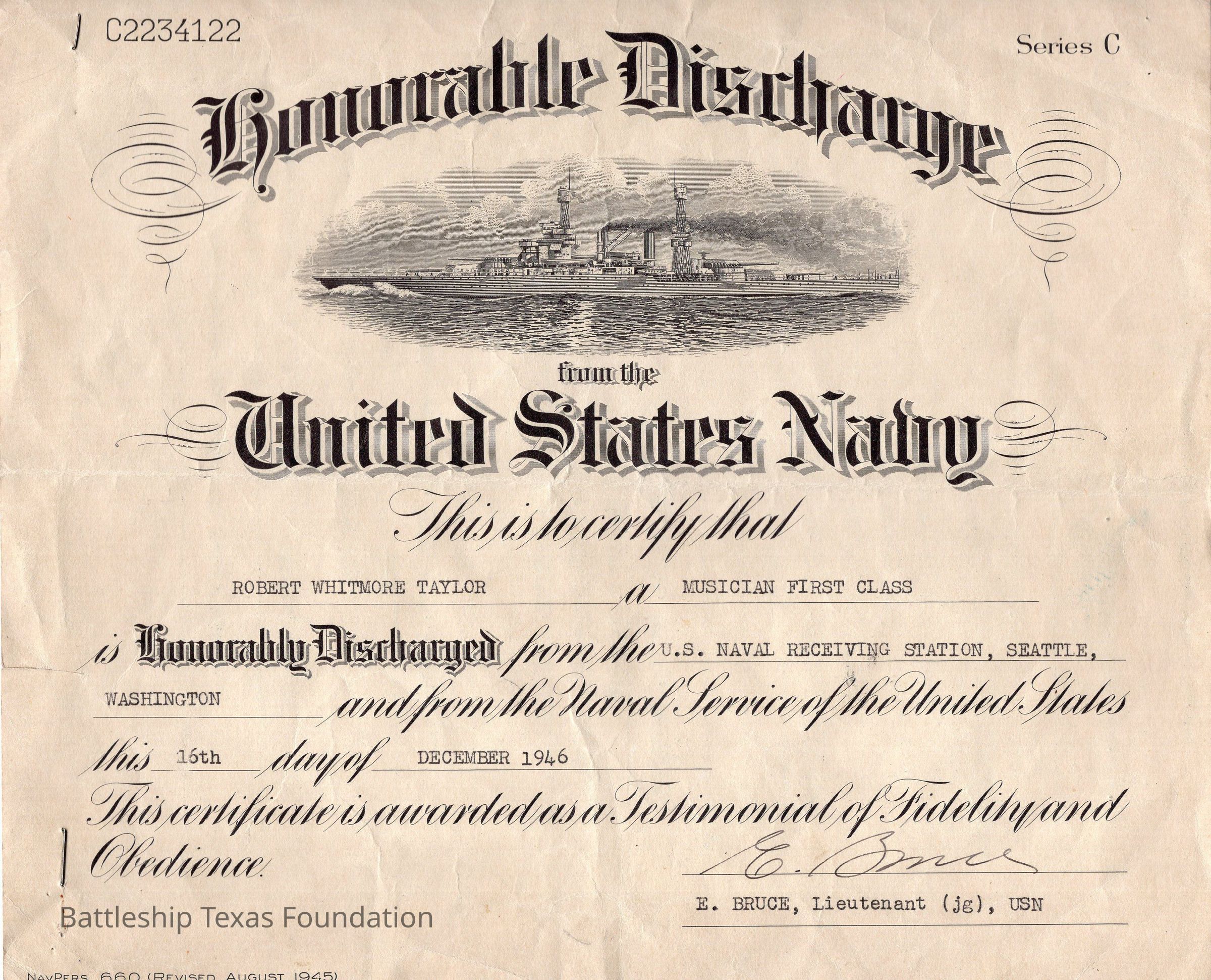 Honorable Discharge from the US Navy for Robert Whitmore TaylorContext