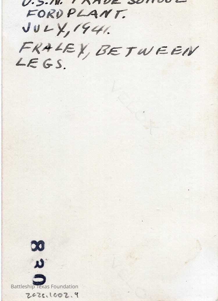 Howard F. Flood Jr. enlisted in the Naval Reserves with parent permission on February 14, 1941, and went through basic training from July 5 to August 3. He went to additional schooling through September 3, 1941. His first assignment was on Battleship Texas.Collection