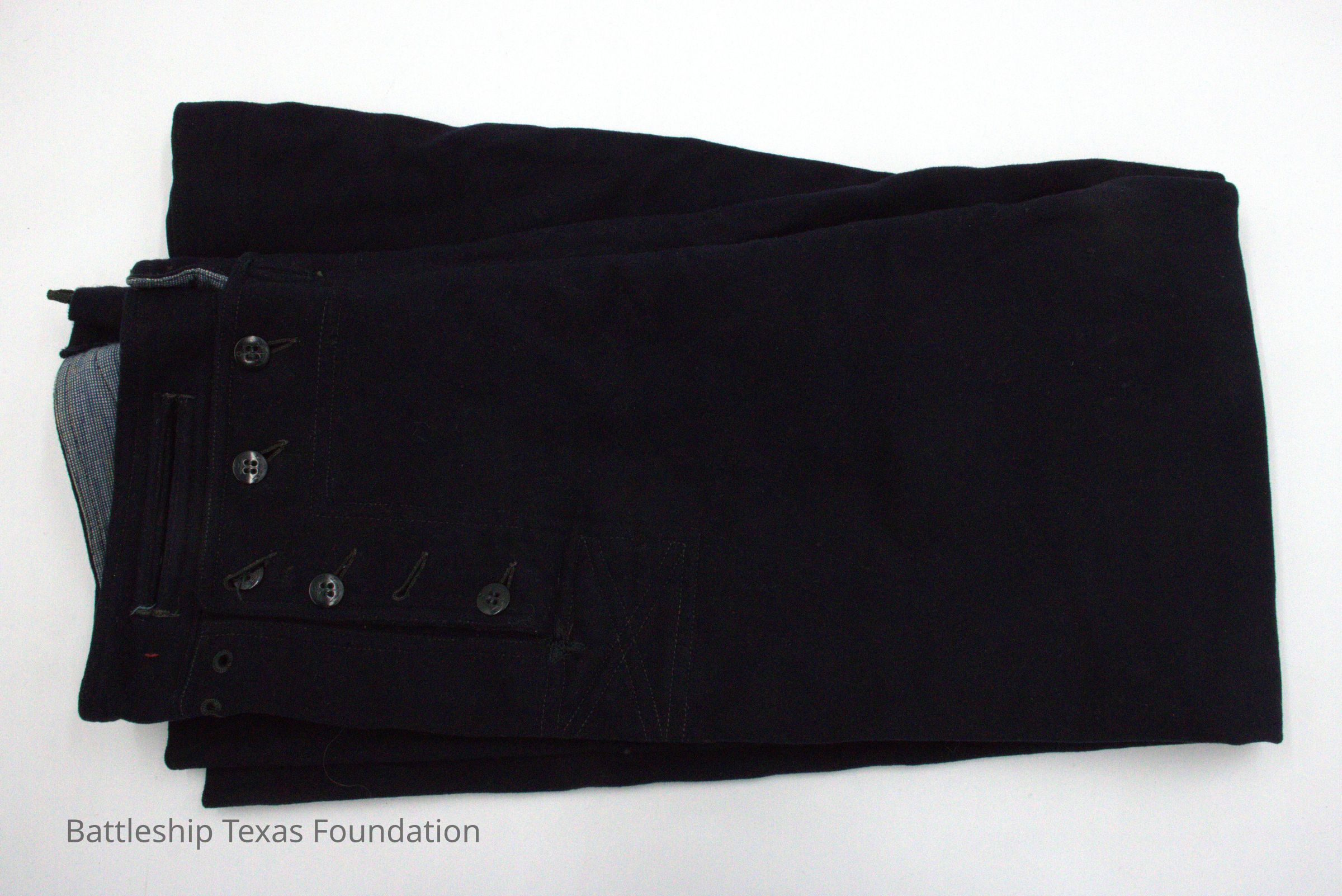 Dress Blues were the standard uniform for the enlisted sailor in the Navy, and included a jumper, trousers, white hat, and blue cap. Patches denoting sailor rate were on their right arm. Sailors also received handkerchiefs, socks, and many other articles.Collection
