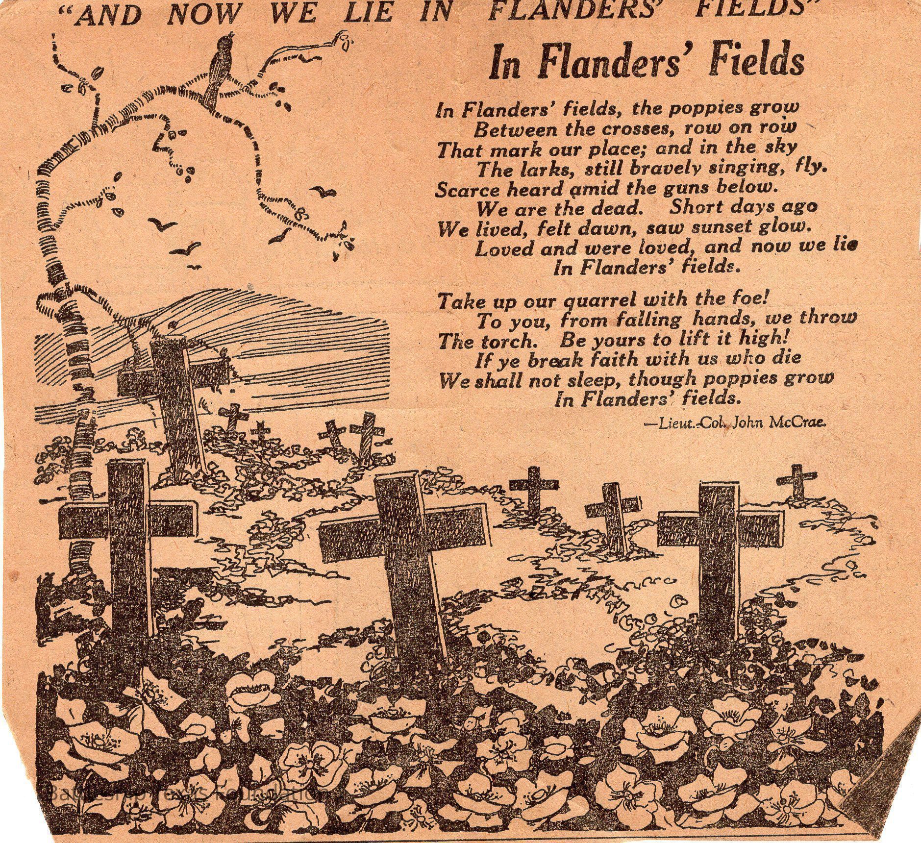 Poem taken from a newspaper John Lamson read. No dates on either side. Front shows poem and illustration of many cross headstones.Context
