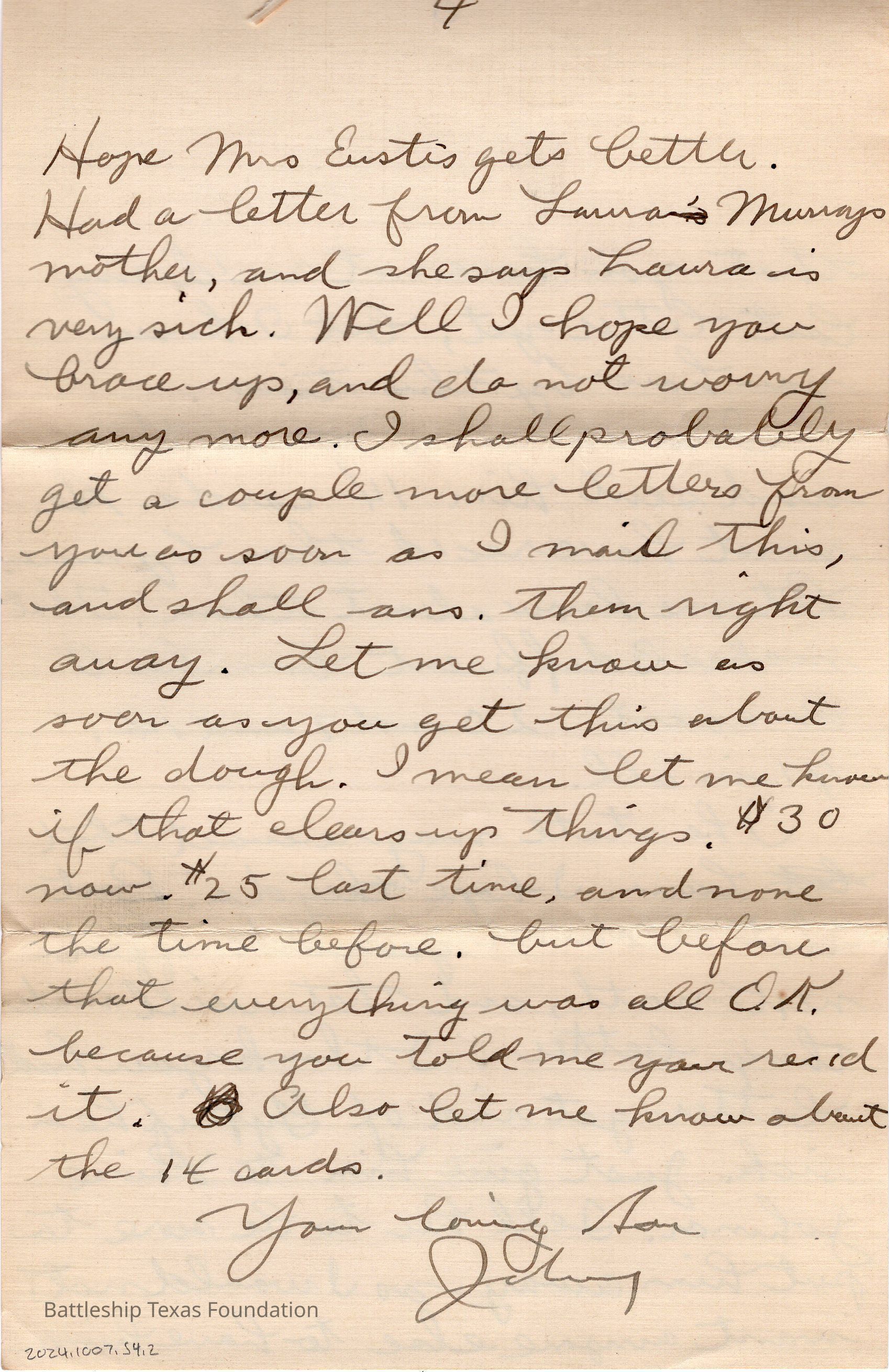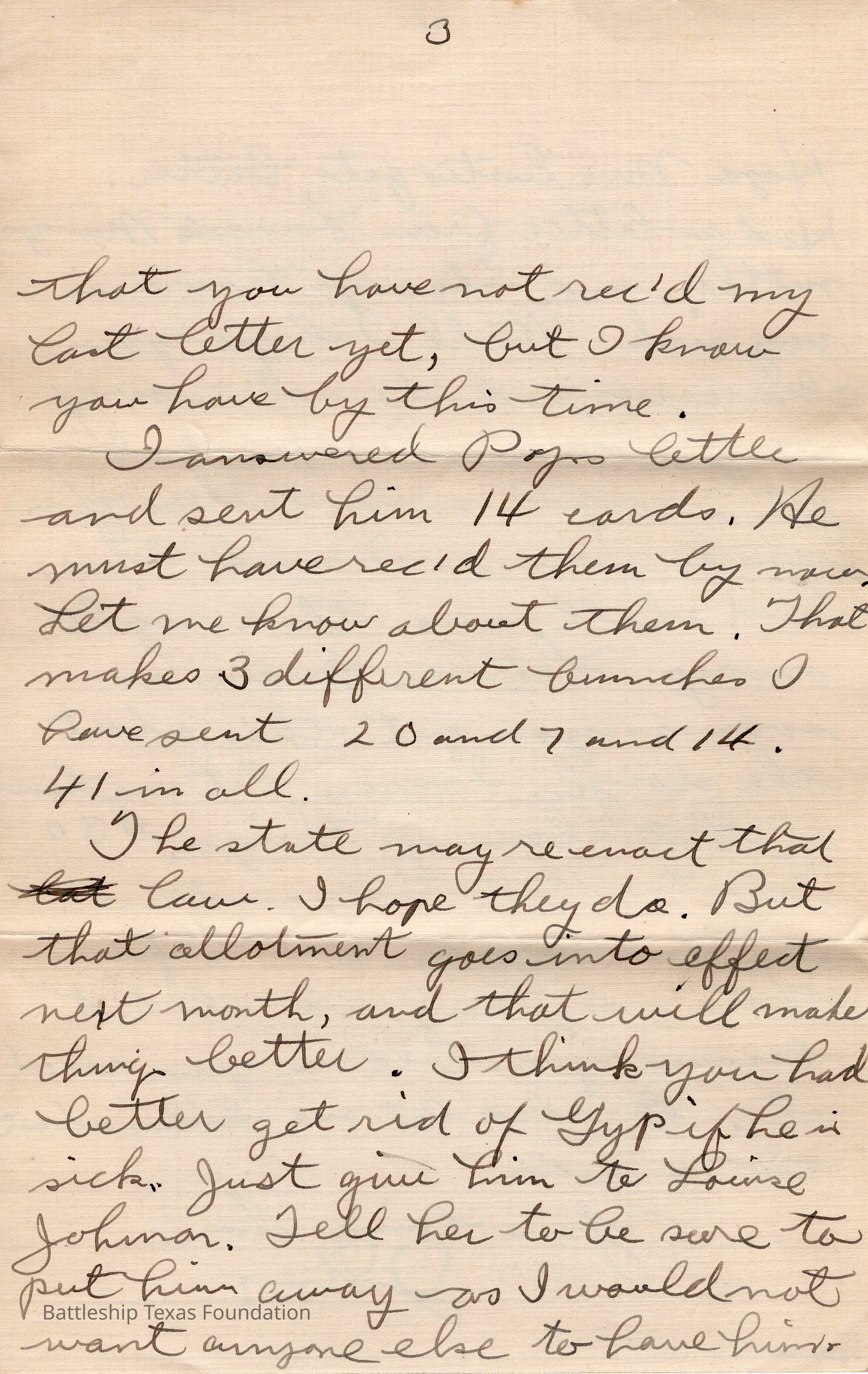 John Lamson was a MM1c on Battleship Texas from May 1917 to June 1919. Throughout his time on Texas, he sent a letter to his family at least once a week, often more. Longer stretches of absence are explained either by movement across the Atlantic, or with the Grand Fleet.