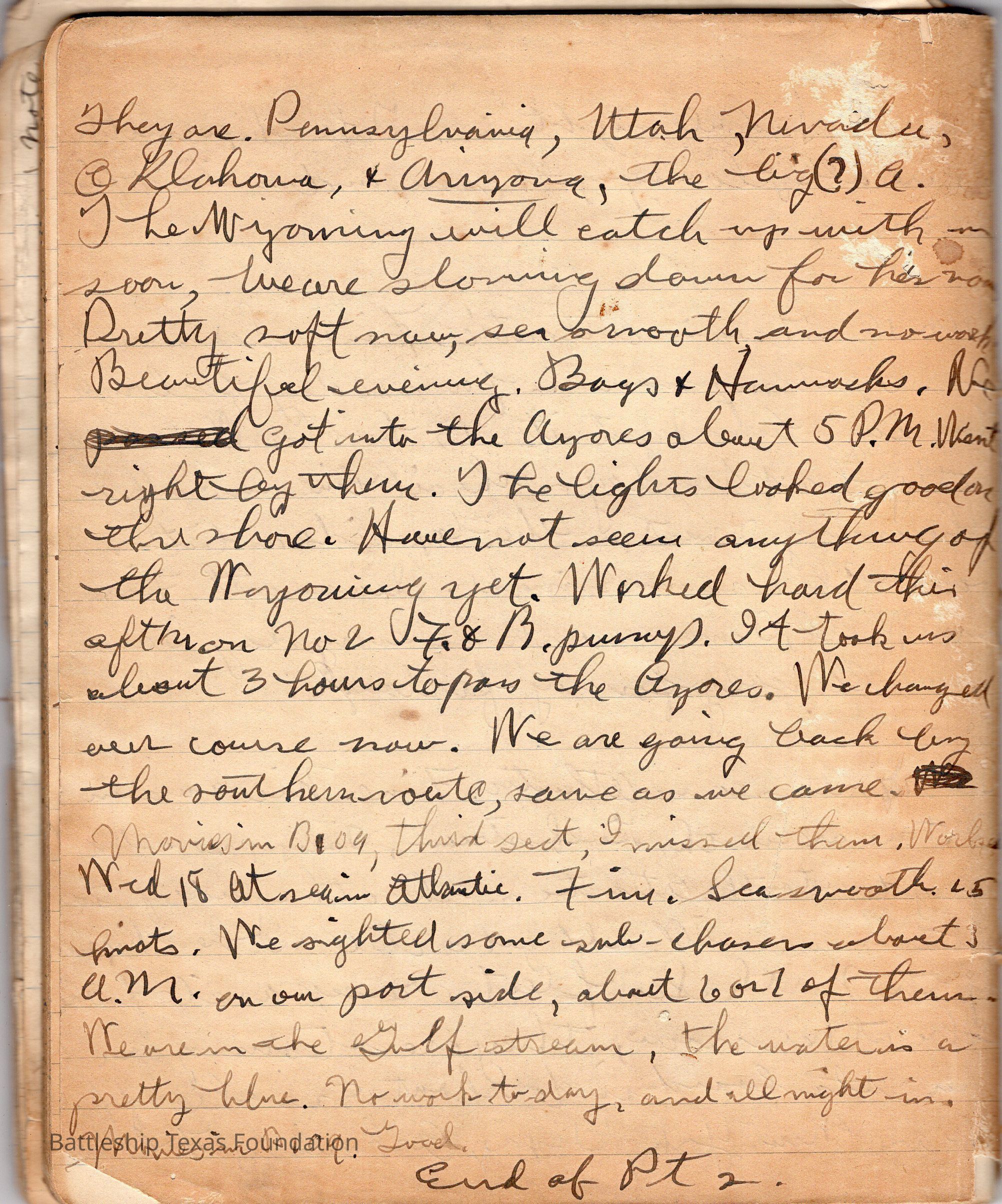 John Lamson was a MM1c on Battleship Texas from May 1917 to June 1919. Throughout his time on Texas, he sent a letter to his family at least once a week, often more. Longer stretches of absence are explained either by movement across the Atlantic, or with the Grand Fleet.Collection