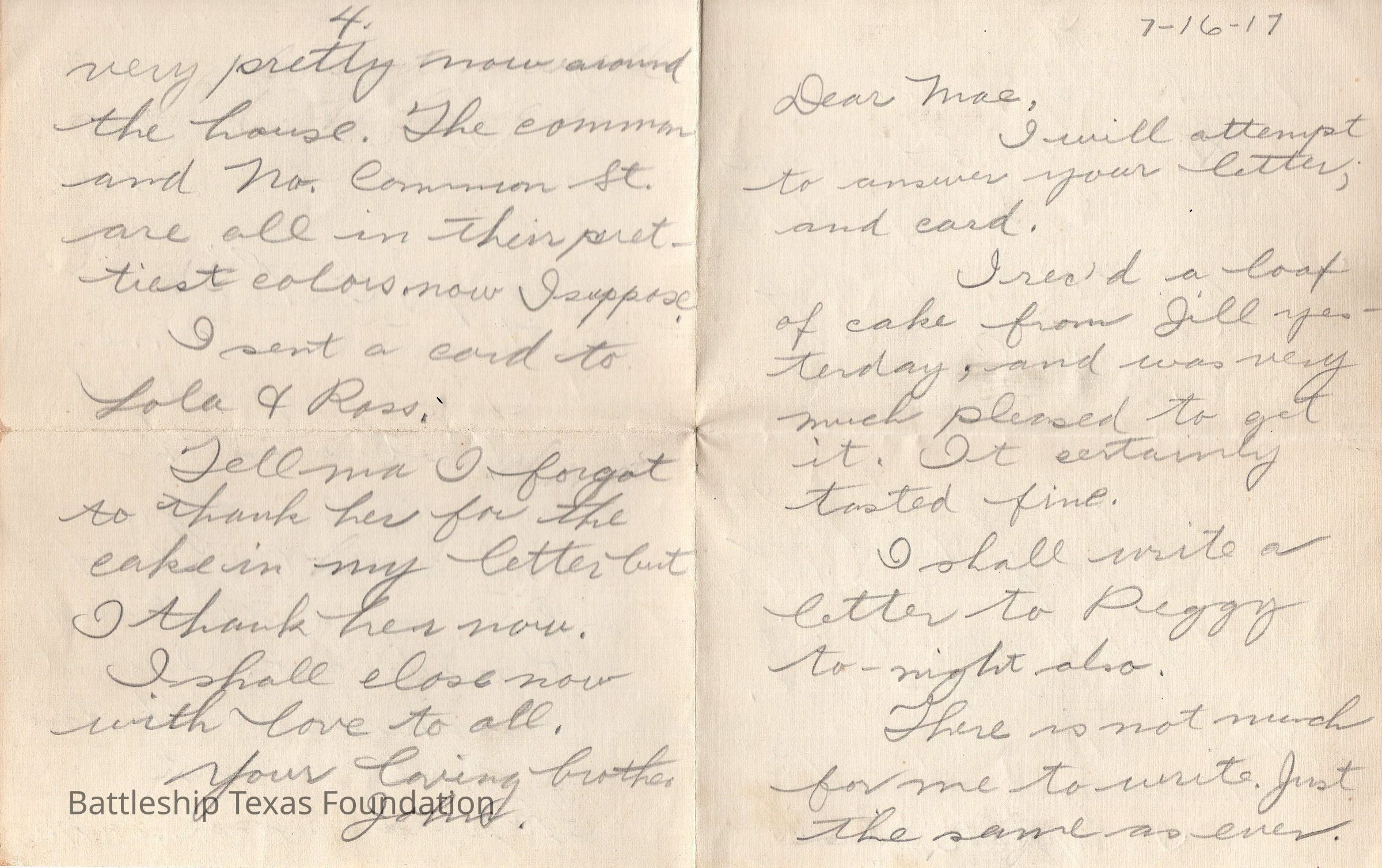 letter dated July 16, 1917 (7-16-17) to Mae.Context