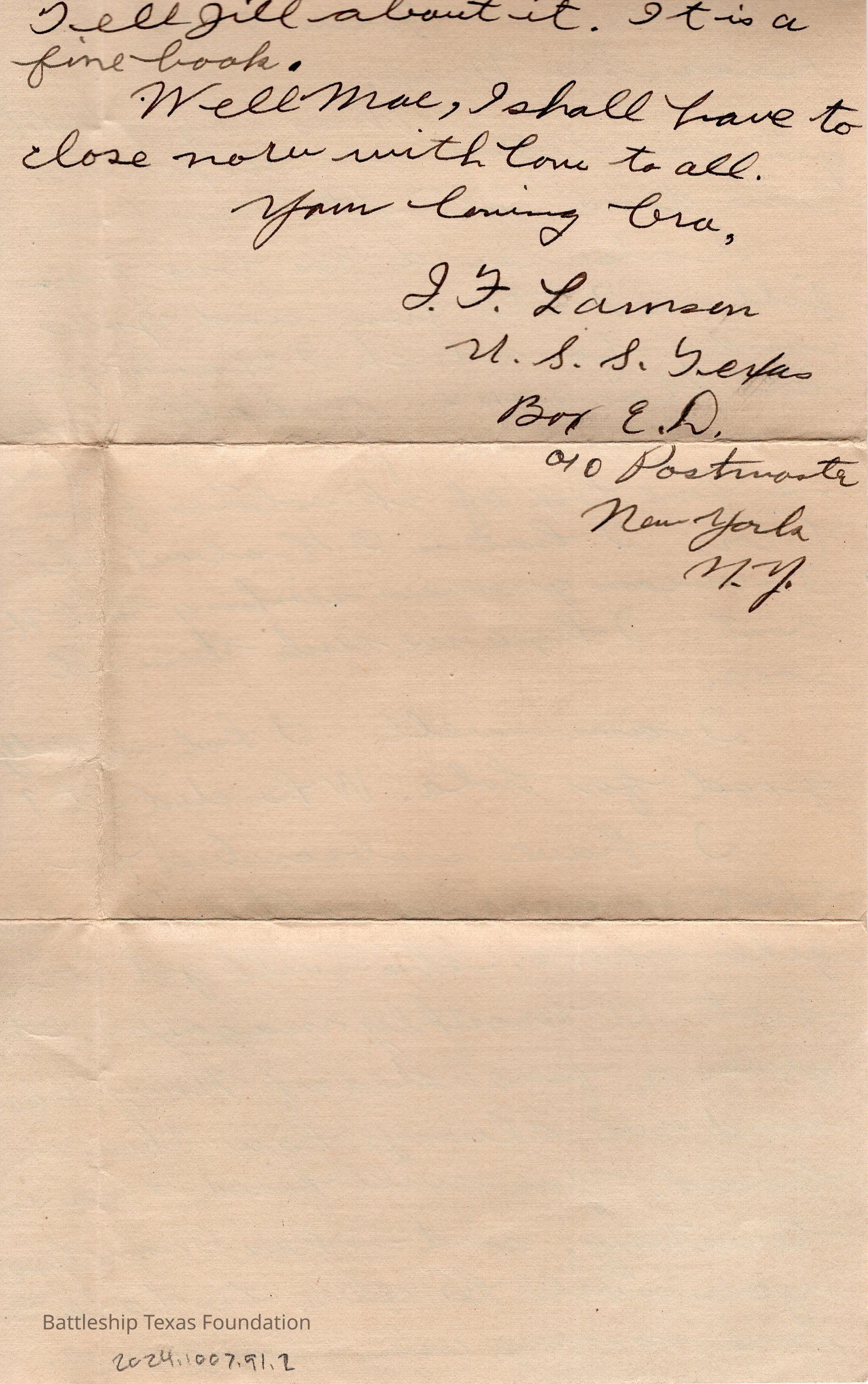 Battleship Texas had her own post office. All mail passed through a censor before leaving the ship. Once the package is checked, it was stamped with a “U.S.S. TEXAS” stamp. If in a port, mail could carry the markers of the post office on shore.Collection