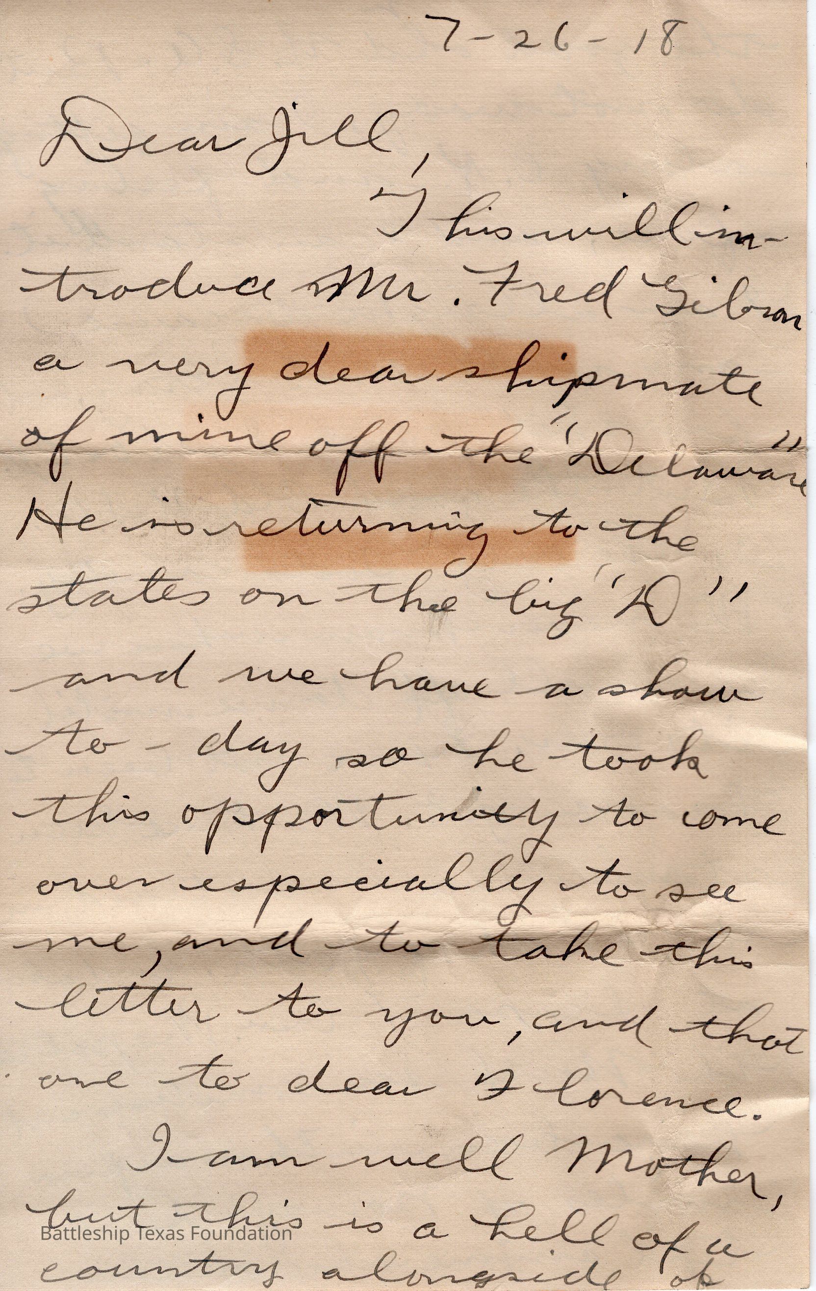 Letter, to Jill, dated to July 26, 1918 (7-26-18)Context