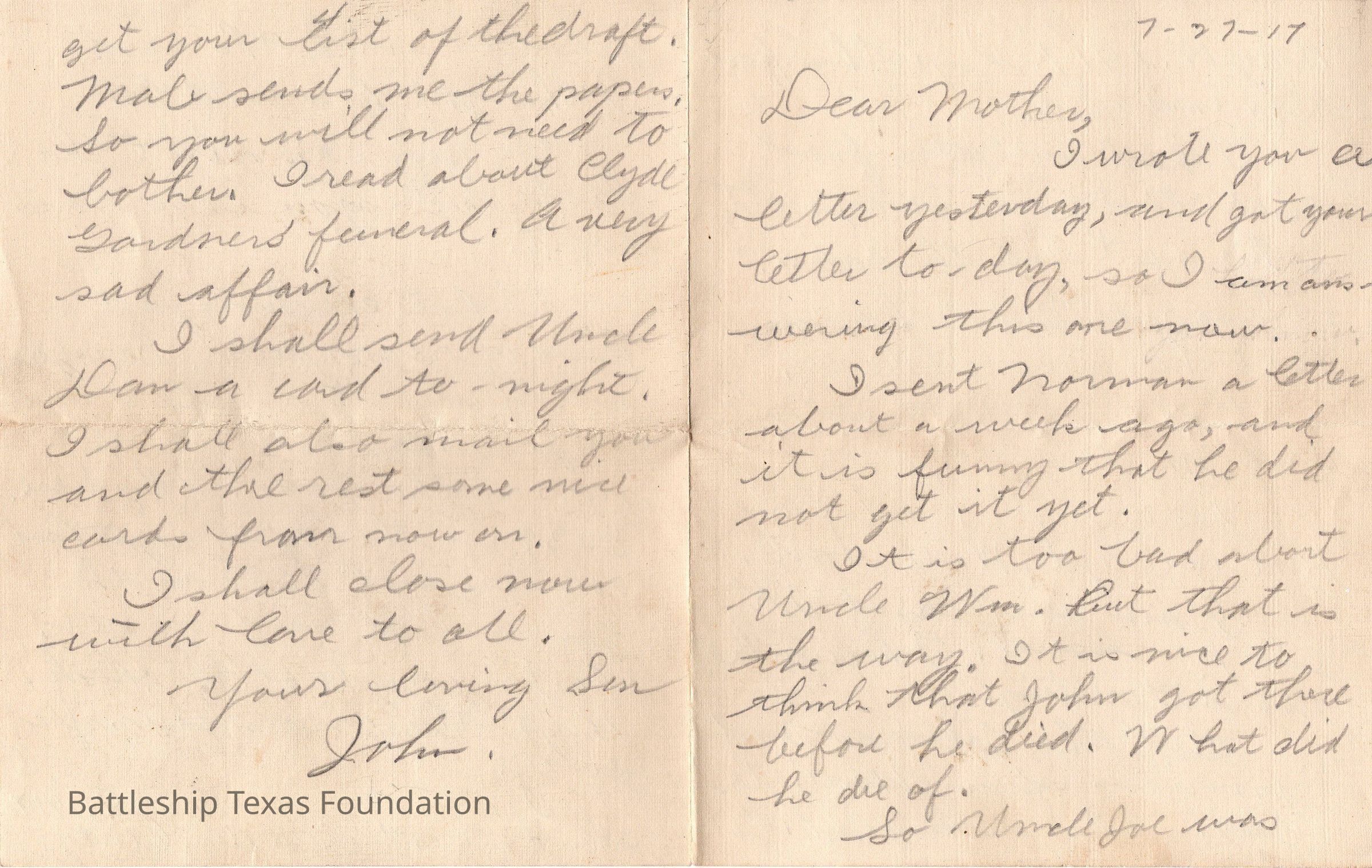 letter dated July 27, 1917 (7-27-17) to MotherContext