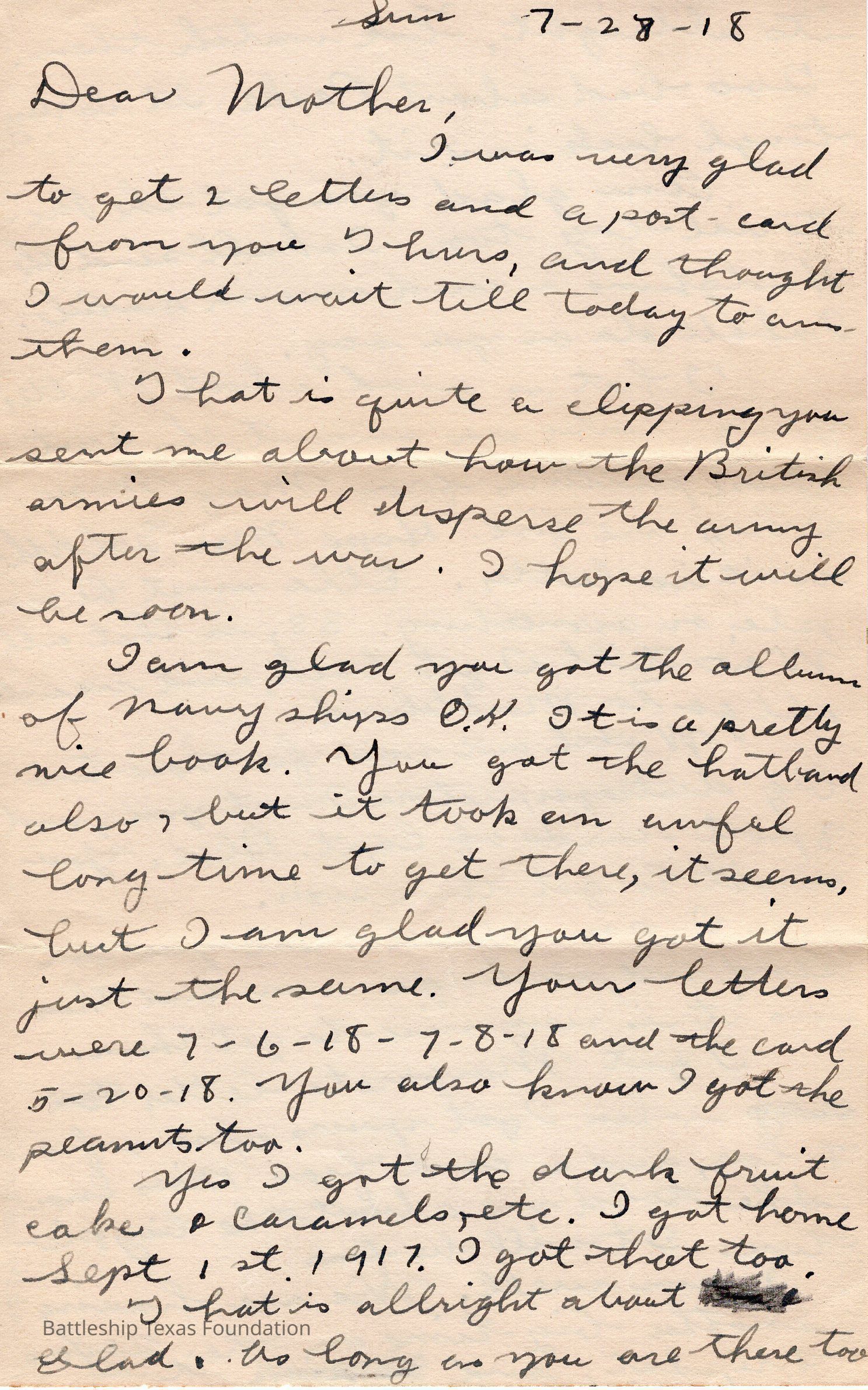 Lamson 1918/07/28 letter pg#1Entry/Object ID