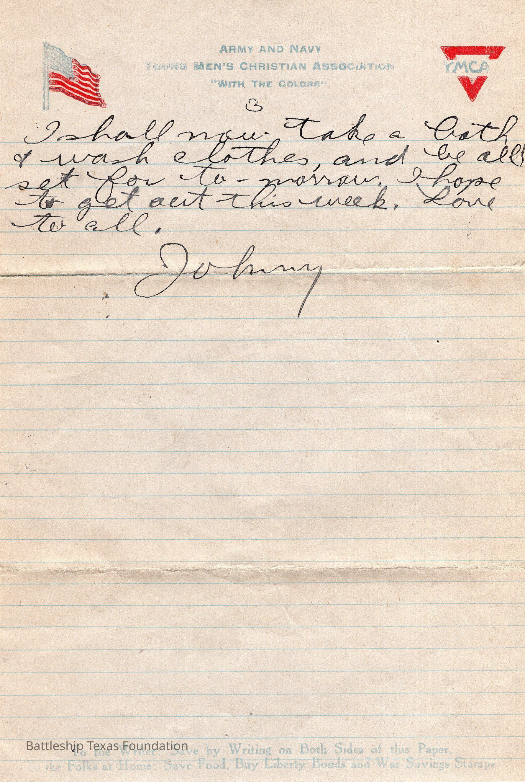 John Lamson was a MM1c on Battleship Texas from May 1917 to June 1919. Throughout his time on Texas, he sent a letter to his family at least once a week, often more. Longer stretches of absence are explained either by movement across the Atlantic, or with the Grand Fleet.