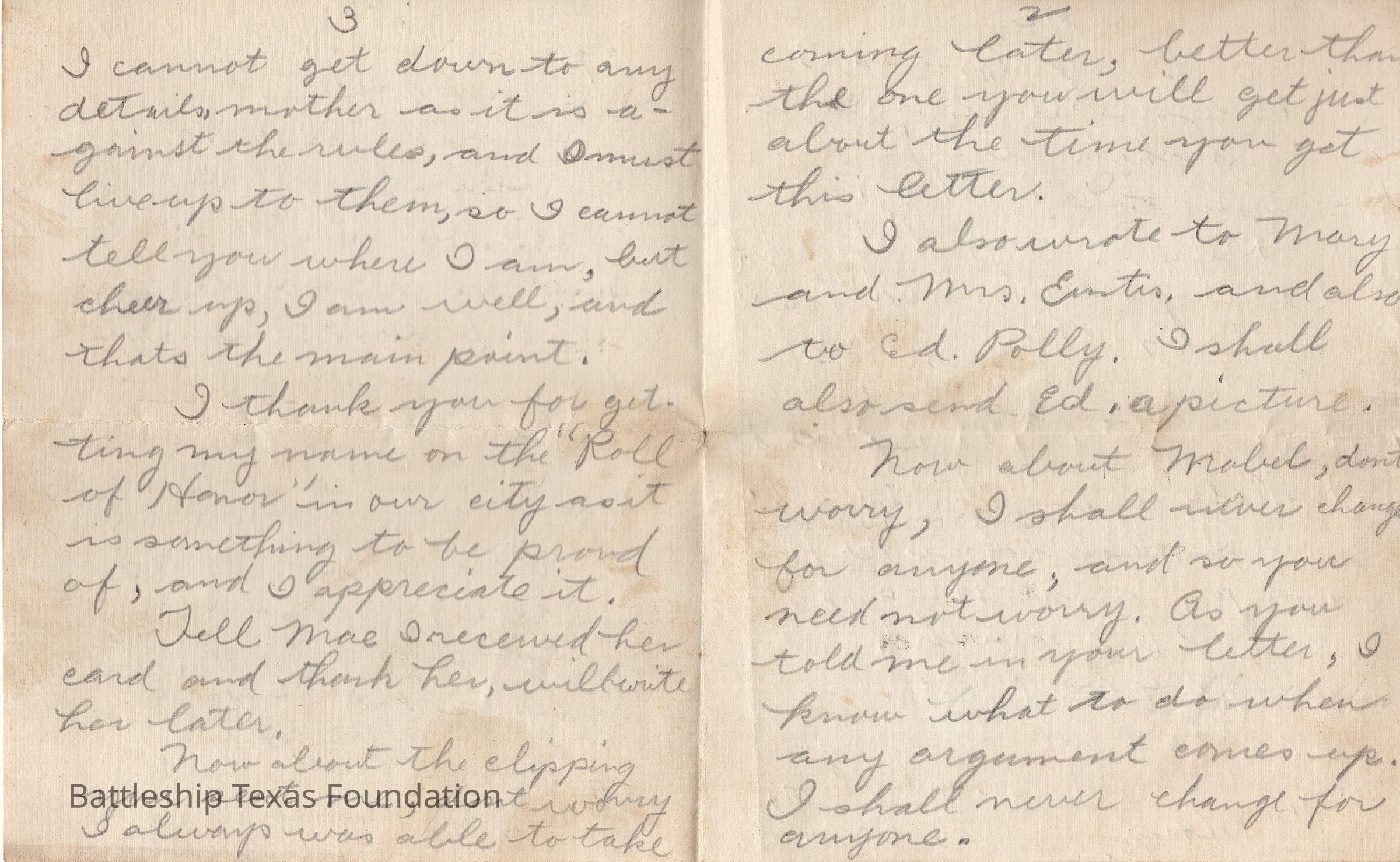 John Lamson was a MM1c on Battleship Texas from May 1917 to June 1919. Throughout his time on Texas, he sent a letter to his family at least once a week, often more. Longer stretches of absence are explained either by movement across the Atlantic, or with the Grand Fleet.