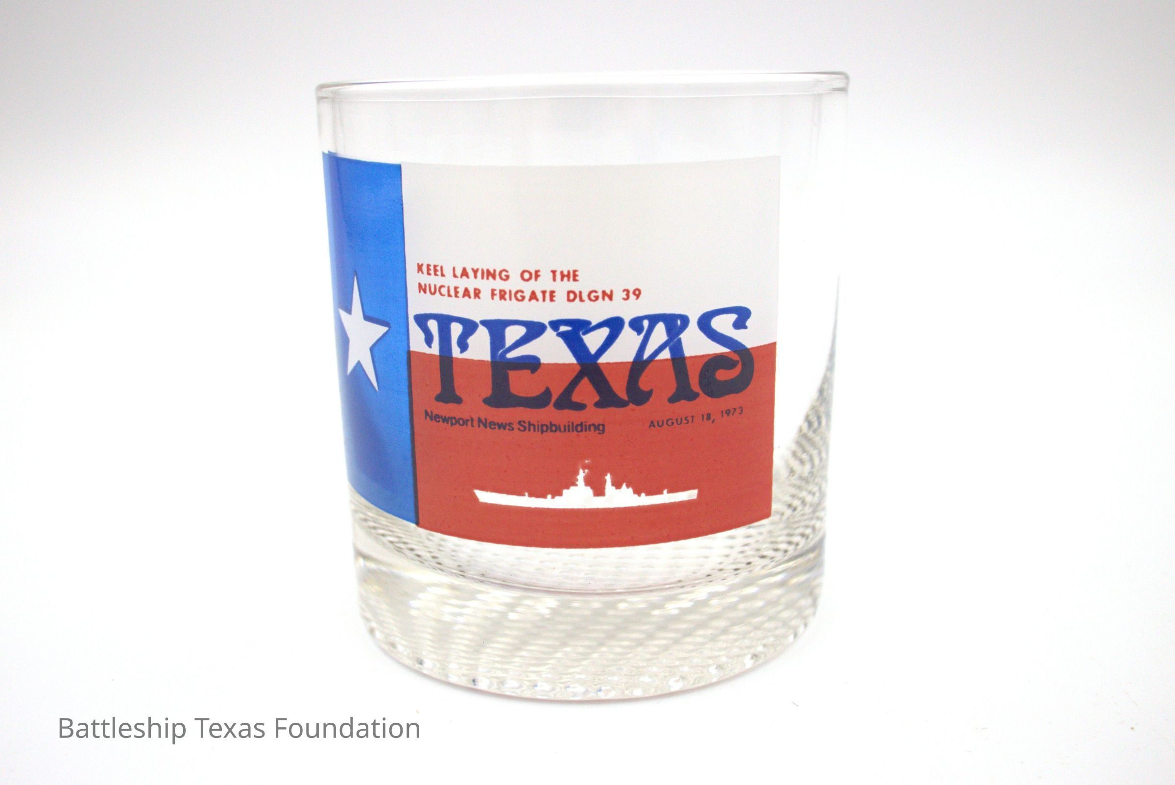 Bar glass for the keel laying of Cruiser Texas on August 18, 1973Context