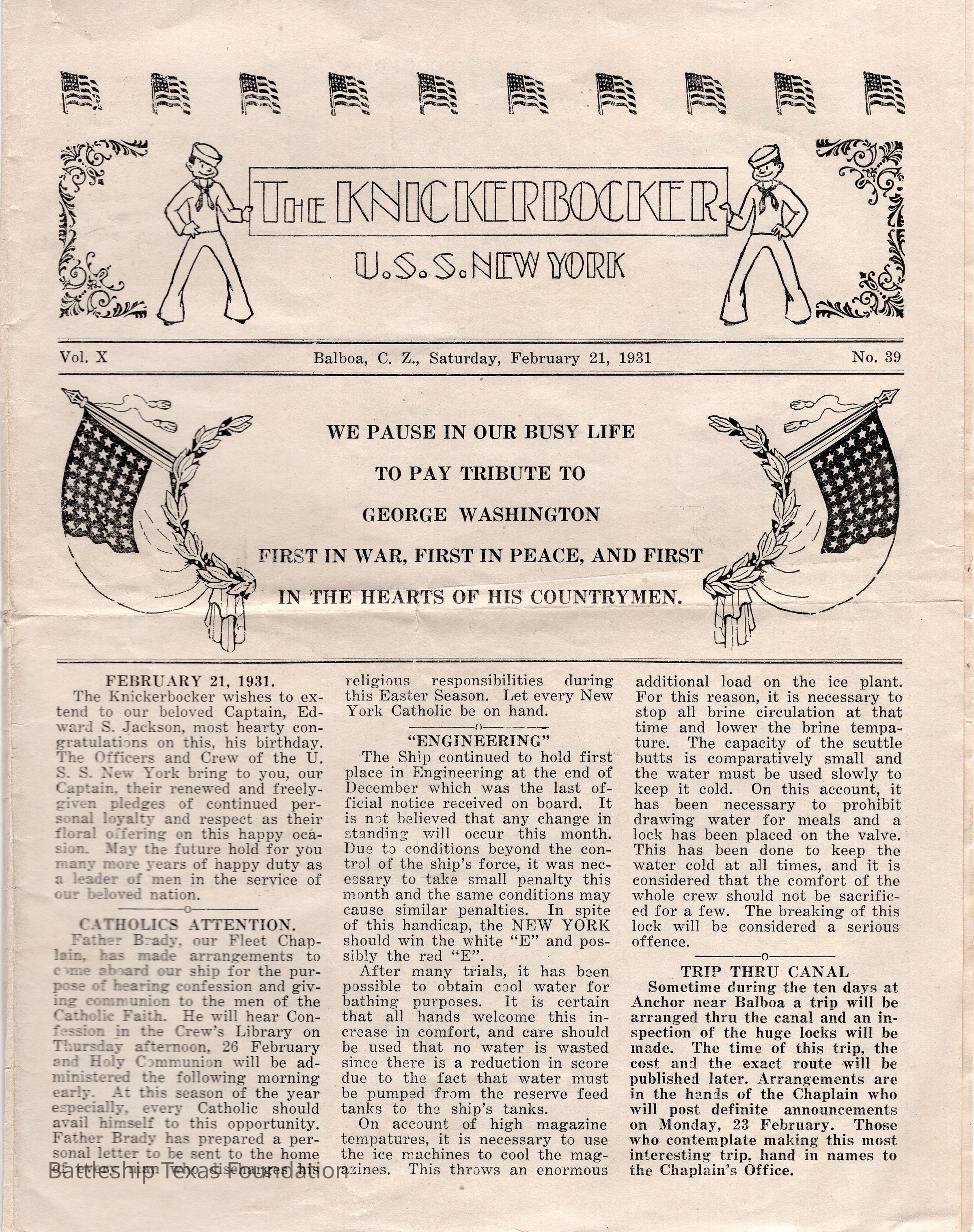 The Knickerbocker foldout volume 10 issue 39. Published from Balboa, C.Z. (Canal Zone) on February 21, 1931.Context
