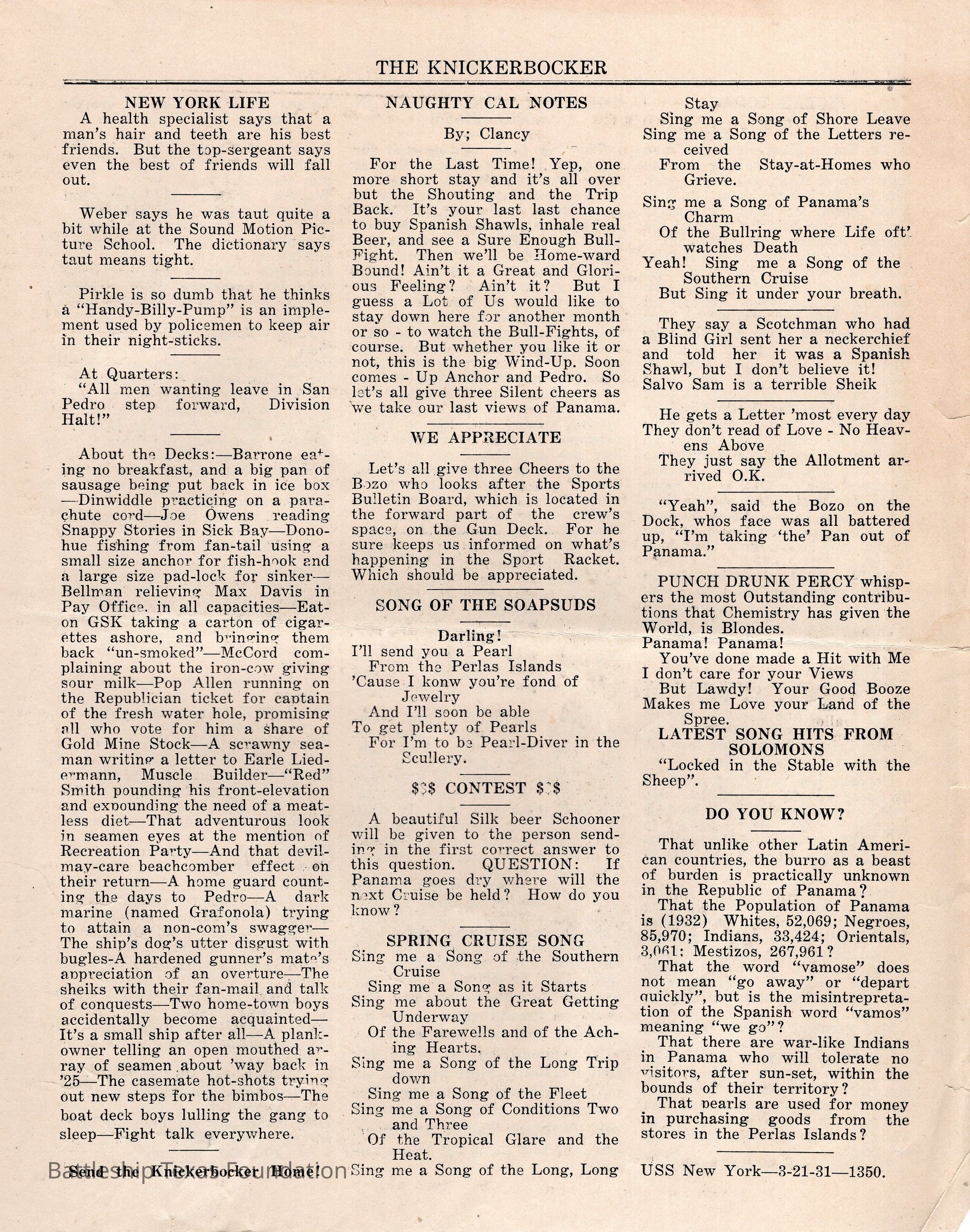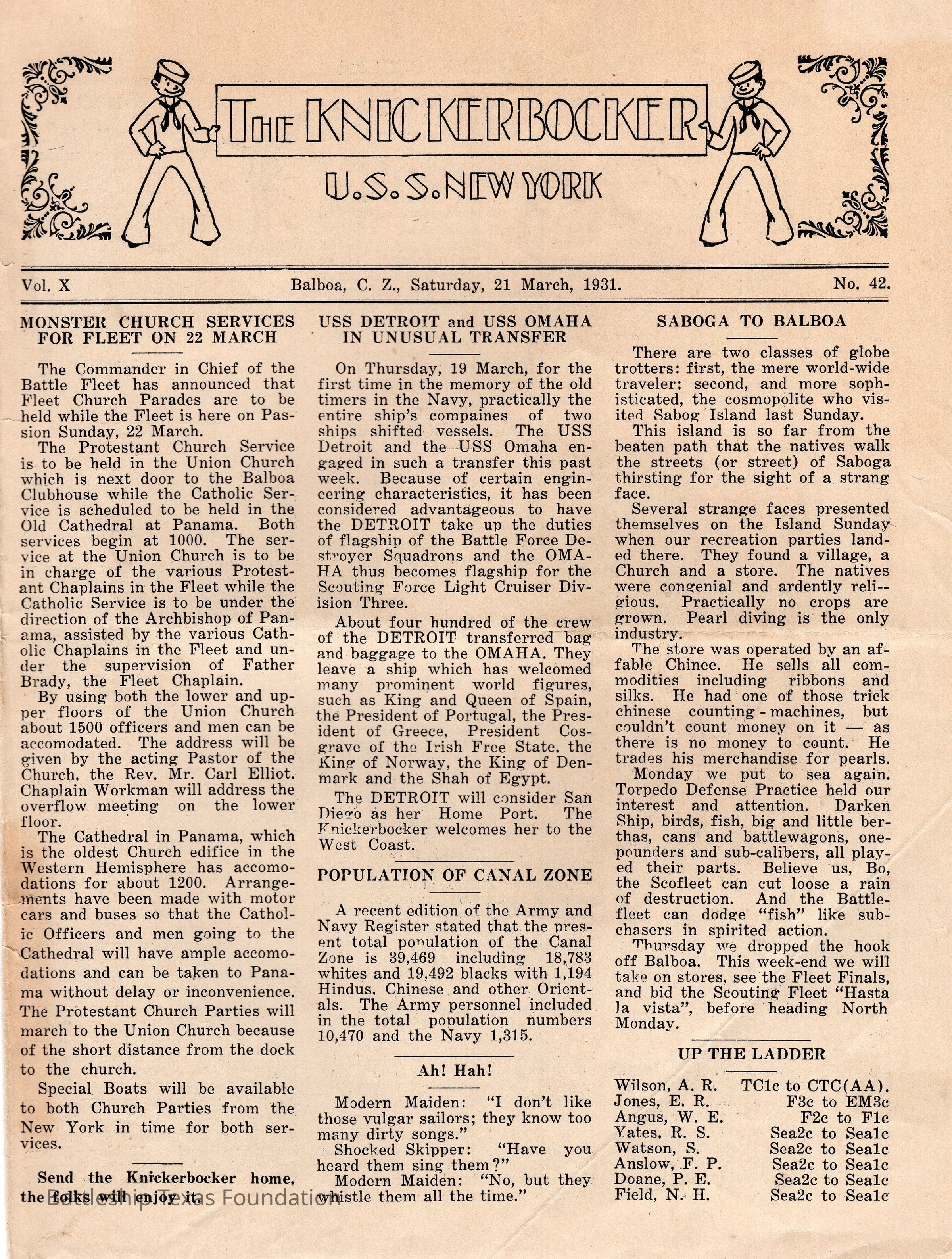 The Knickerbocker foldout volume 10 issue 42. Published from Balboa, C.Z. (Canal Zone) on March 21, 1931.Context