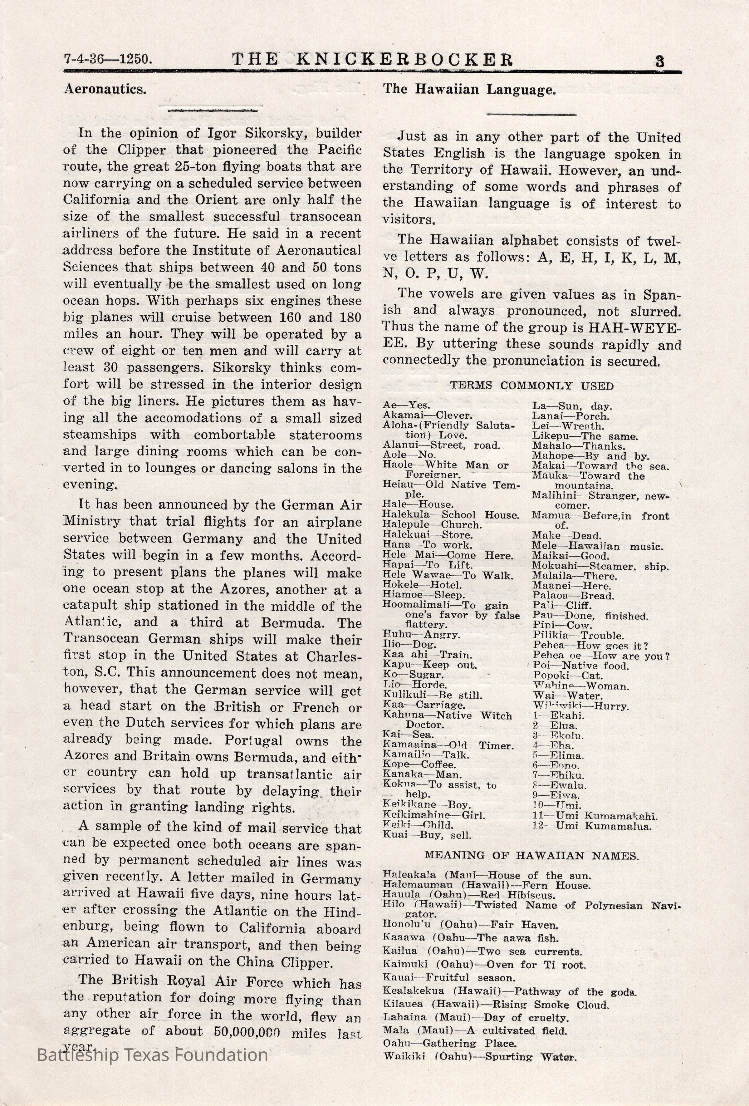 The Knickerbocker foldout volume 16 issue 11. Published while enroute to San Francisco, California on July 4, 1936.Context