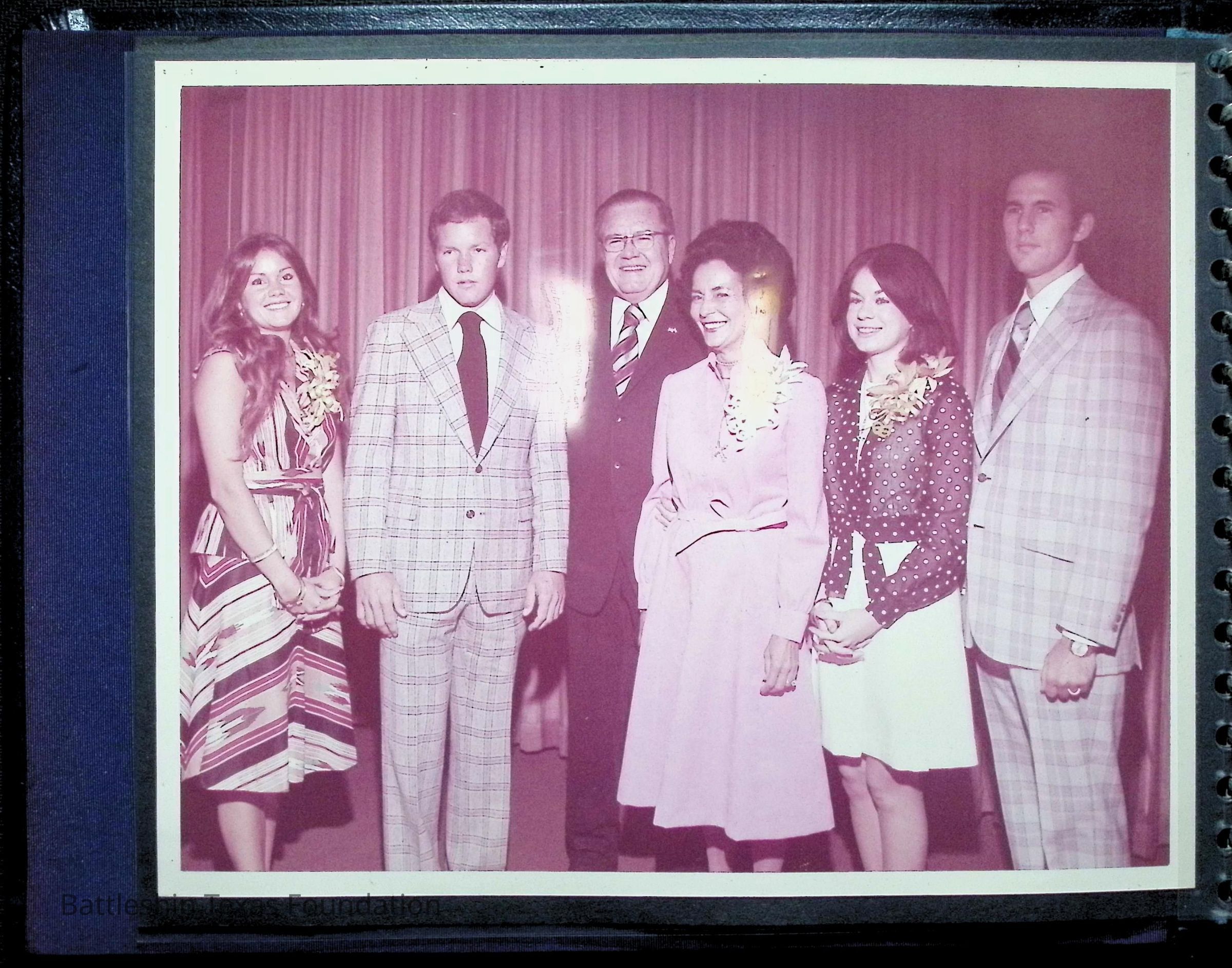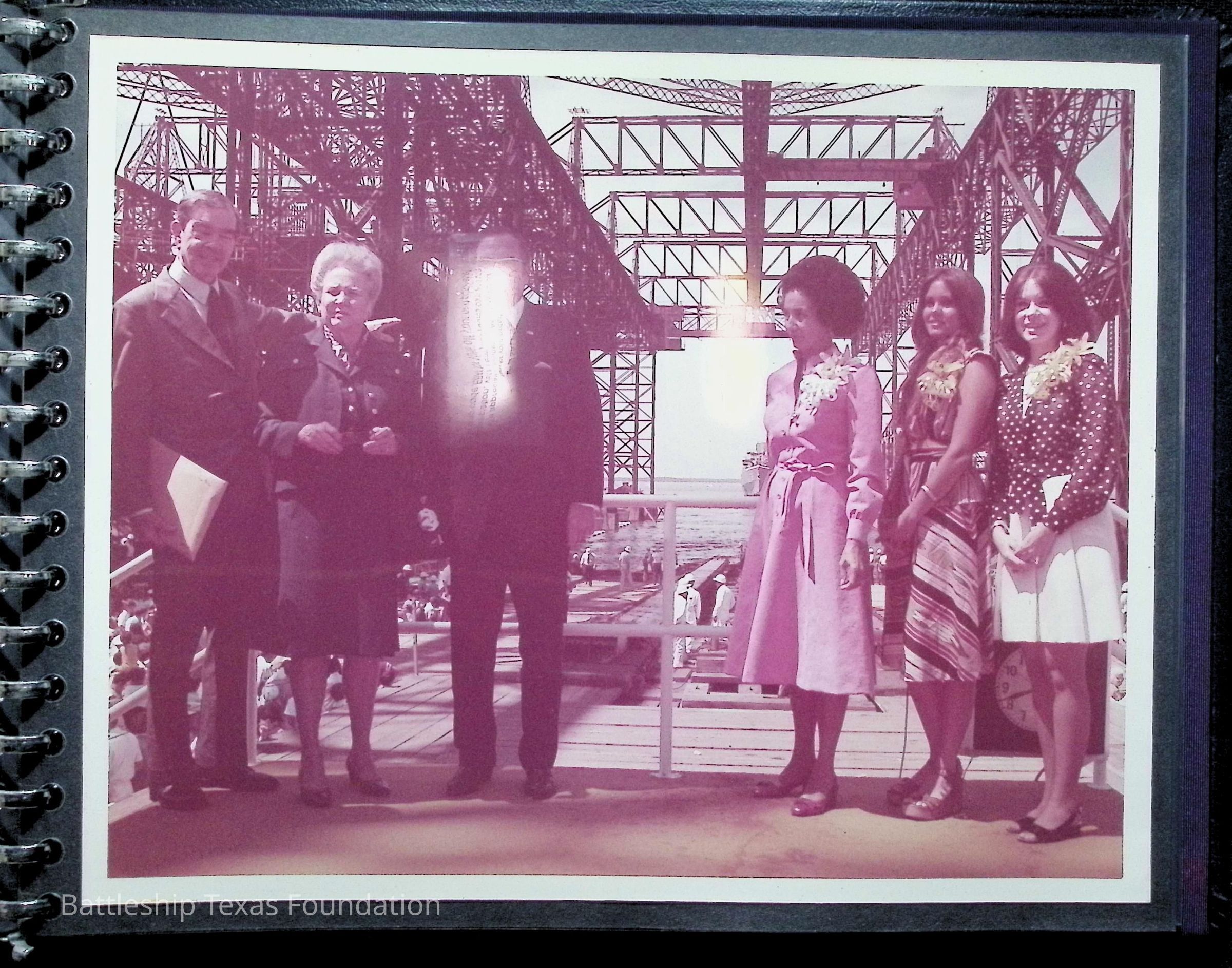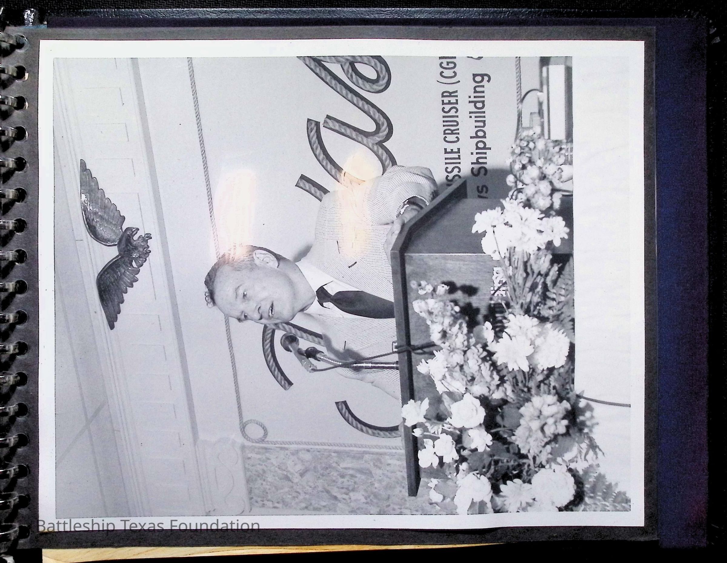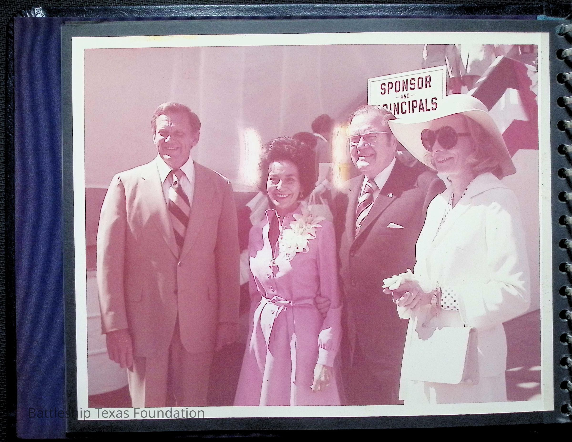 Photo album for the launching of the cruiser USS Texas at Newport News Shipbuilding on August 9, 1975. Contains one picture per page, twelve total, all bound in a dark leather cover. All photos are from the launch of the ship, and the surrounding events.Context