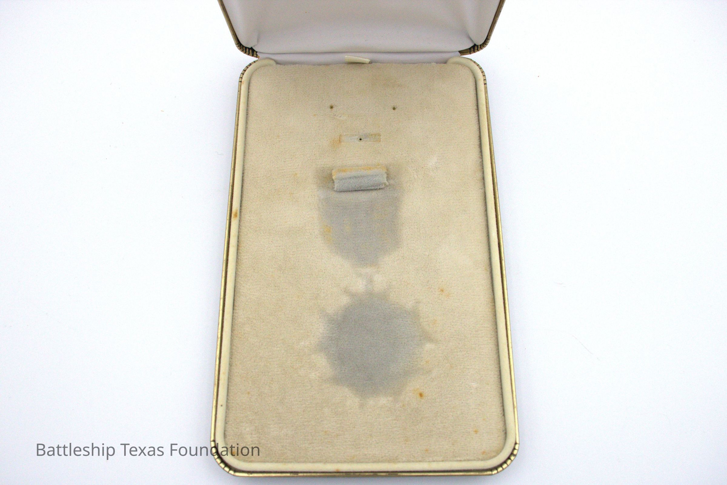 Box for Peter Fiedler's Legion of Merit medal. Interior has imprint from medal over the years.Context