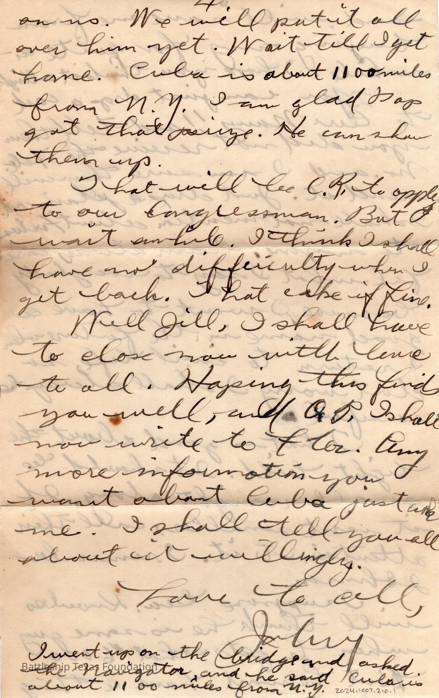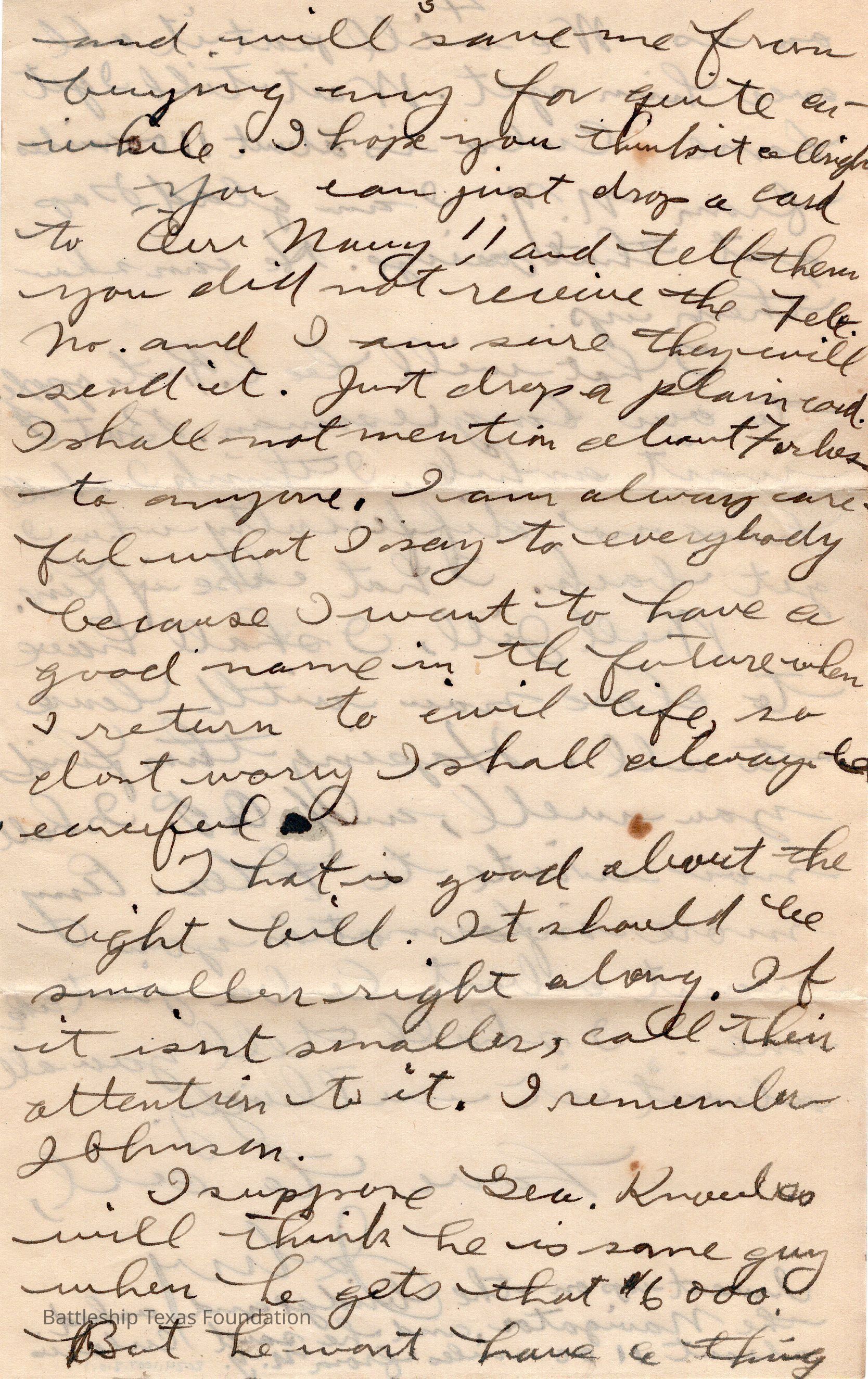 John Lamson was a MM1c on Battleship Texas from May 1917 to June 1919. Throughout his time on Texas, he sent a letter to his family at least once a week, often more. Longer stretches of absence are explained either by movement across the Atlantic, or with the Grand Fleet.
