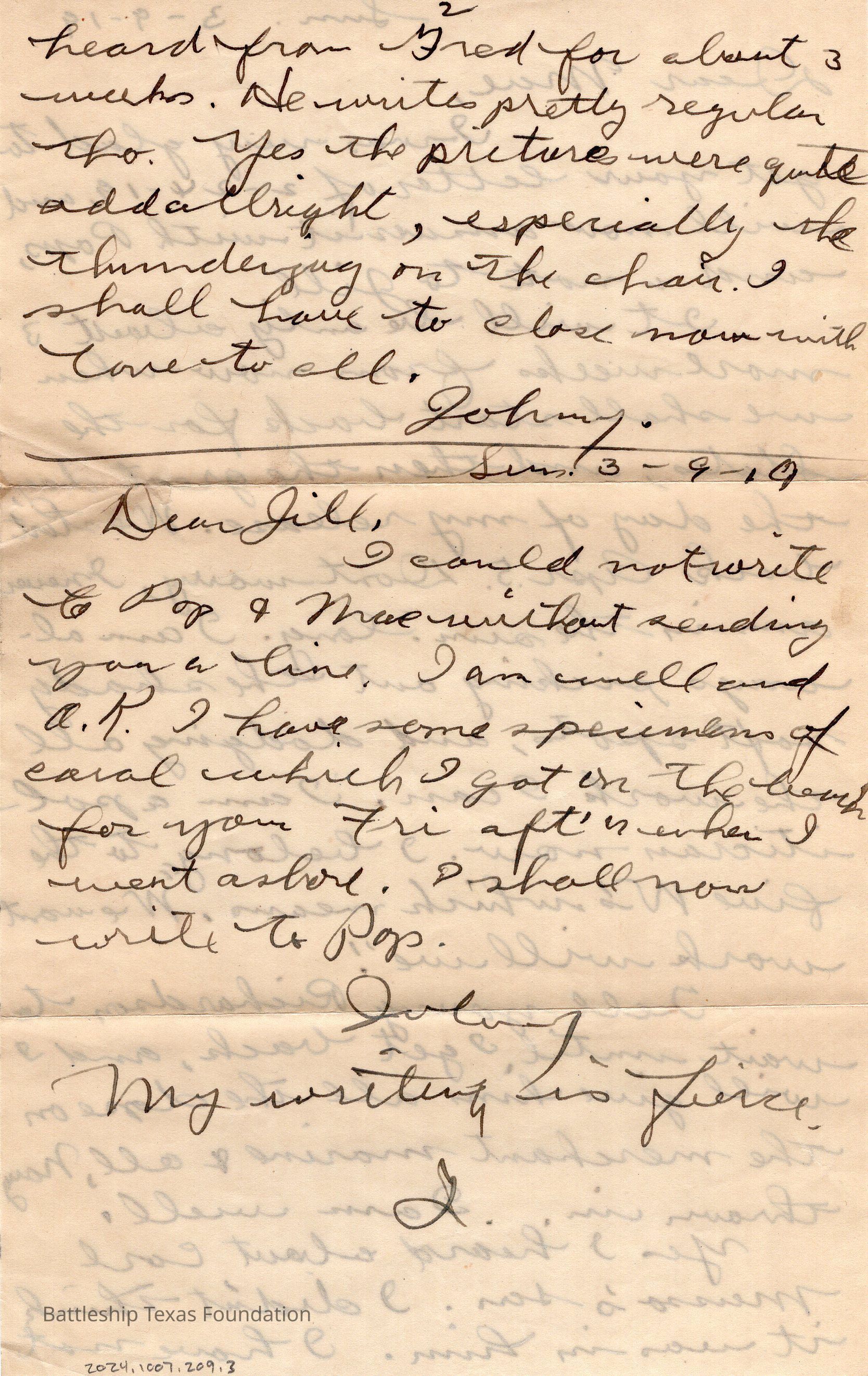 Battleship Texas had her own post office. All mail passed through a censor before leaving the ship. Once the package is checked, it was stamped with a “U.S.S. TEXAS” stamp. If in a port, mail could carry the markers of the post office on shore.Collection